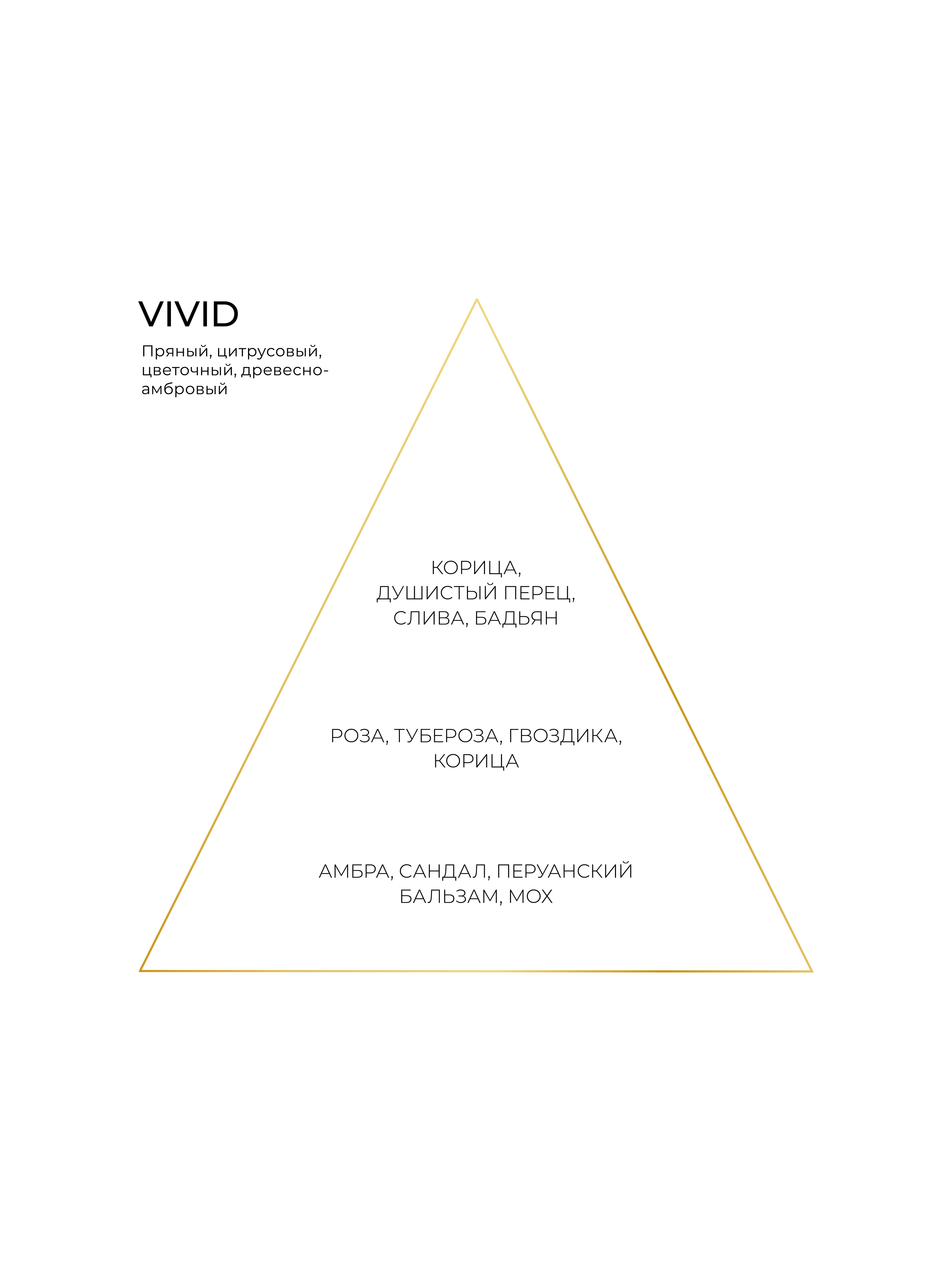 The fragrance Vivid by Yana is a feminine scent belonging to the spicy-floral family. It was created in 2015 and became one of seven fragrances in the Yana perfume collection by designer Yana Raskovalova. The top notes are cinnamon, allspice, plum, star anise; the heart notes are rose, tuberose, cinnamon and clove. The base notes are languid amber, sandalwood, Peruvian balsam and moss. This fragrance is suitable for a bright girl who is not afraid to attract attention and is used to always being at the center of events.
