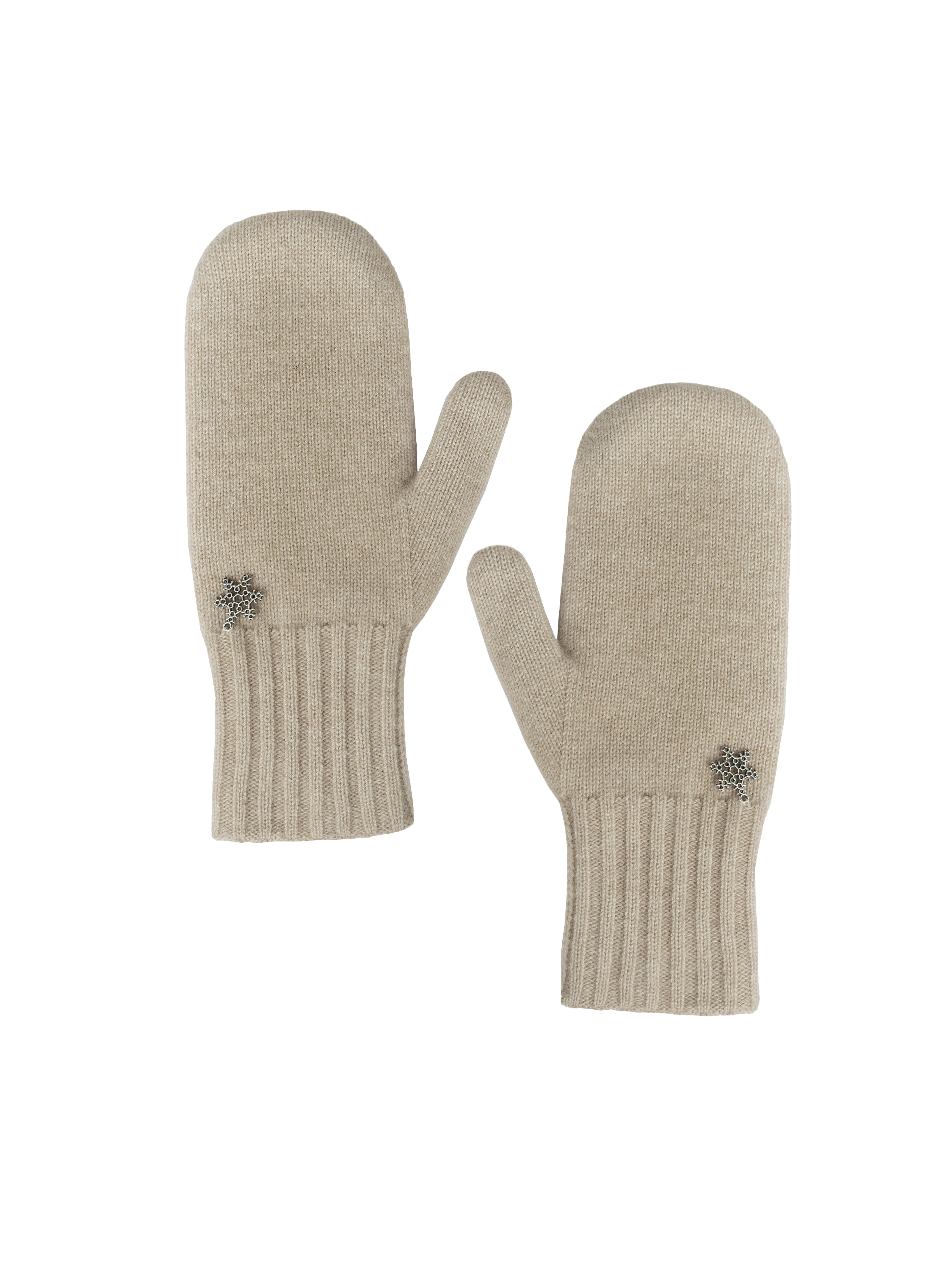 Warm mittens made of beige cashmere with a snowflake of 925 sterling silver.