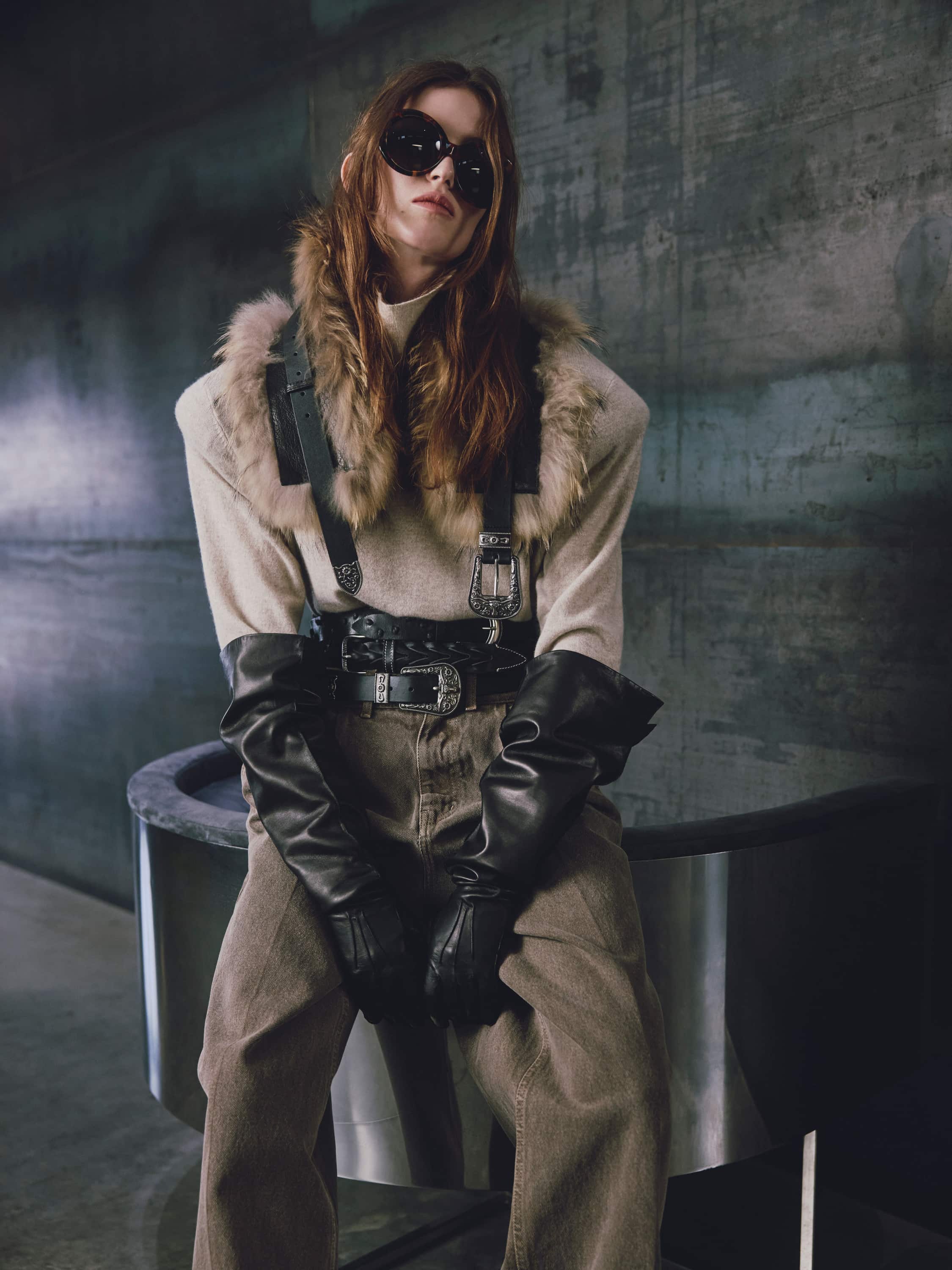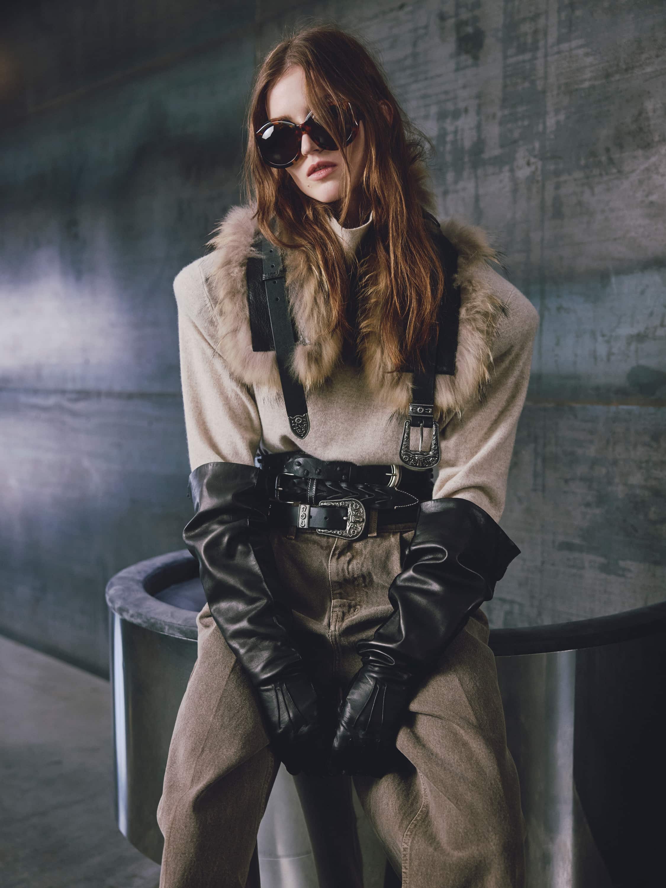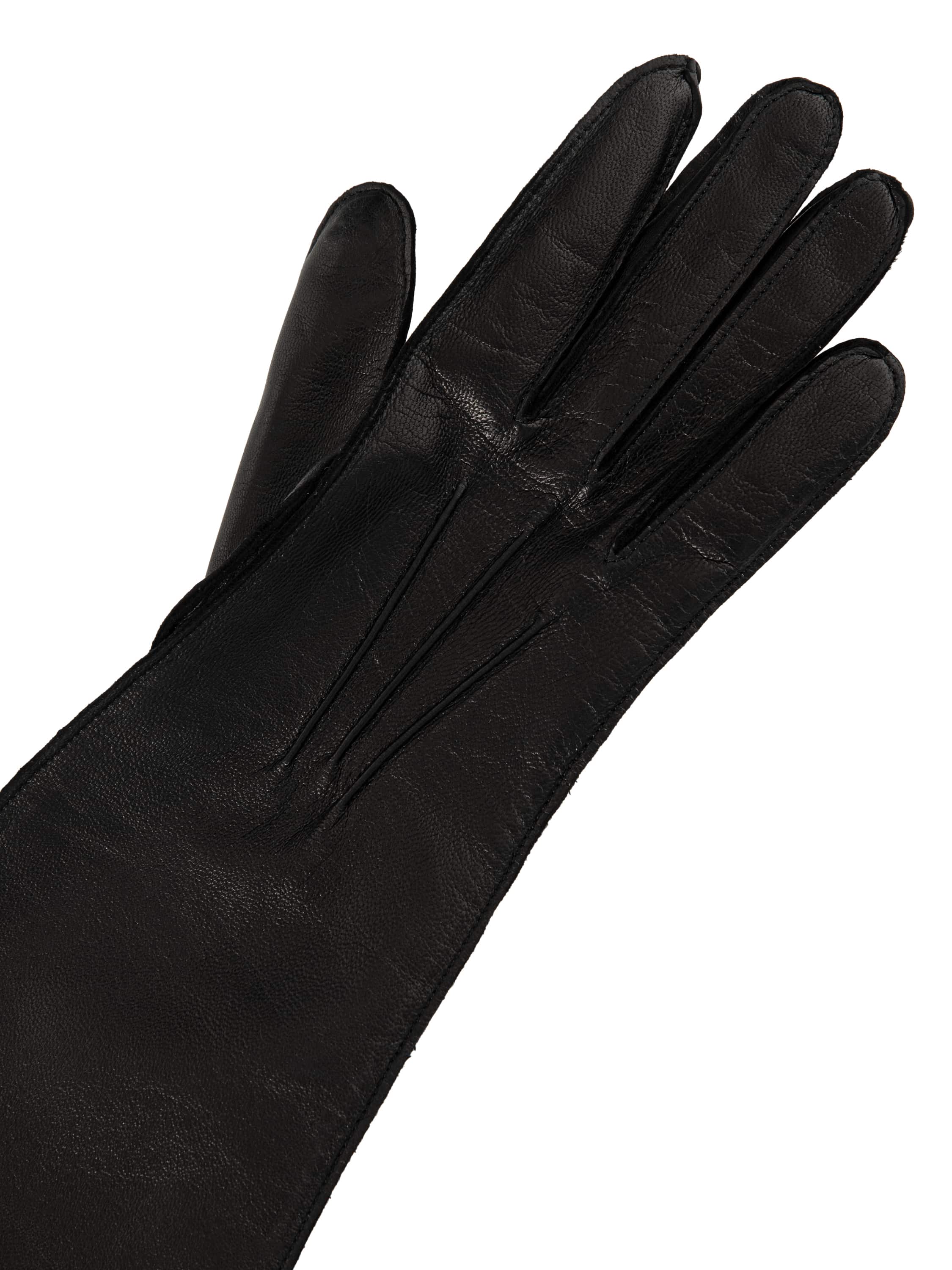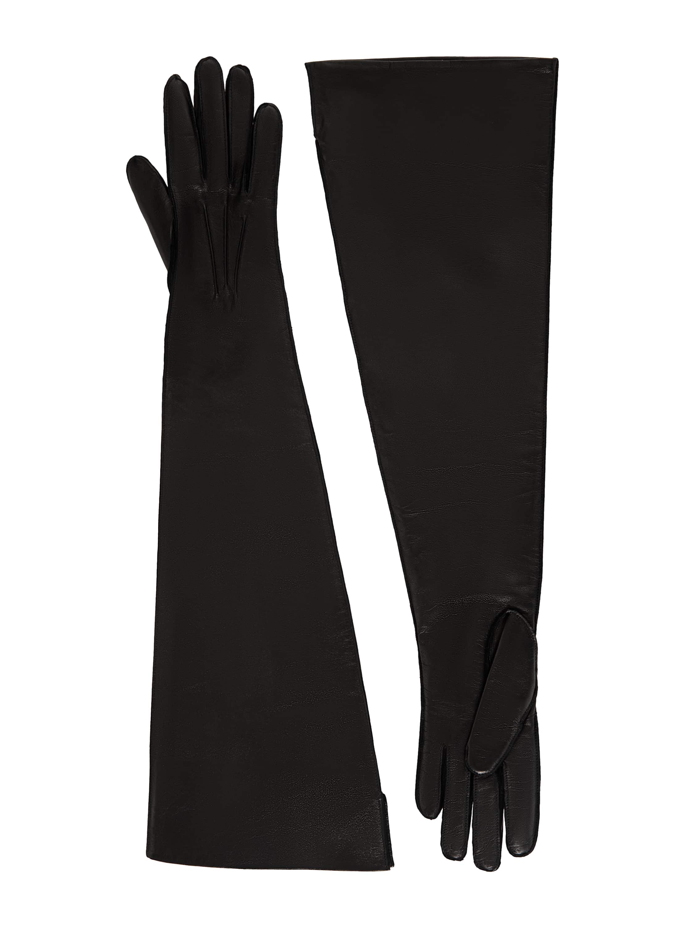 The elbow-length gloves are made of black lambskin leather. The lining is made of natural silk. Glove length: 59.5 cm.