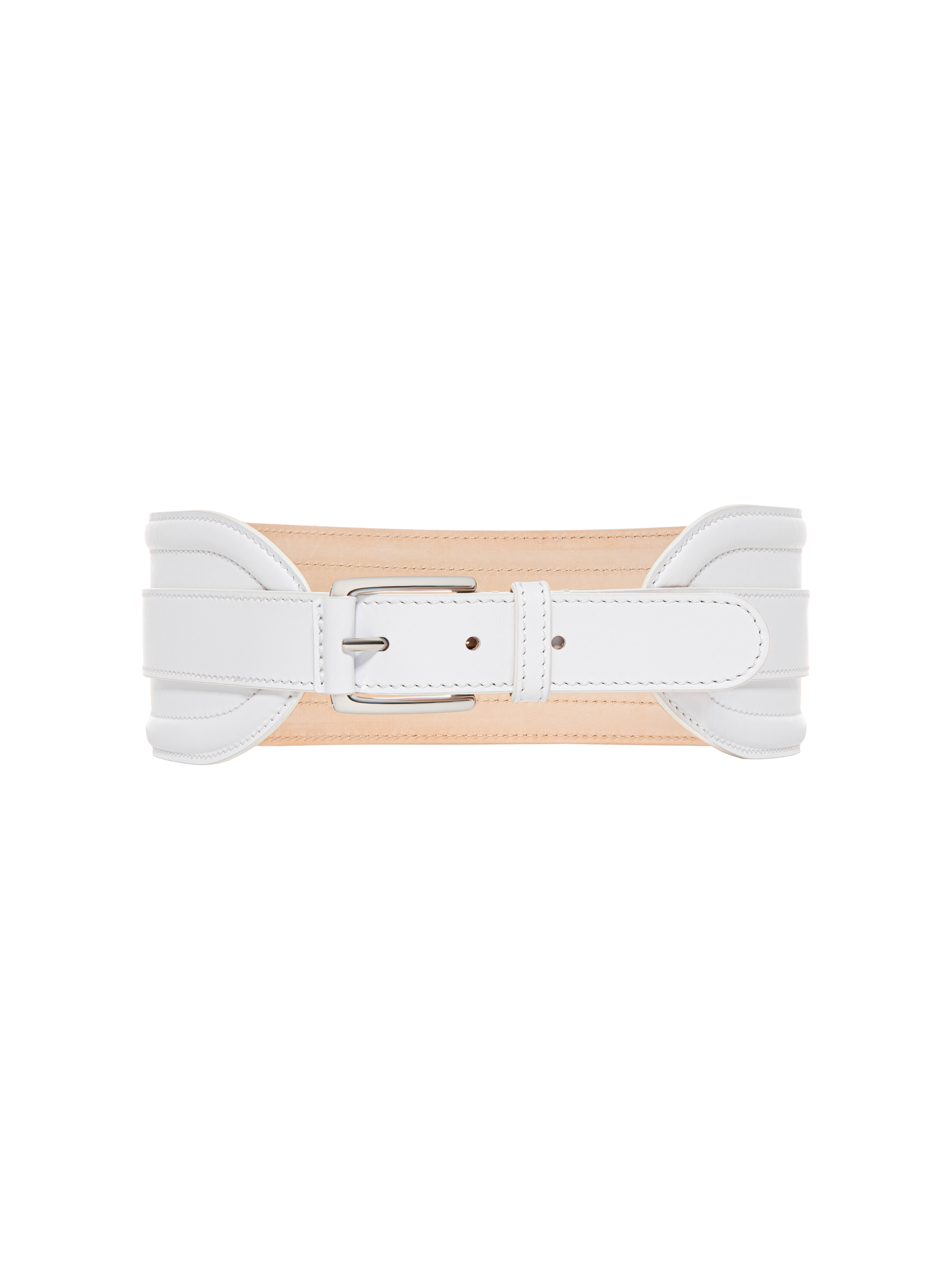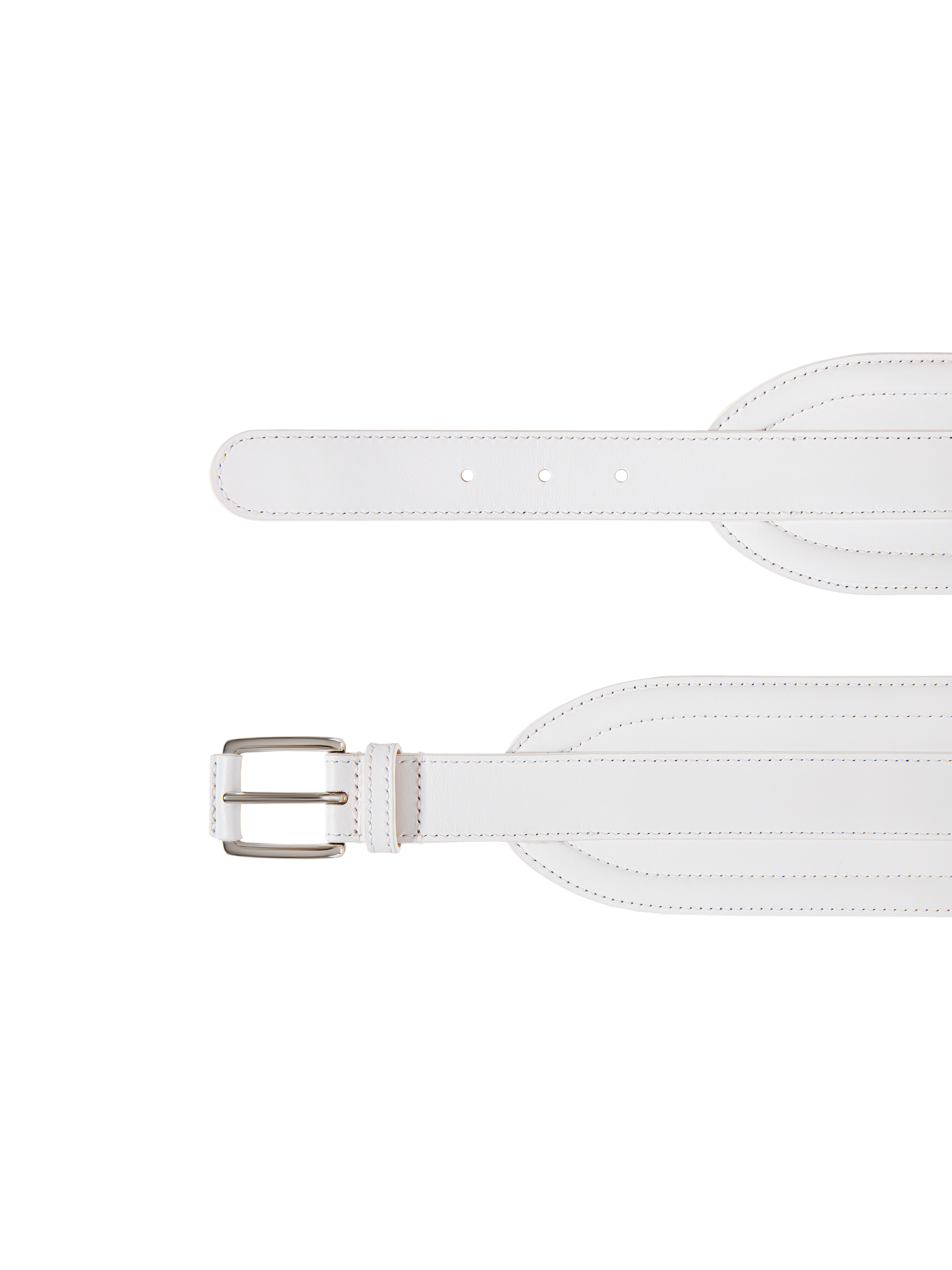 A wide white belt is made of smooth genuine leather. It will help to place accents in the look and emphasize a slim waist. XS — 65 cm, S — 70 cm, M — 75 cm, L — 80 cm.
