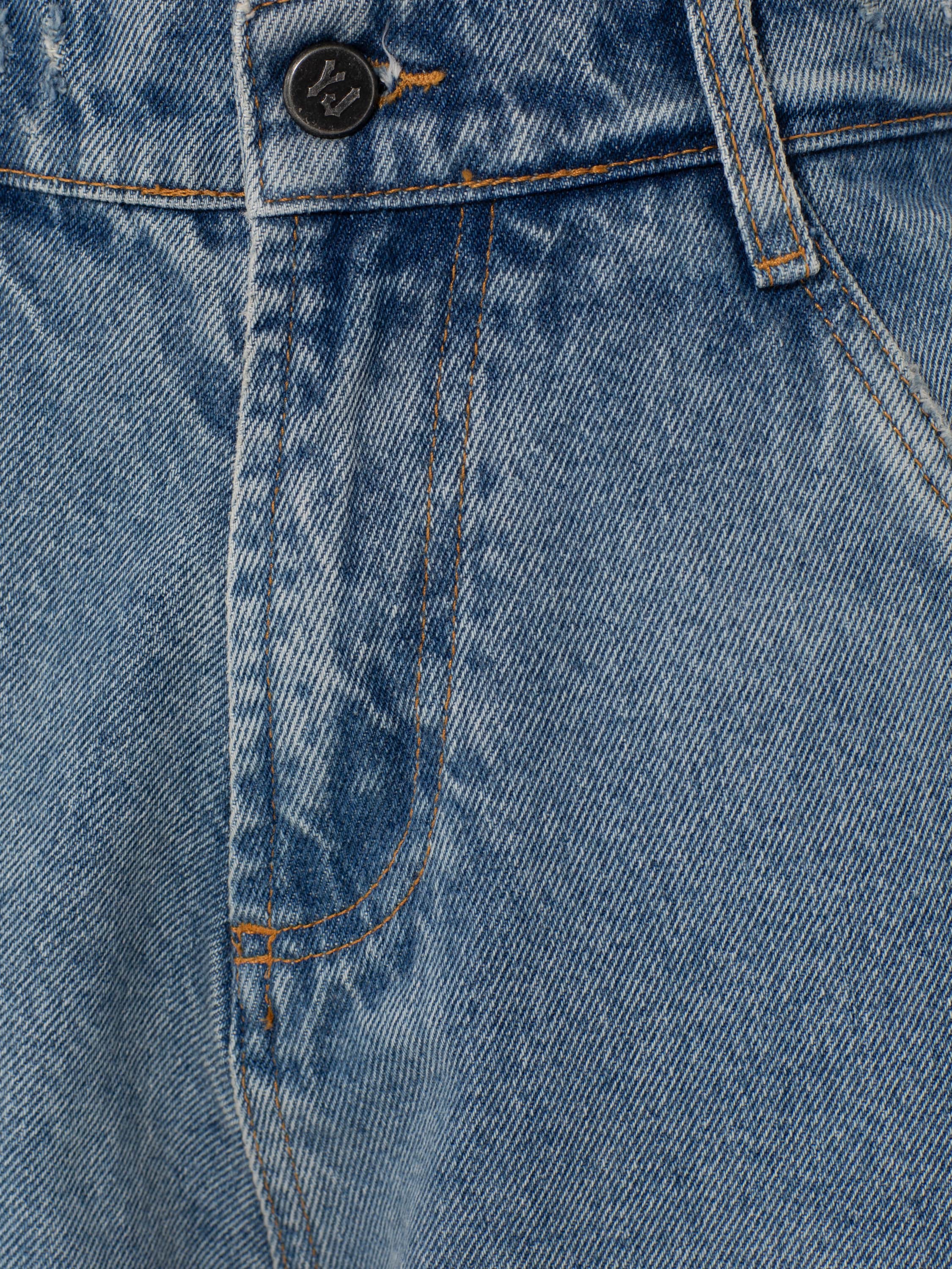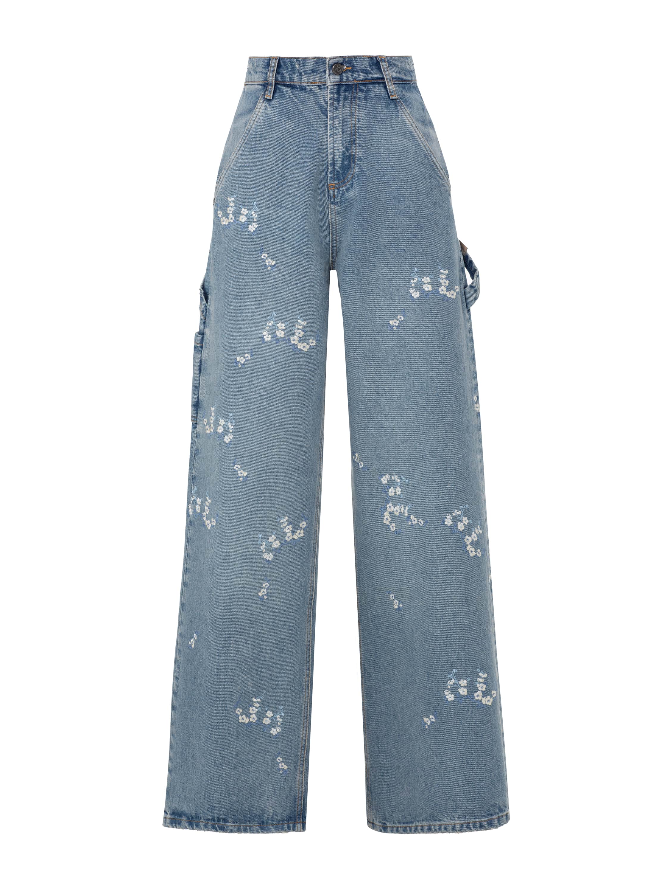 Wide blue jeans with a classic rise are the trendiest model that will make your basic look striking and expressive. The piece is decorated with delicate floral embroidery in the form of sakura.