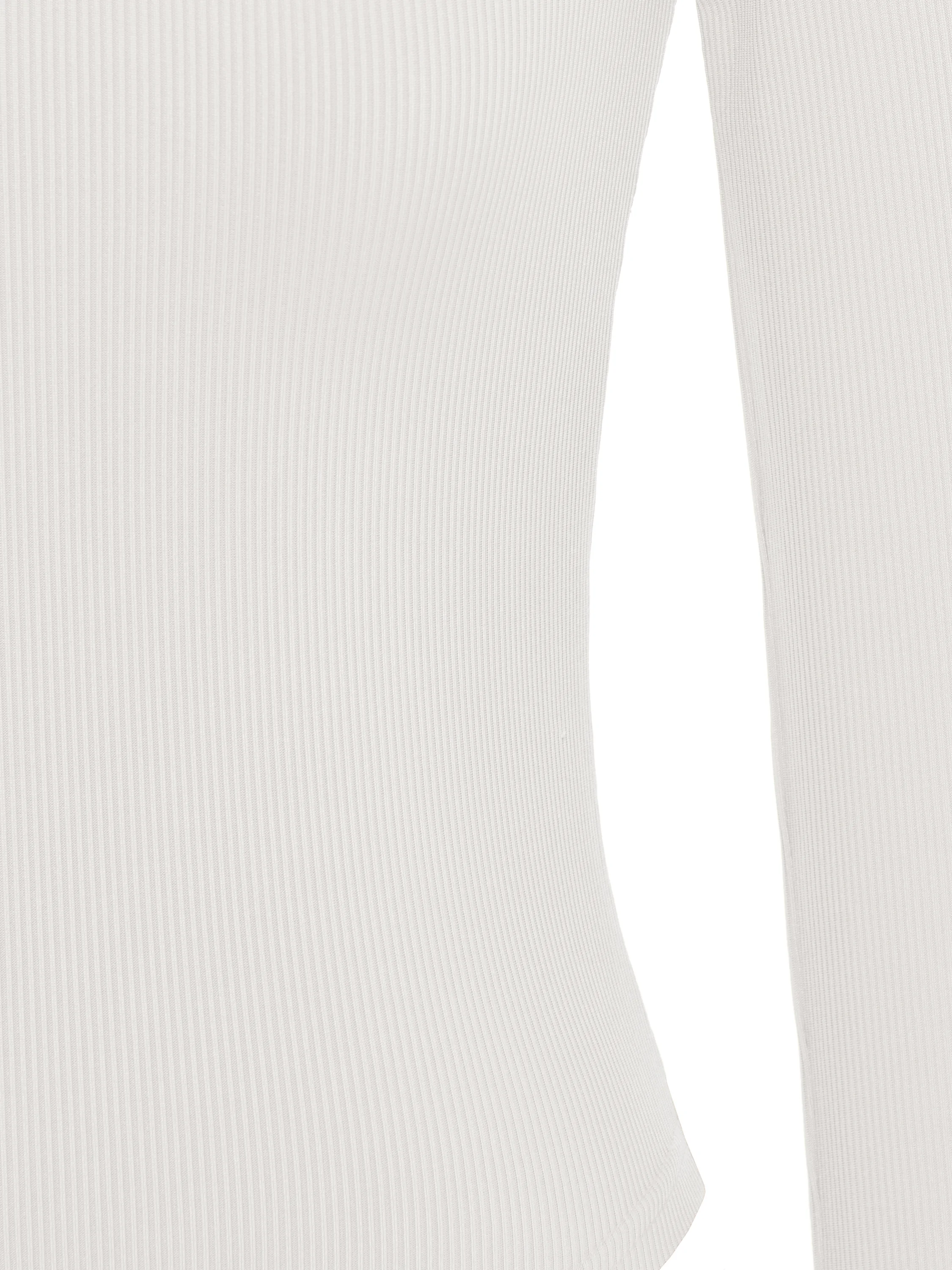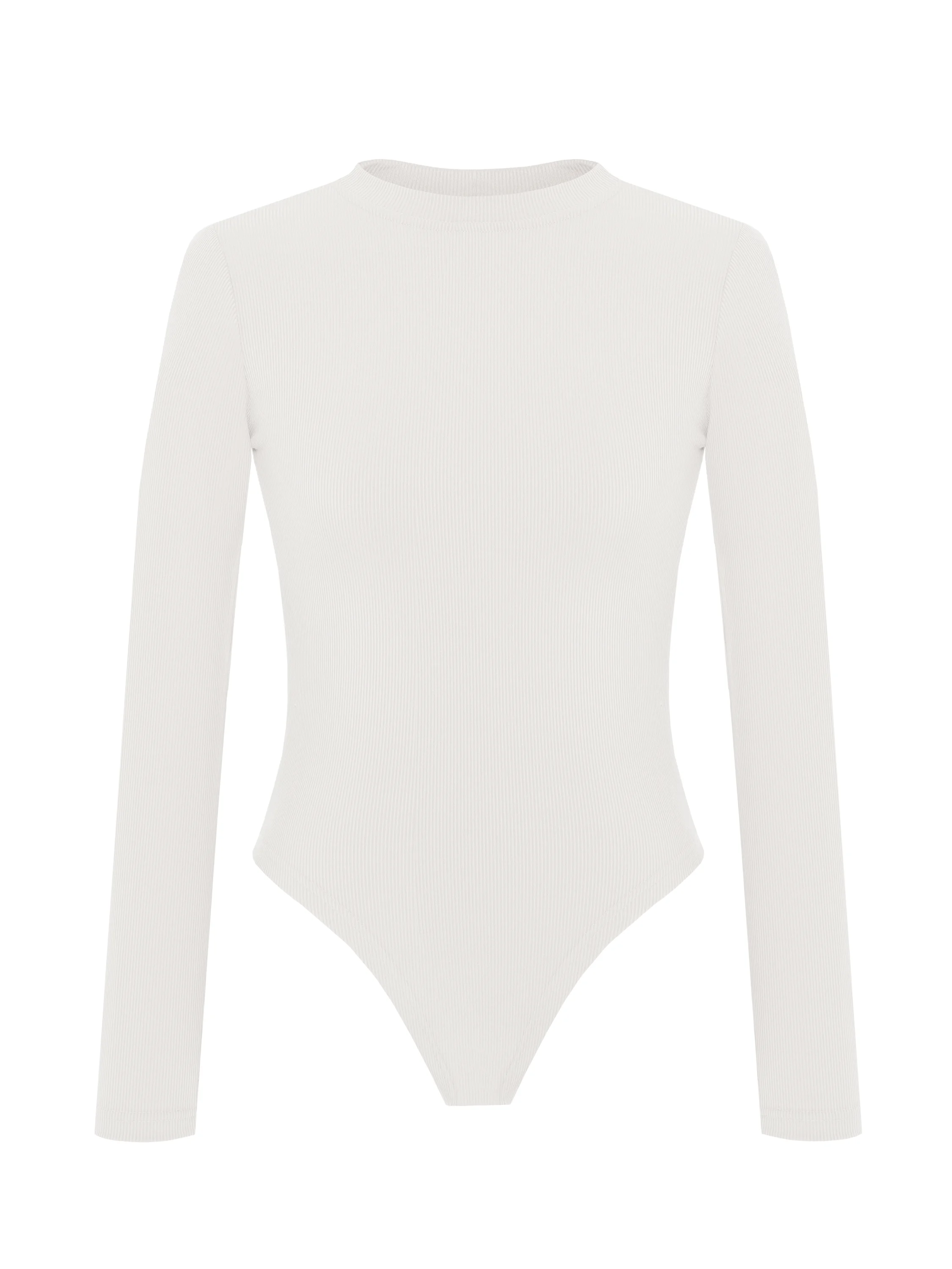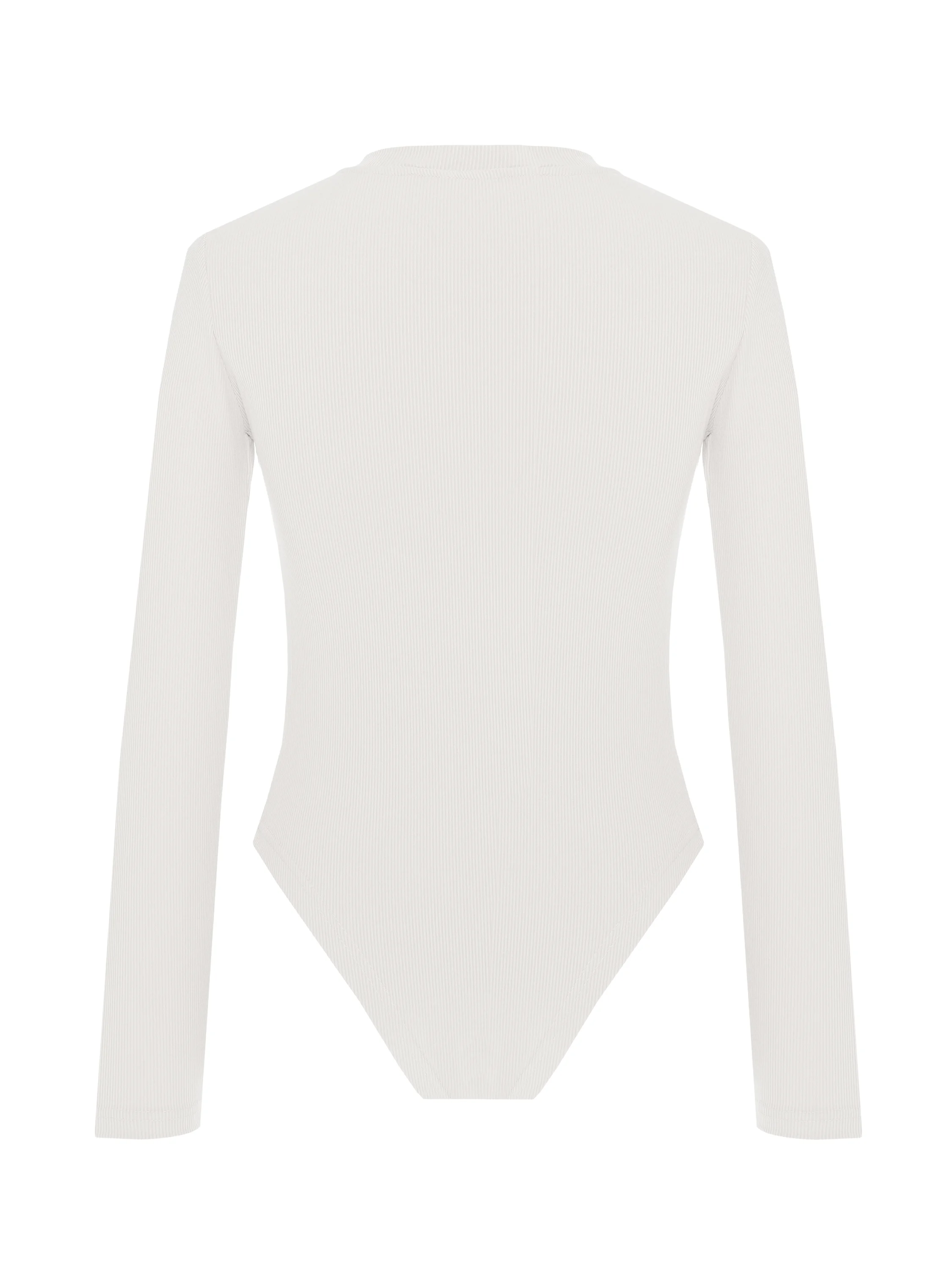 A white bodysuit with a crew neck and long sleeves will cope with the role of a basic piece both for an everyday look and for an office outfit. The model is made of cotton ribbed knit. The model fastens with snap buttons at the bottom.