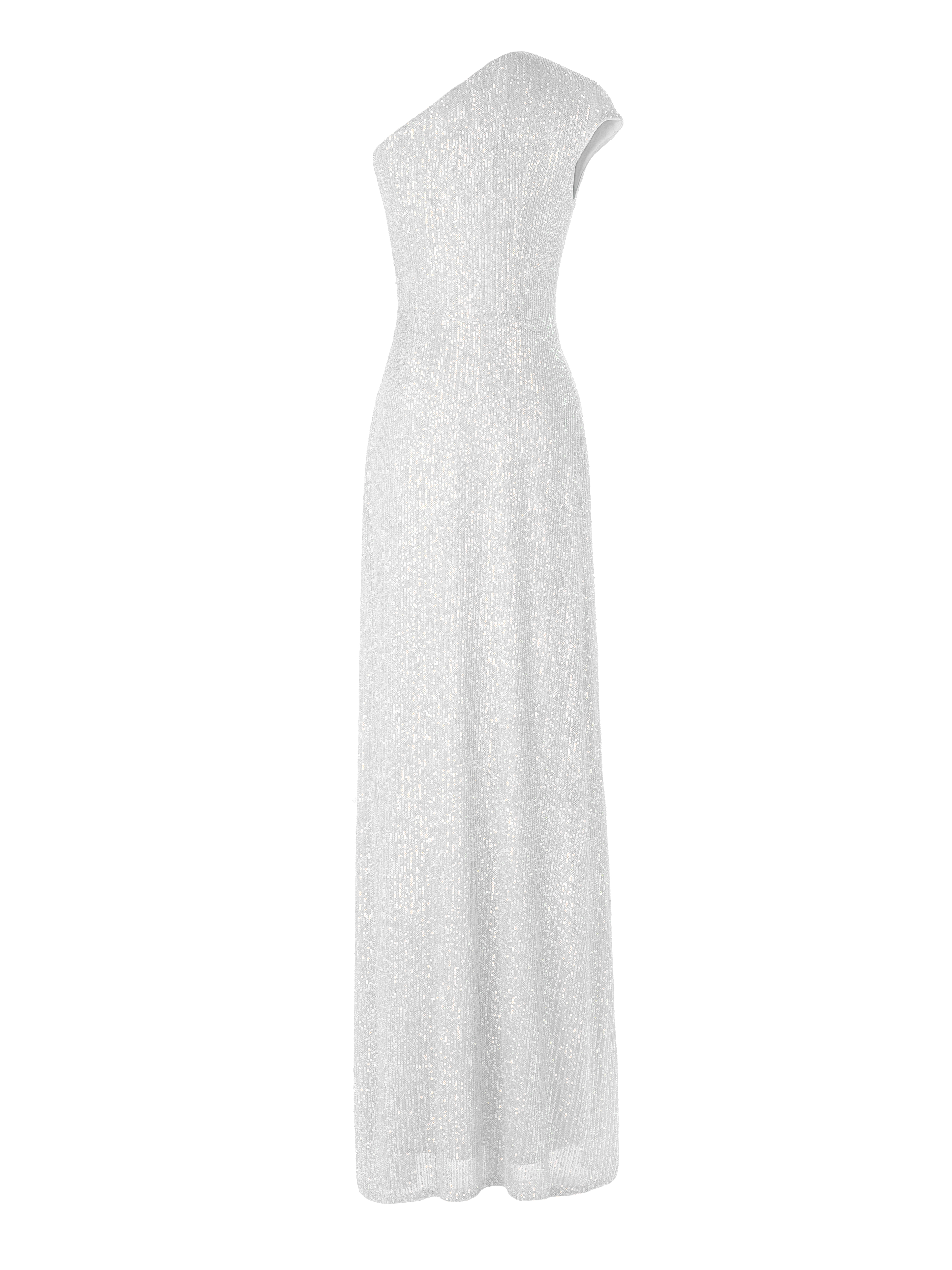 White Sequined One Shoulder Maxi Dress