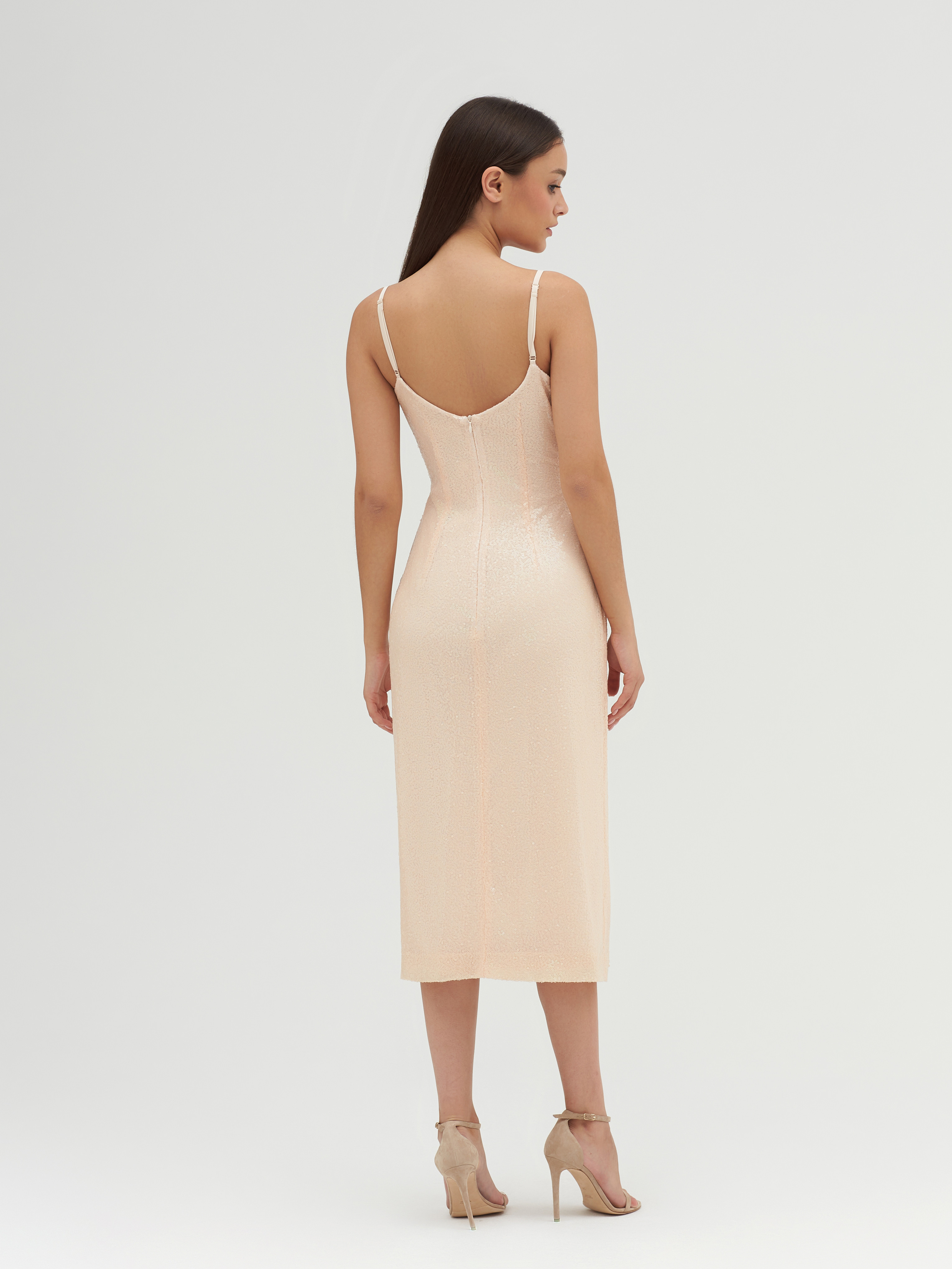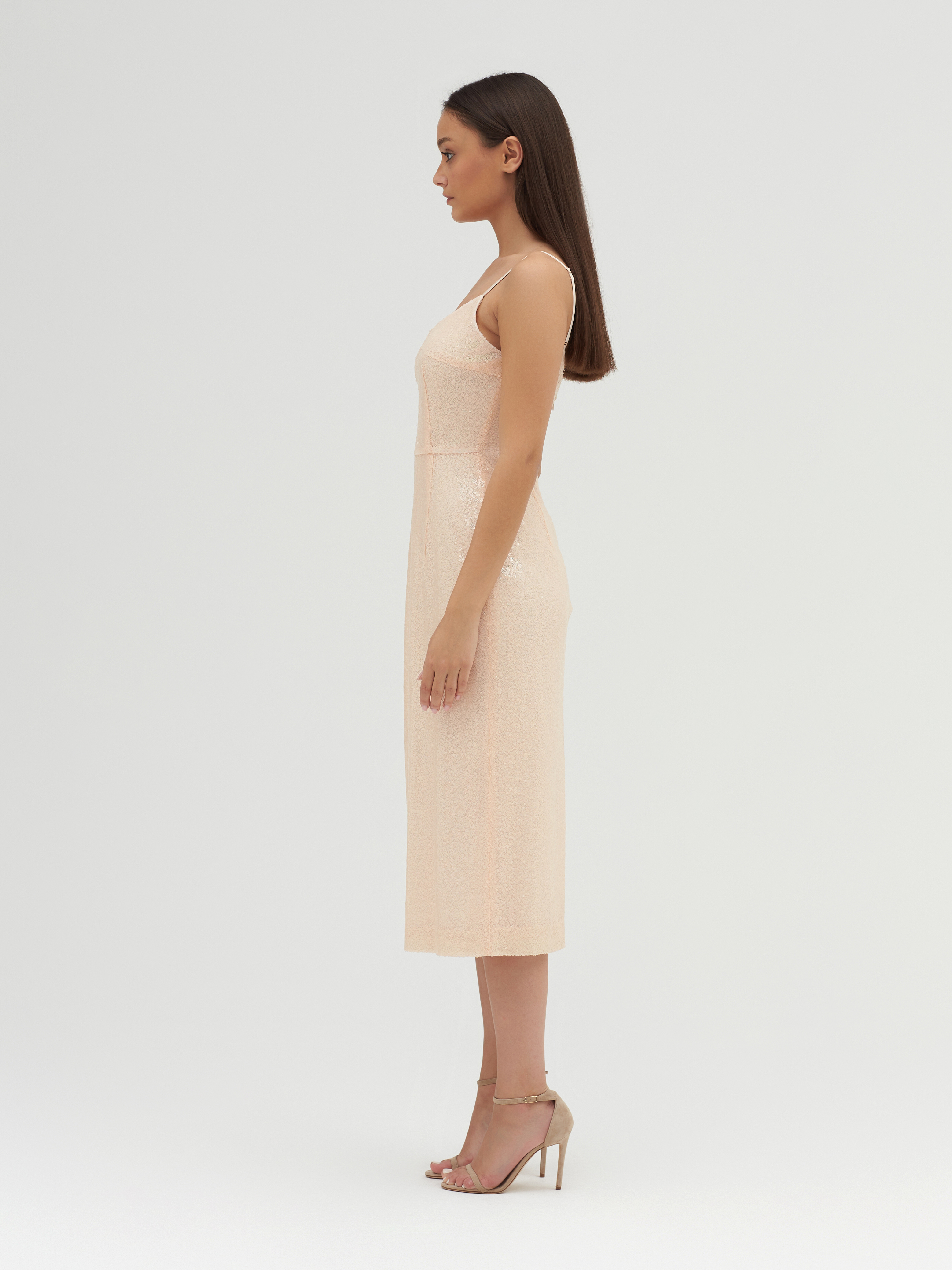 Бежевое платье-миди в пайеткахЧерное платье-миди в пайеткахСеребристое платье-миди в пайетках