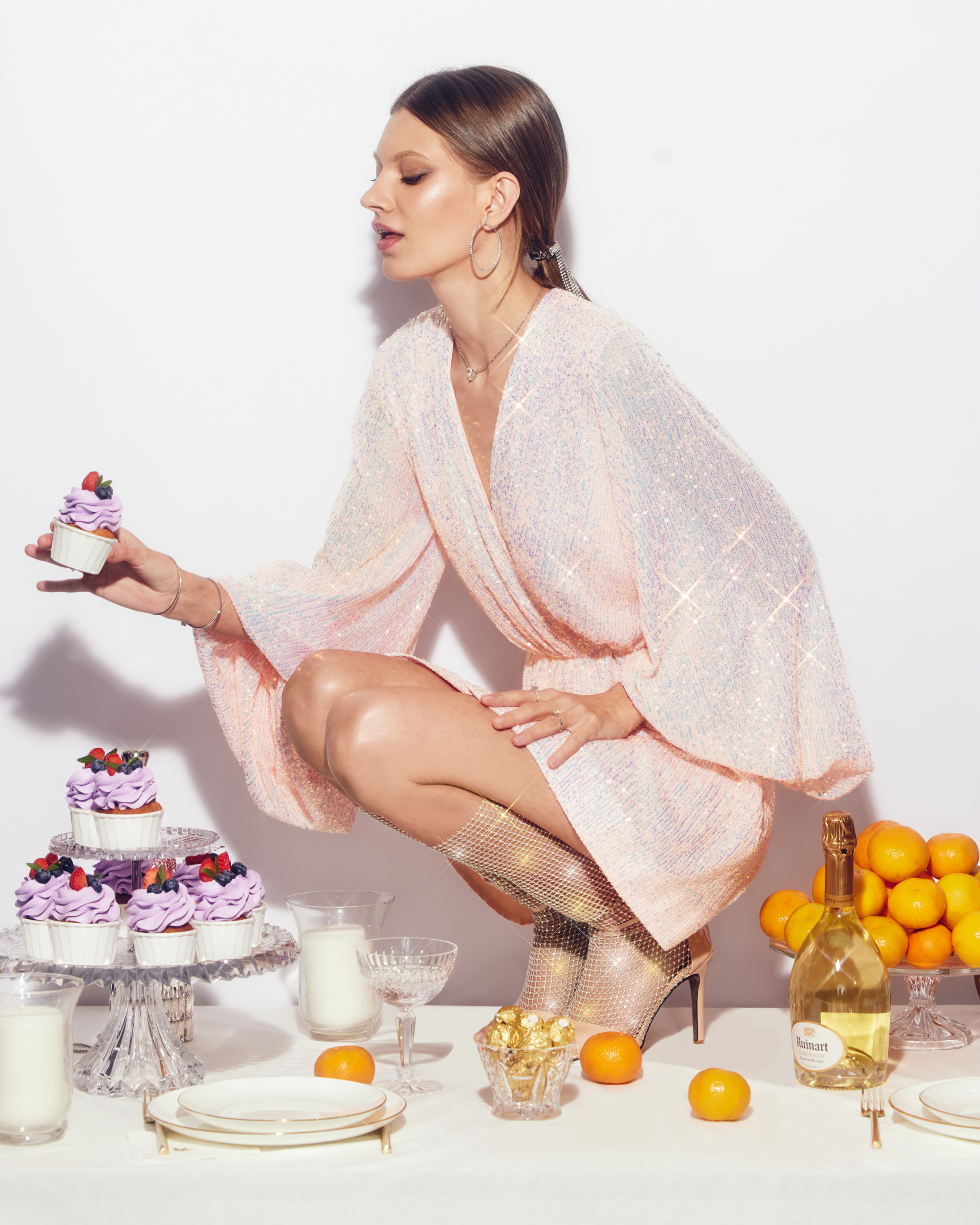 High stiletto sandals are made of beige patent eco-leather and mesh. Covered with rhinestones, they will blaze with millions of sparks in the light of spotlights and festive lights. The sandals fasten with a zipper at the back.