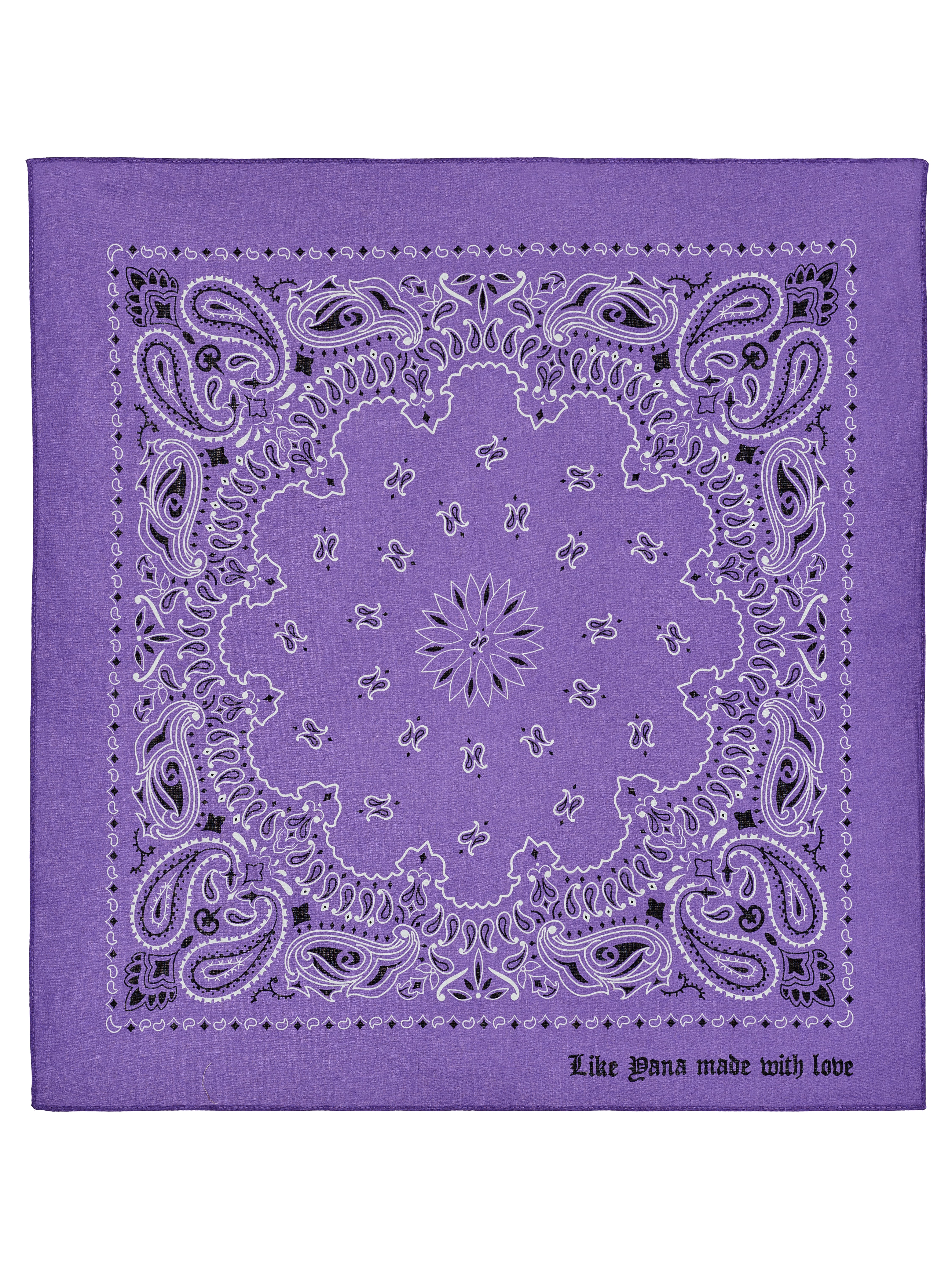 The purple bandana with a paisley pattern is direct proof that an accessory can become the key accent of a look. The model is made of natural cotton and complemented by the inscription "Like Yana made with love". The bandana can be tied on the head, neck, wrist or the strap of your favorite bag. Size: 53x55 cm.