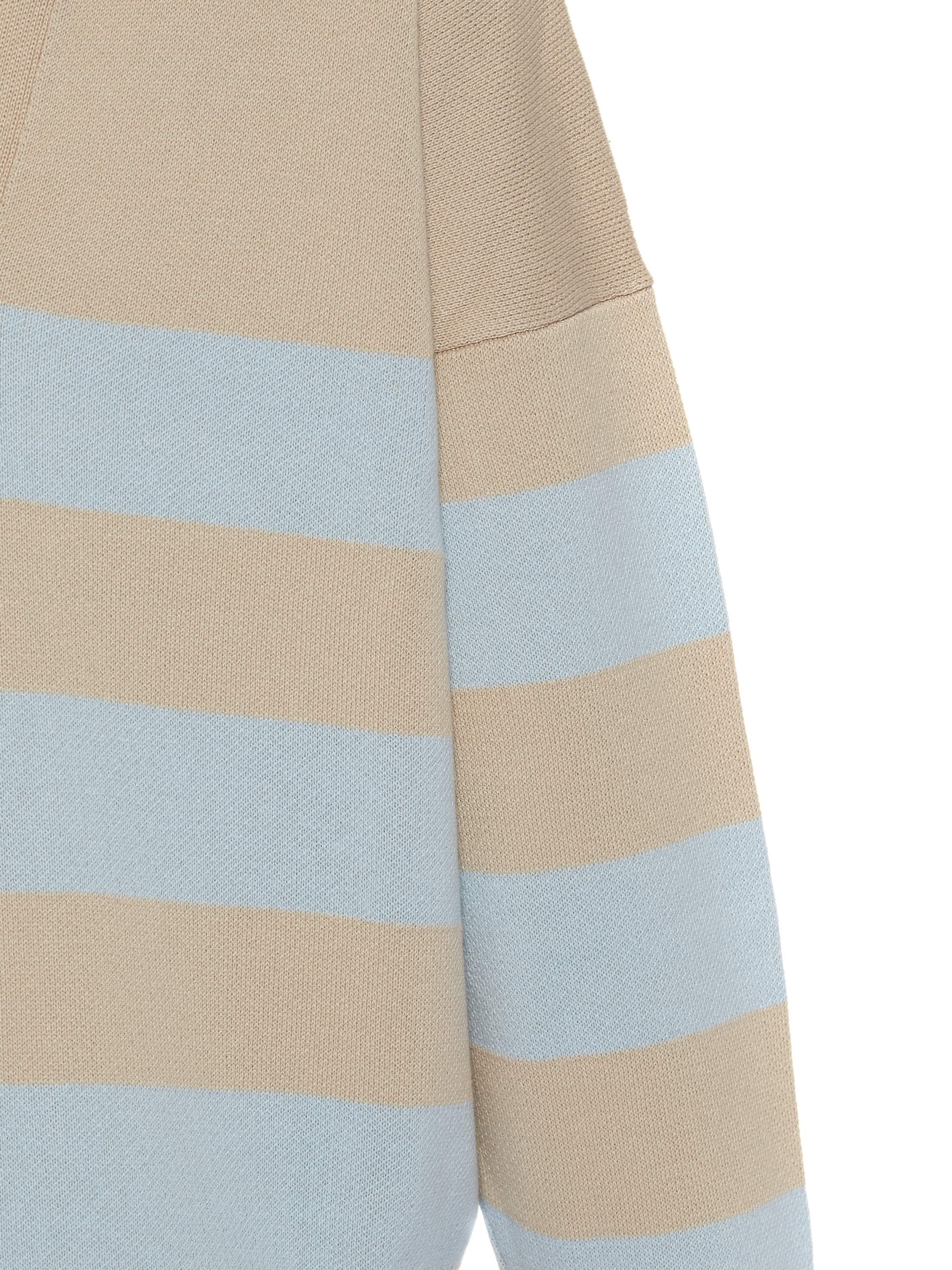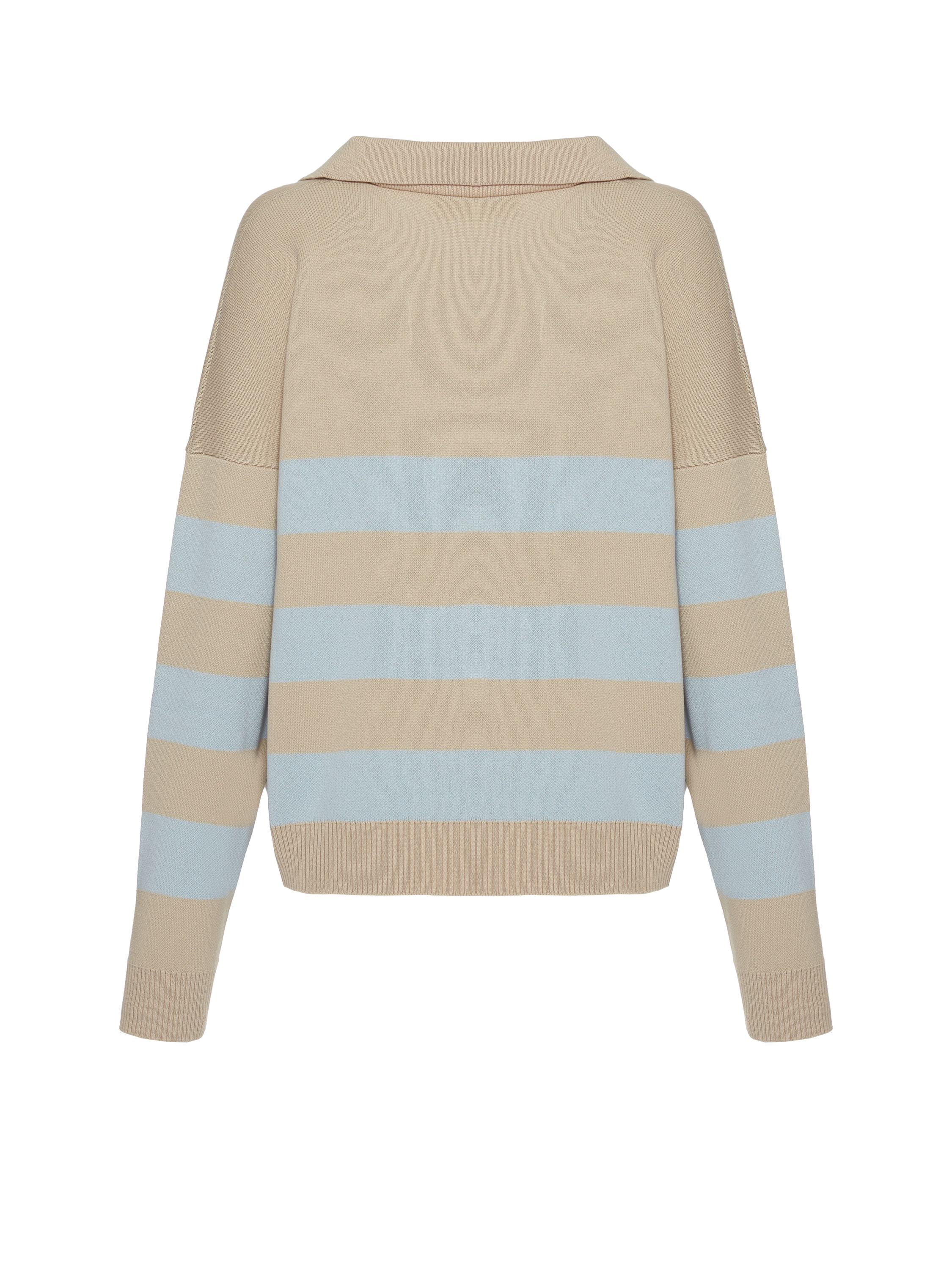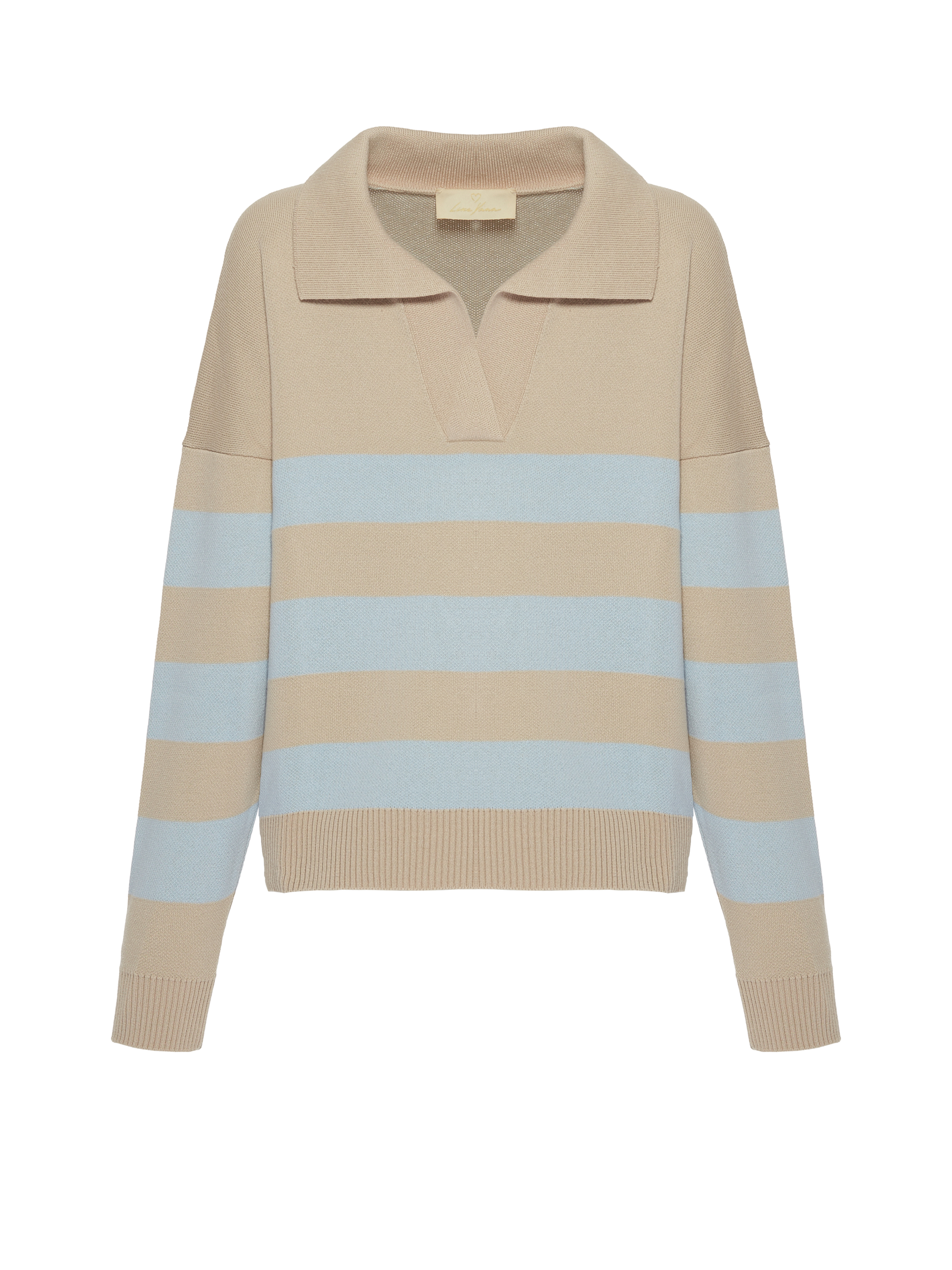 A pullover in wide beige and light blue stripes made of cotton blend. The oversized model is barely felt on the body while keeping you warm. The pullover will perfectly complement an everyday look with denim from Yana Jeans and footwear from Like Yana.