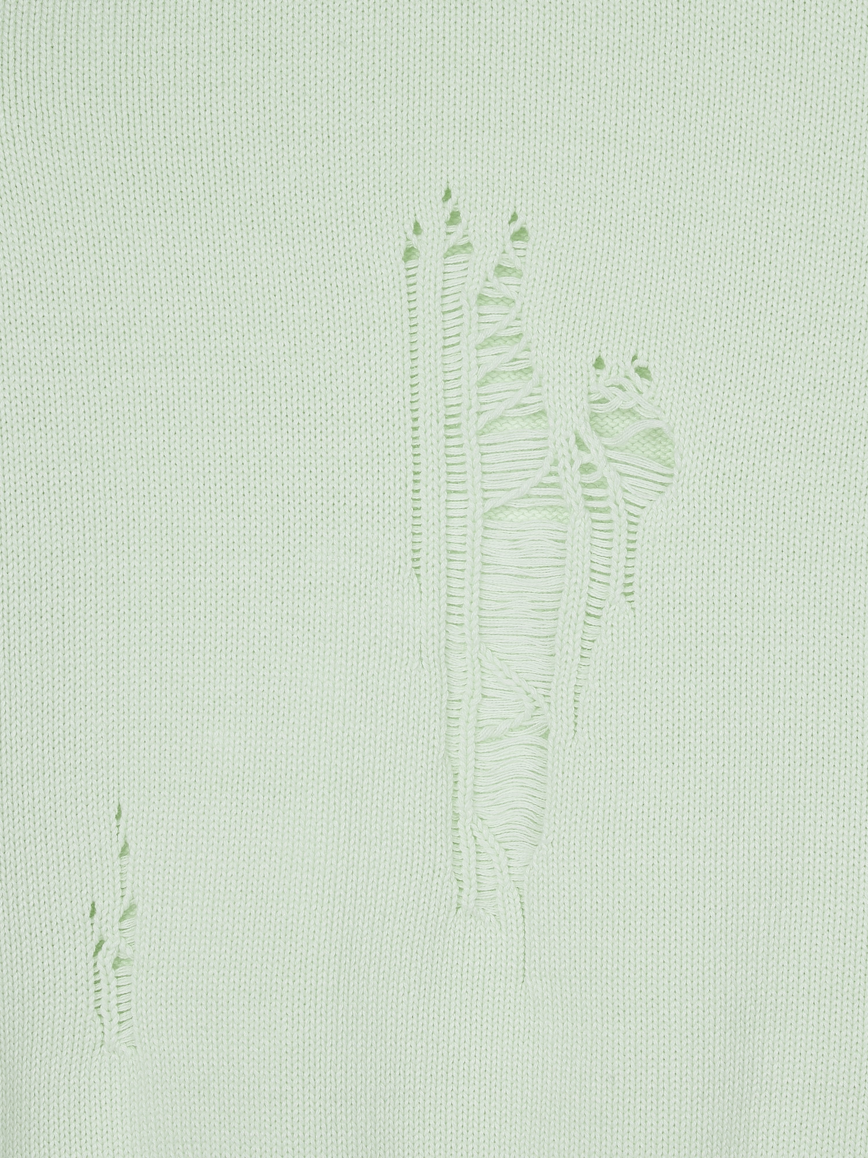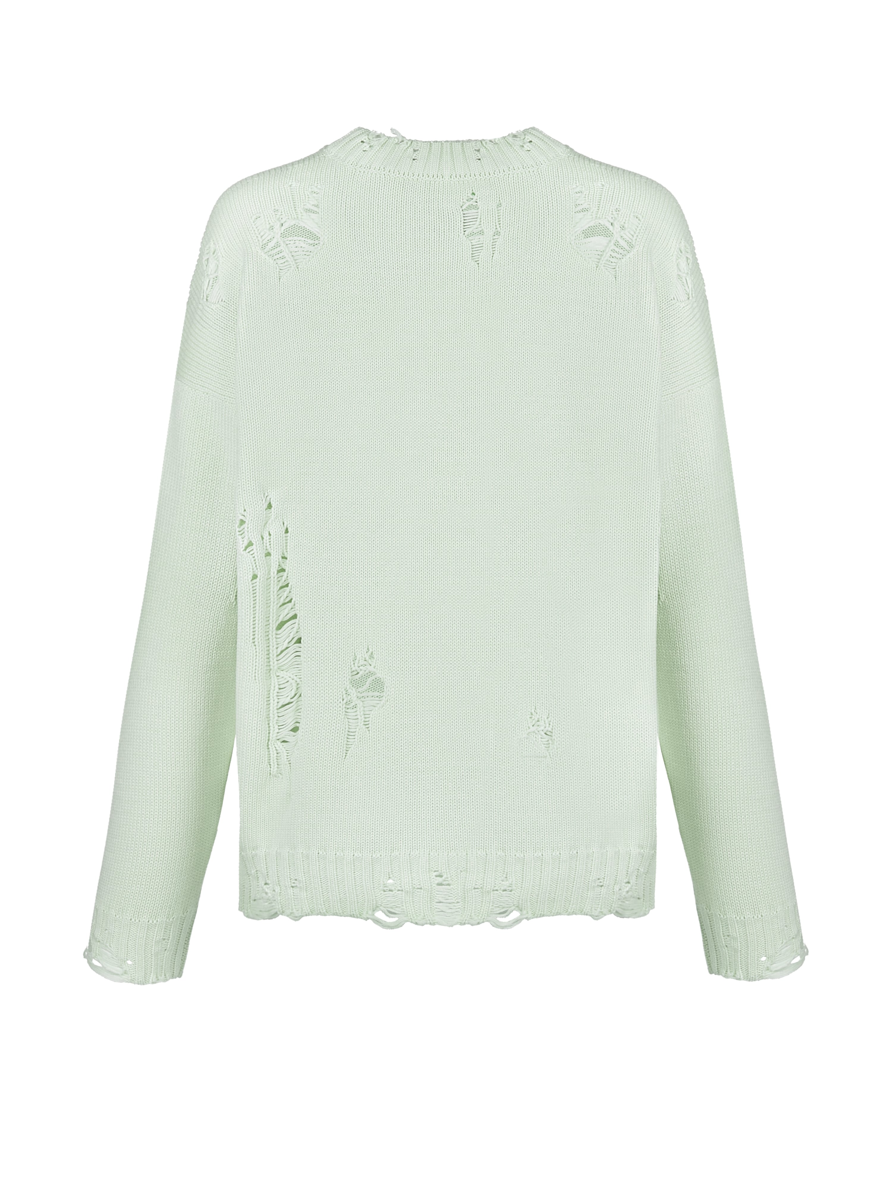 Long mint-colored sweater with a crew neckline made of cotton blend in grunge style. The oversized silhouette is complemented with decorative dropped stitches. The sweater looks best with flared jeans or shorts. To complete a 90s-inspired look, you can also add silver chains and chokers from Silver by Yana.