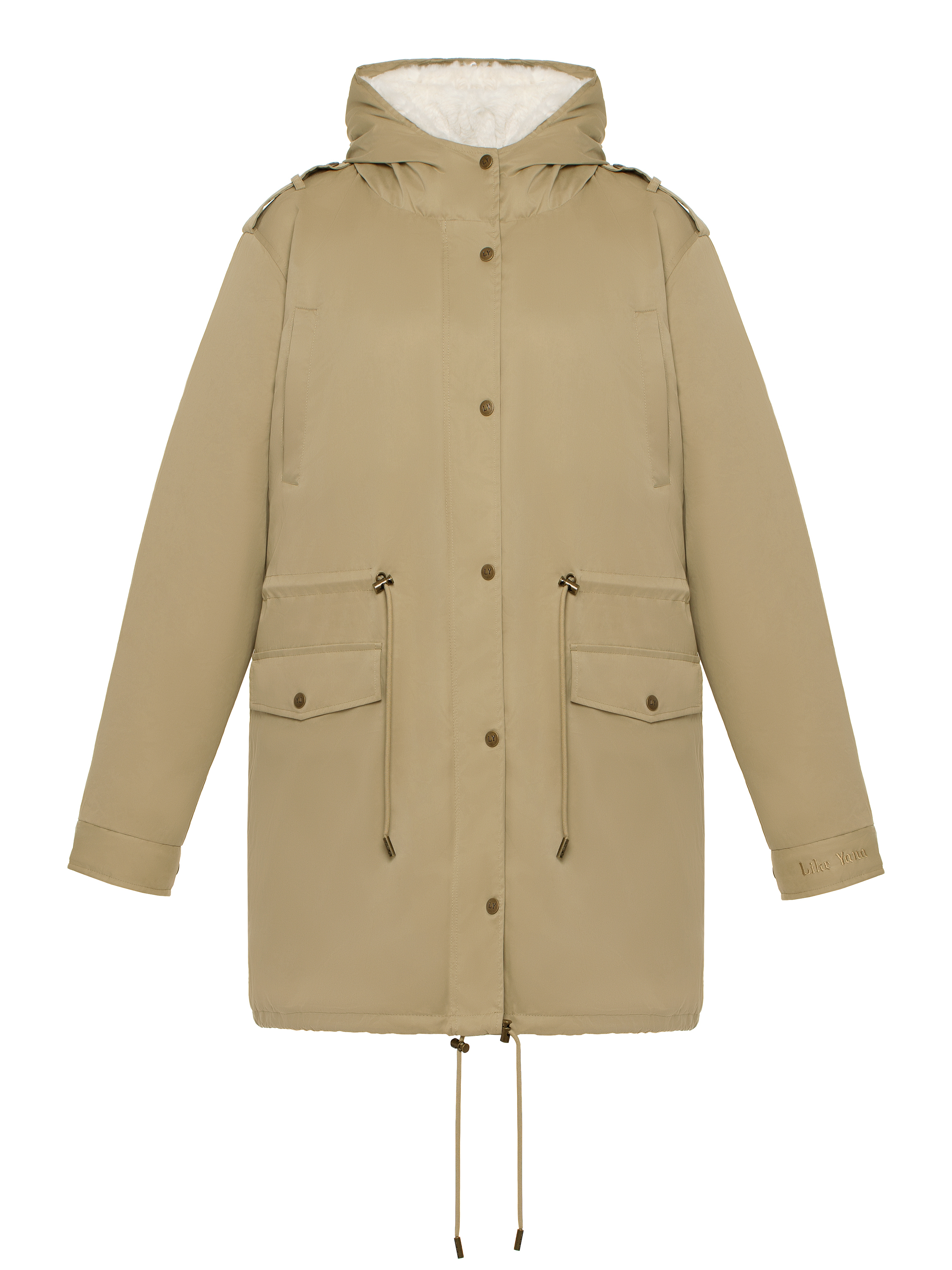 Парка из плащевки молочного цвета со съёмной подстежкой из эко-меха, с капюшономПарка из плащевки цвета хаки со съёмной подстежкой из эко-меха, с капюшоном