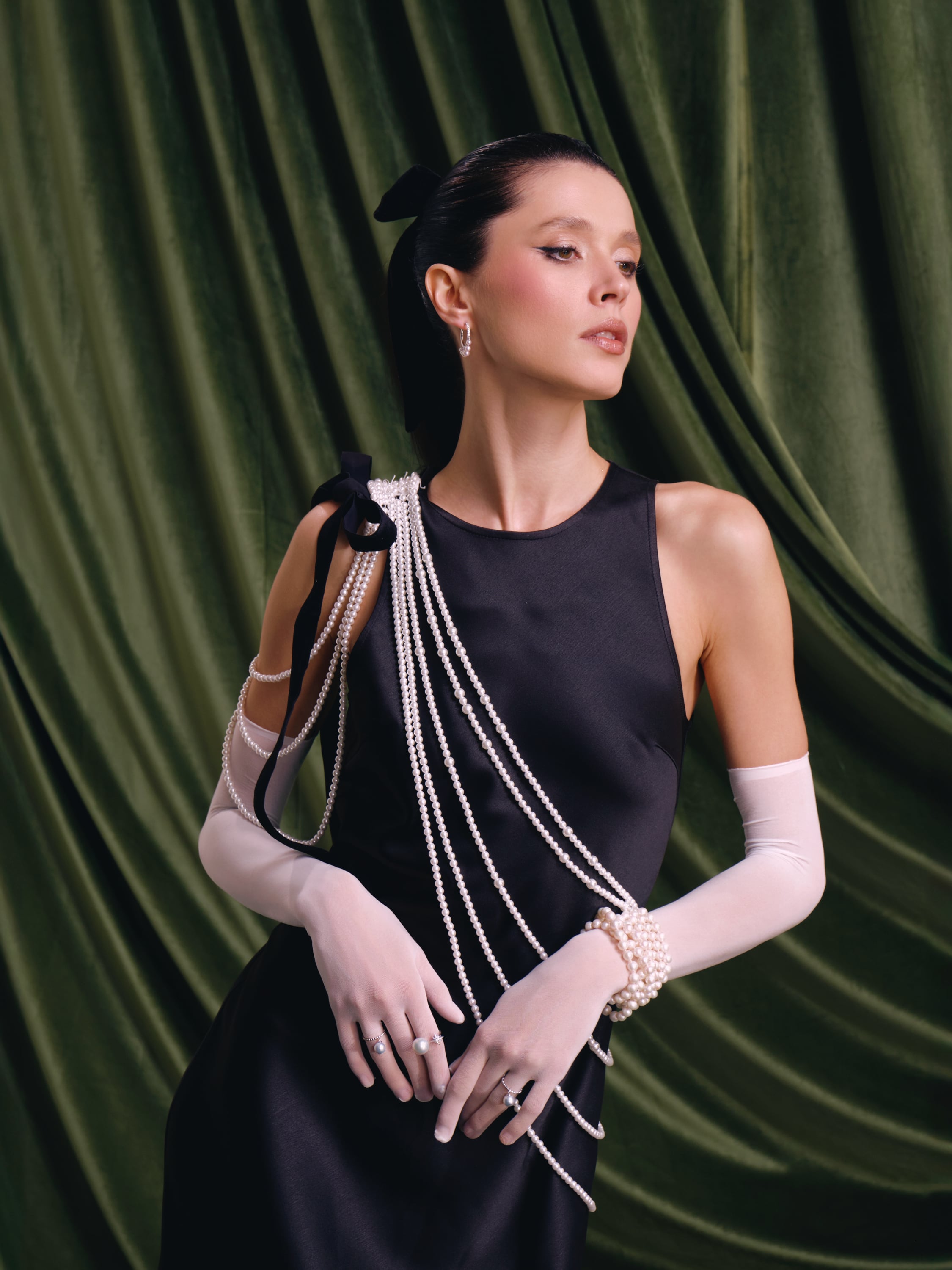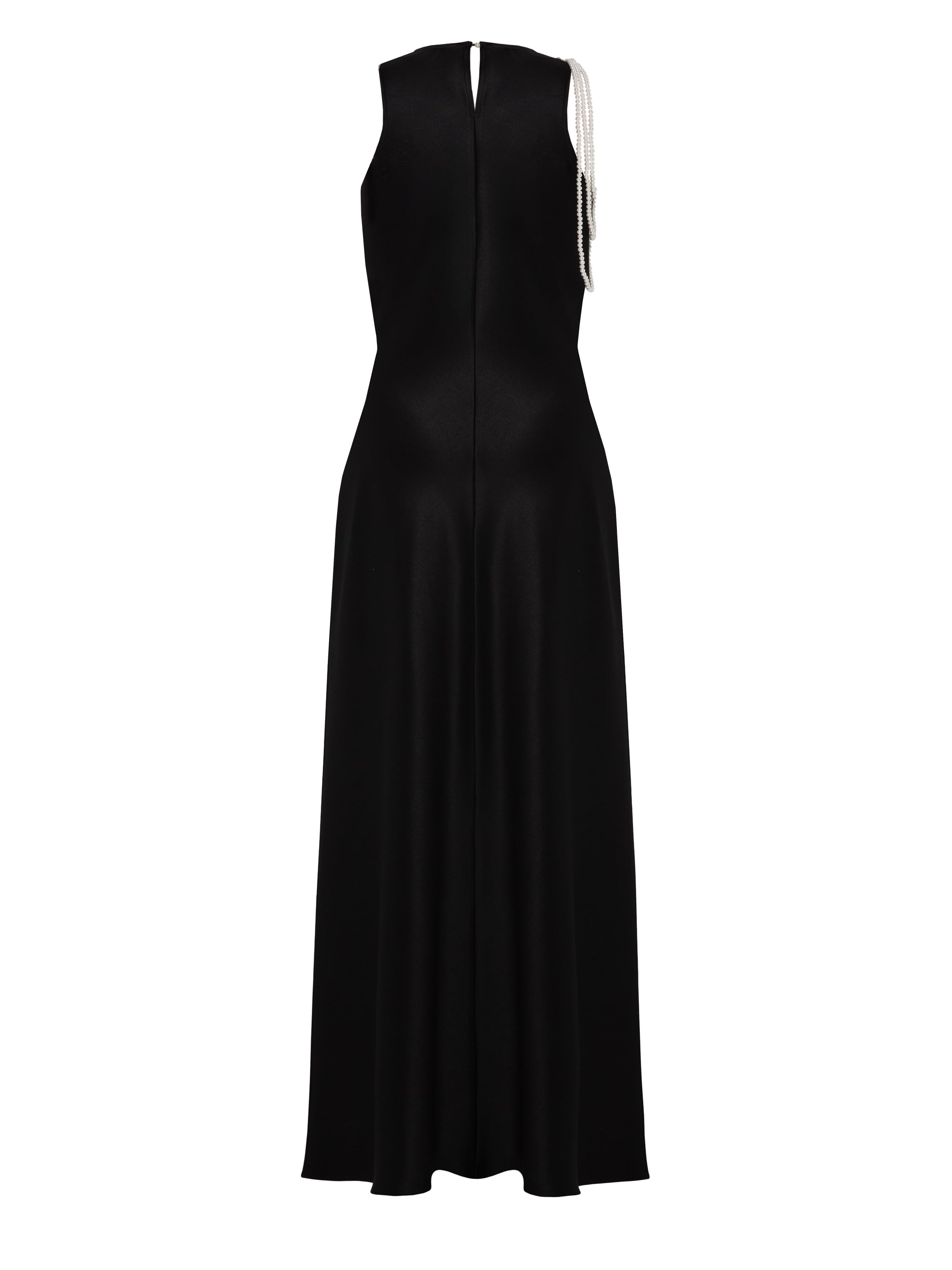 A striking floor-length dress with pearl strand embellishment guarantees a flawless evening look. The sleeveless model with a round neckline perfectly accentuates the silhouette.