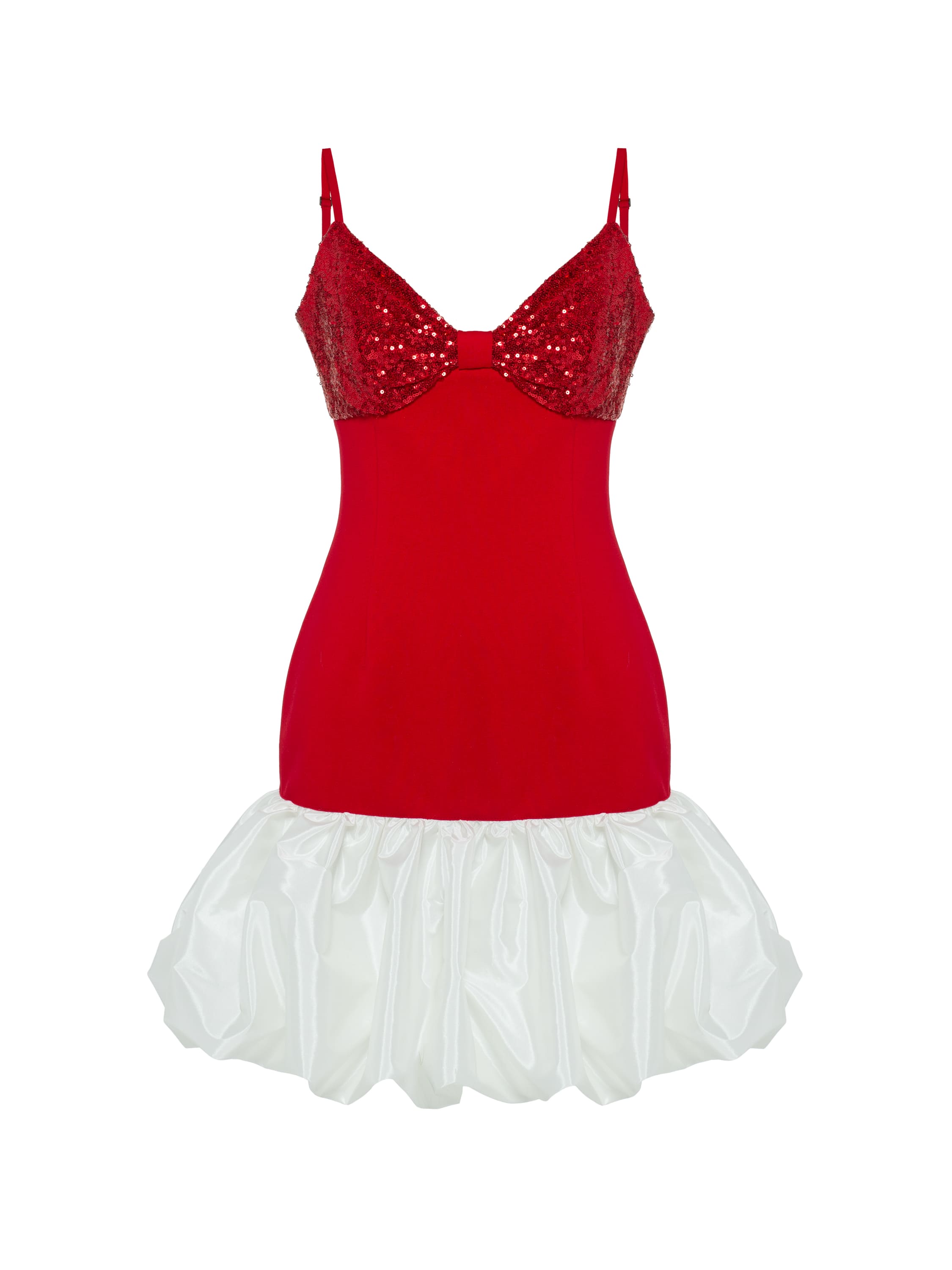 Red mini dress with white balloon skirt