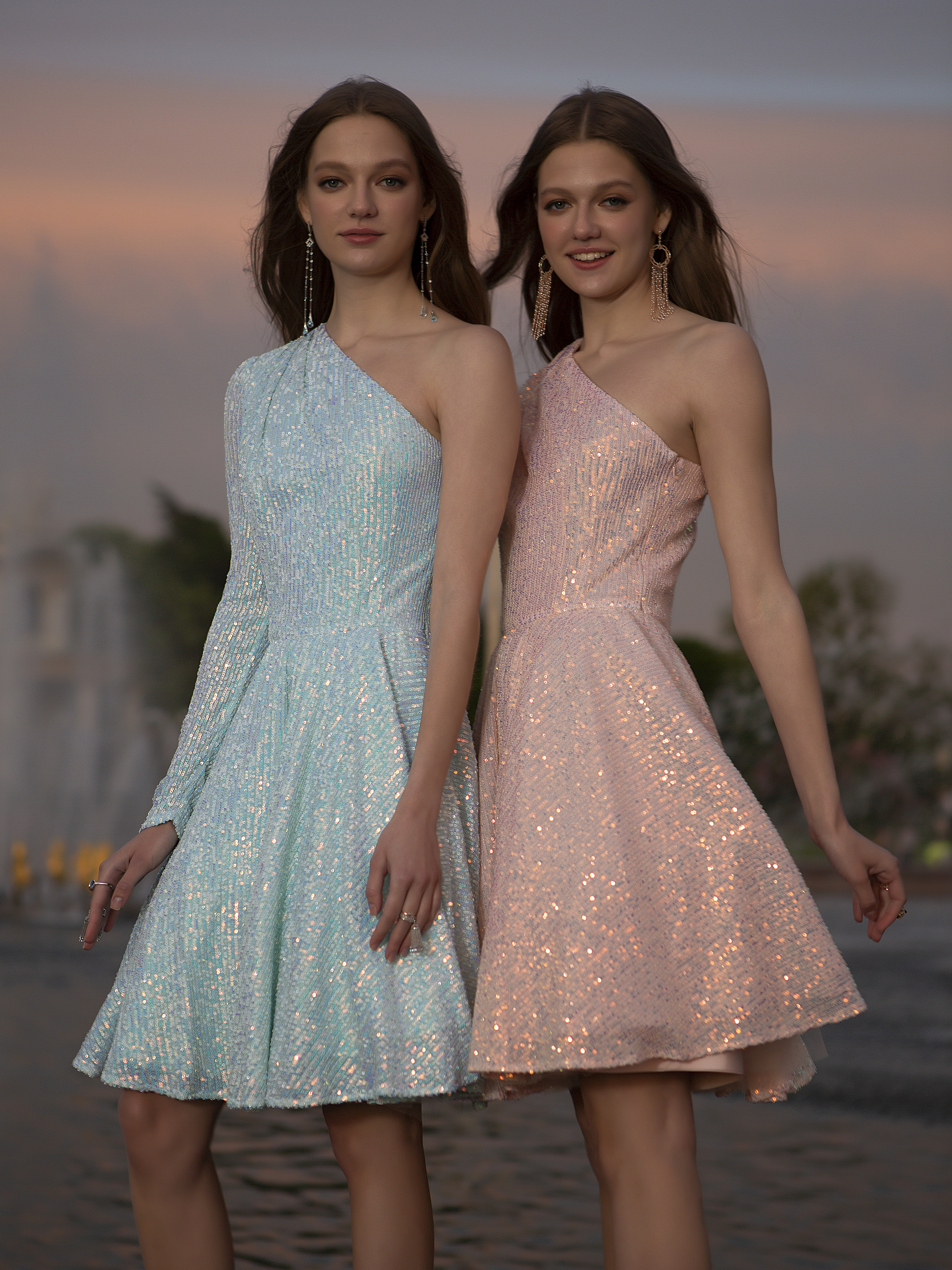 Розовое платье из пайеток с асимметричным топомБирюзовое платье из пайеток с асимметричным топомБелое платье из пайеток с асимметричным топом