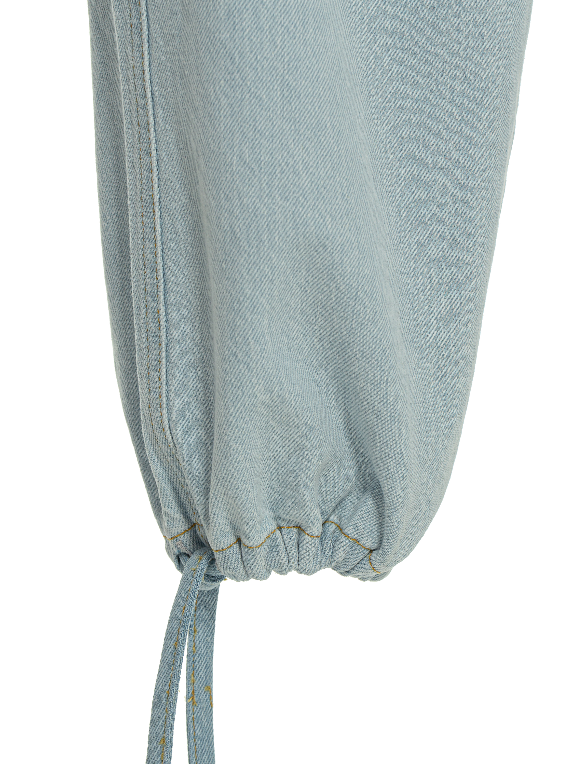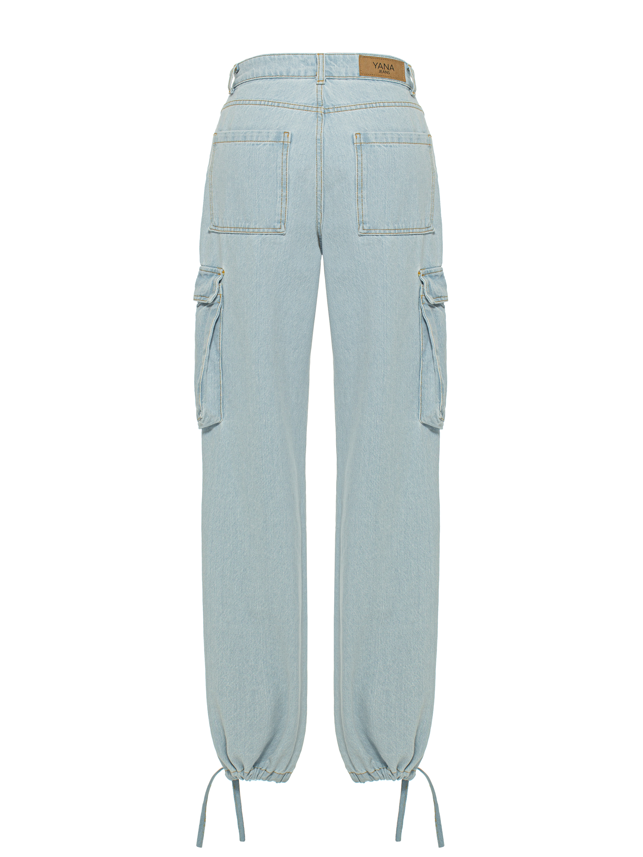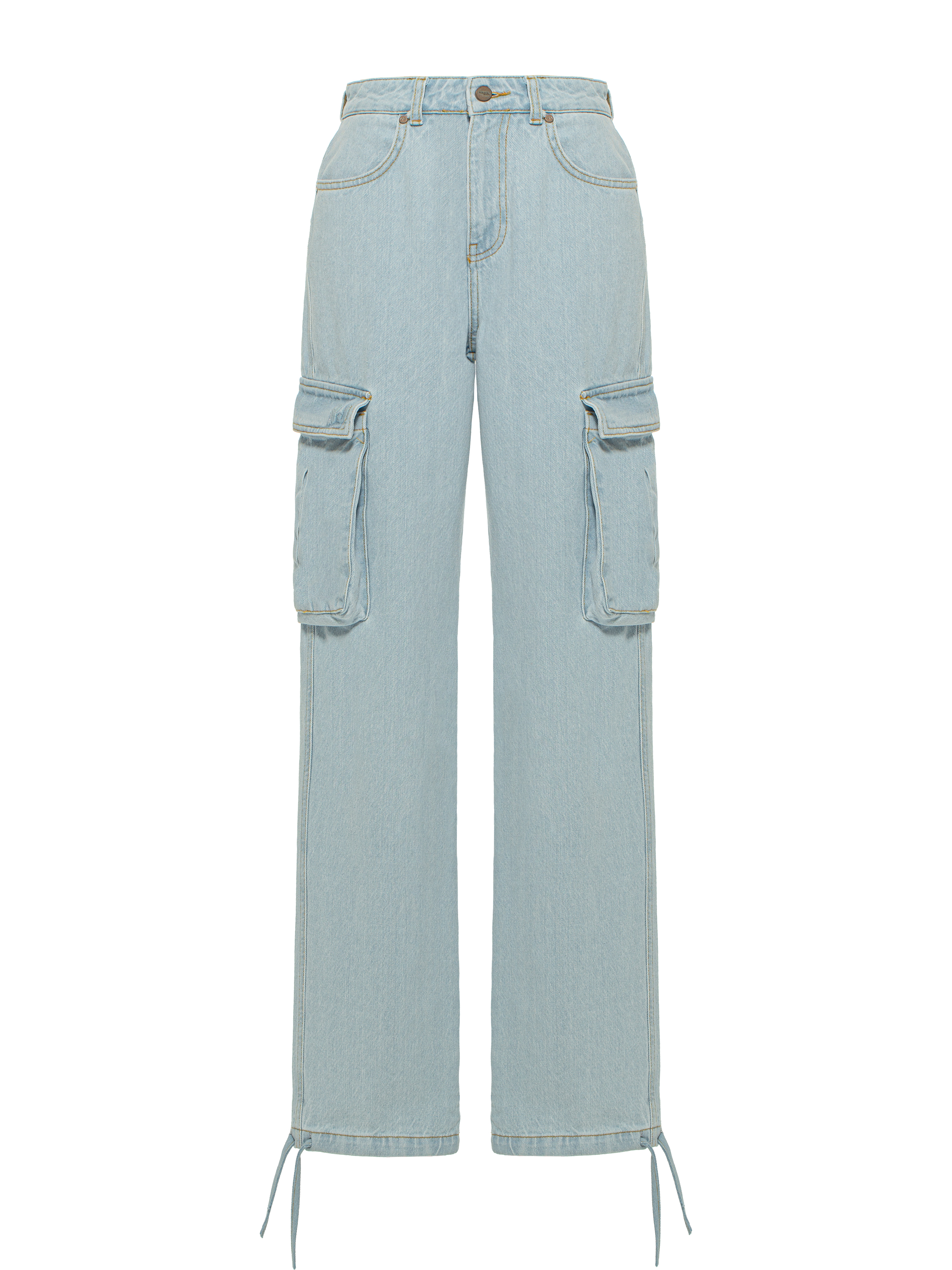 Light blue cargo jeans are made of cotton denim and complemented by two patch flap pockets. Straight fit and drawstrings at the hem.
