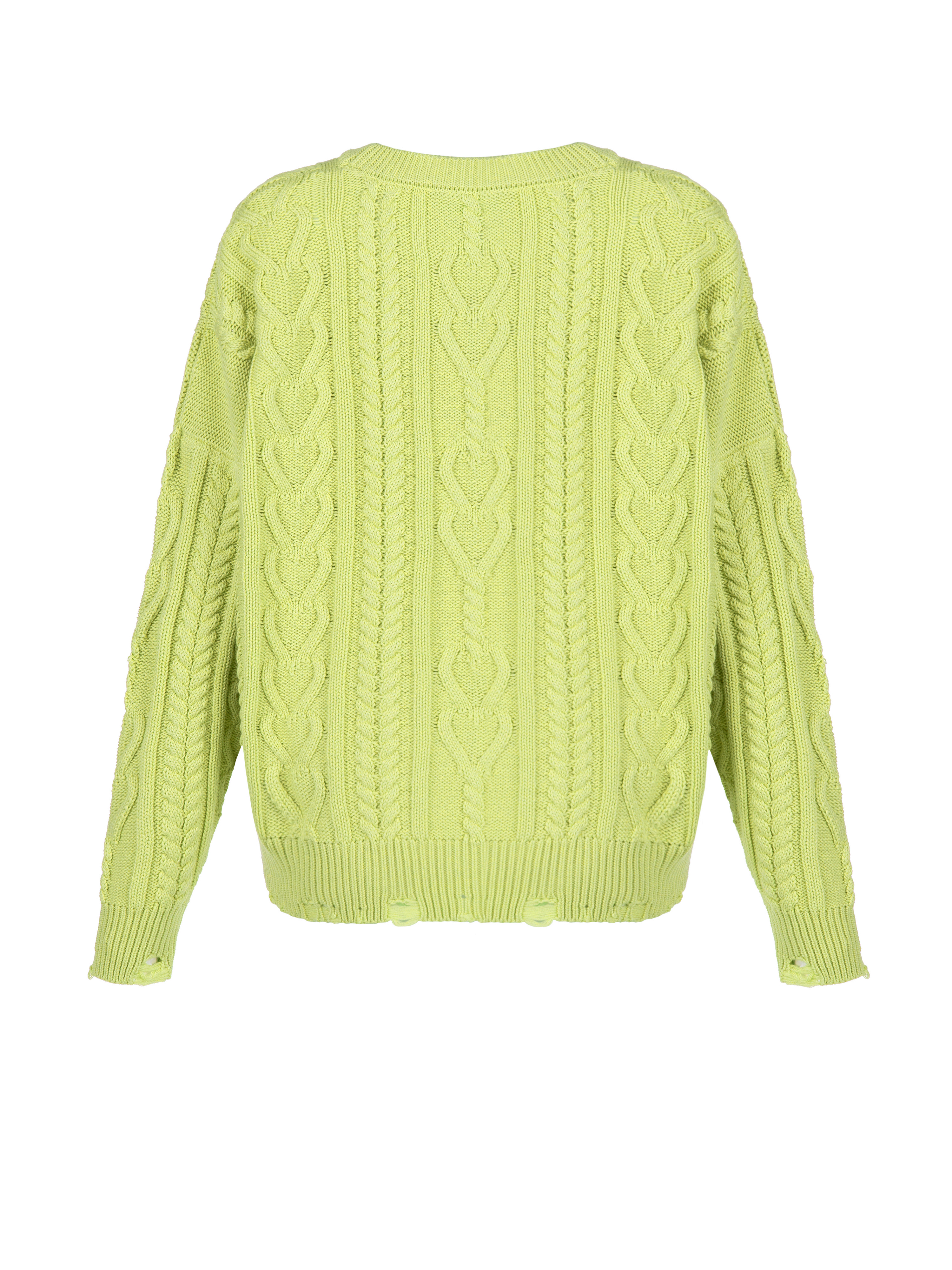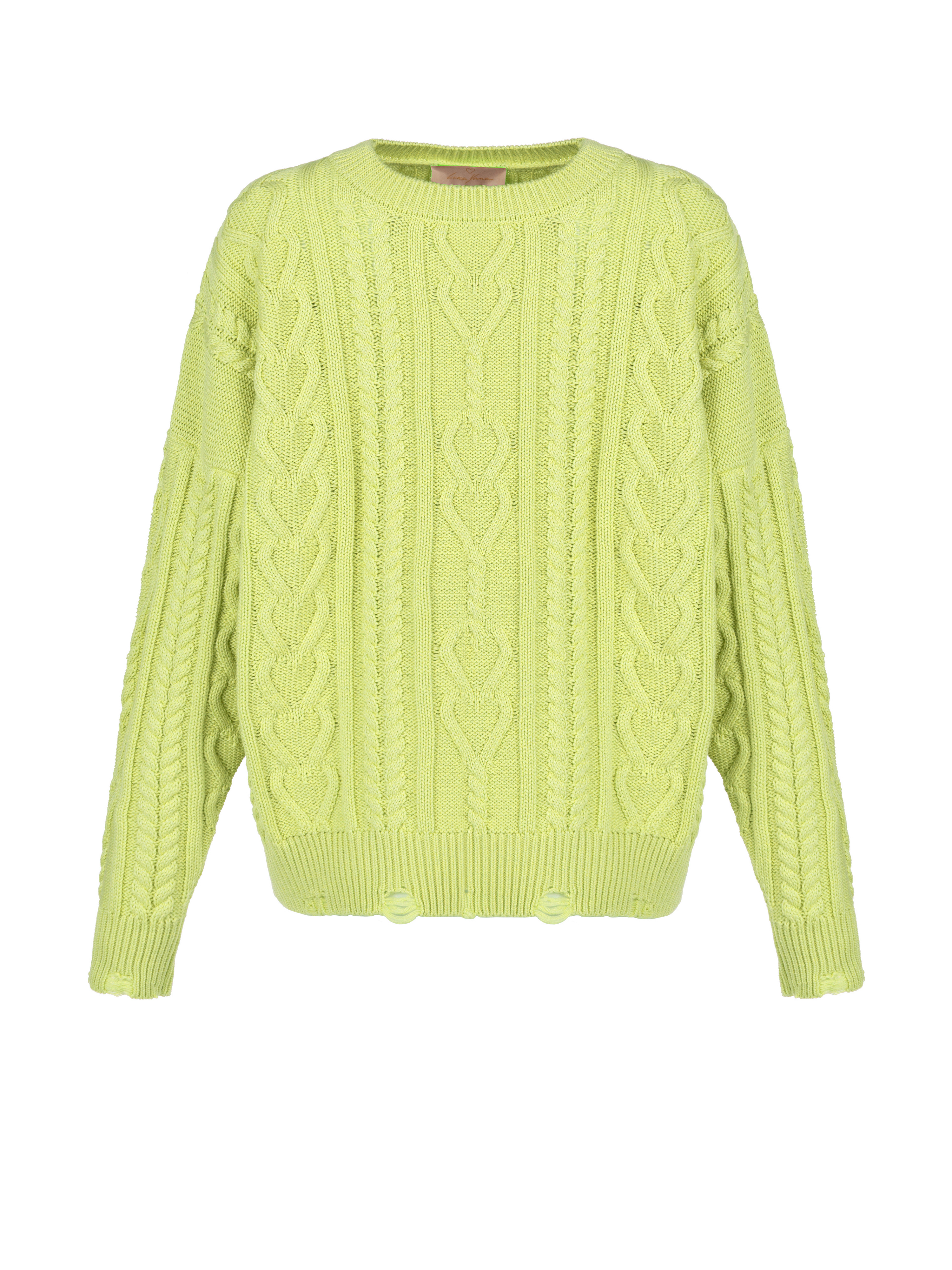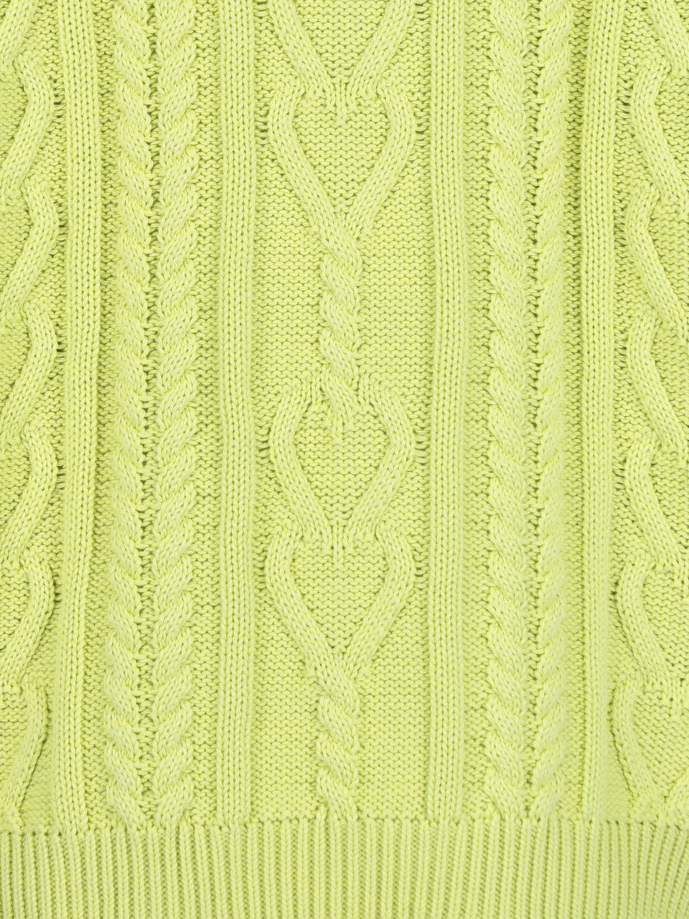 Lime Green Distressed Cable Knit Sweater