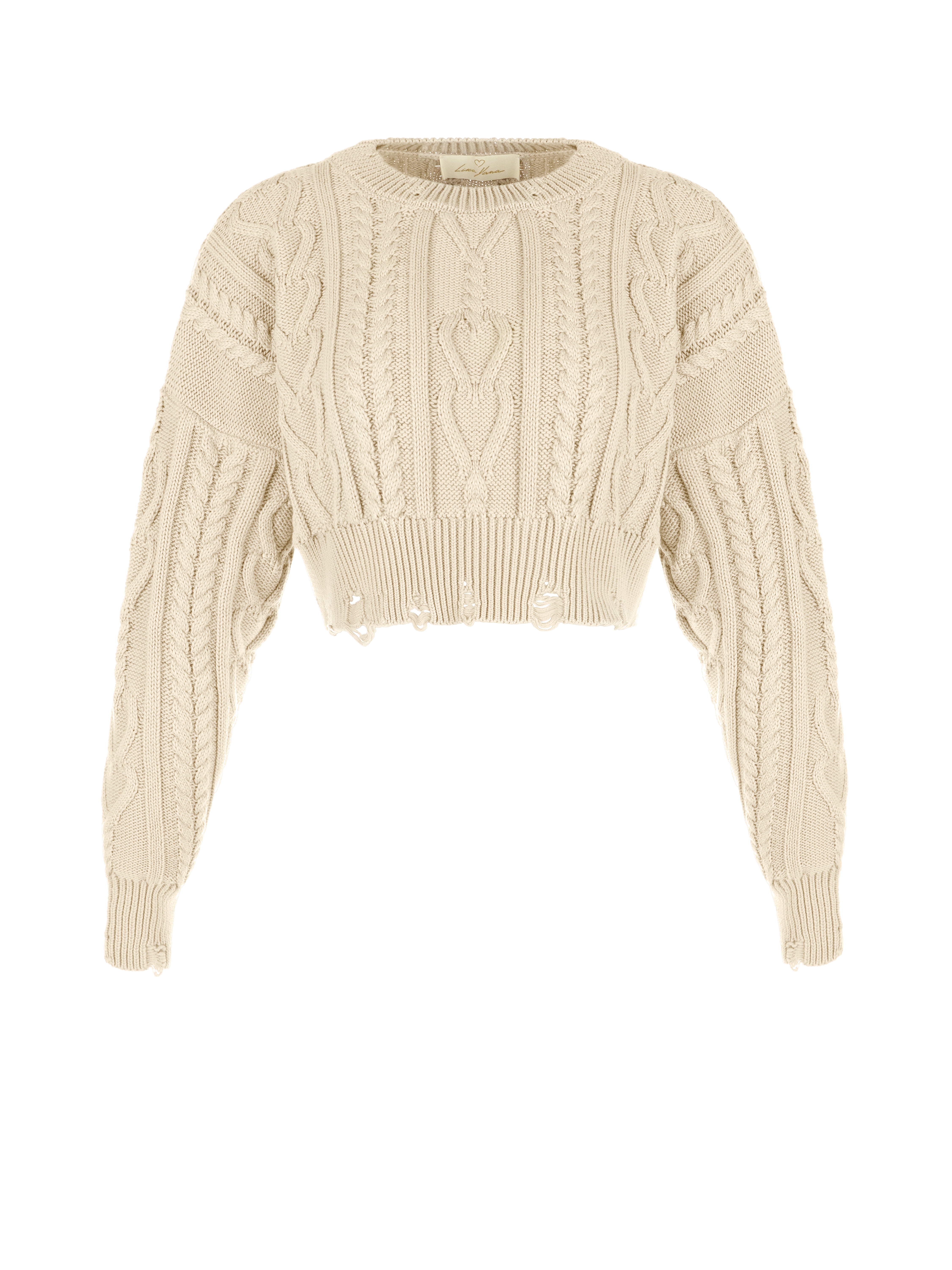 Light Beige Cotton Cropped Cable Knit Sweater