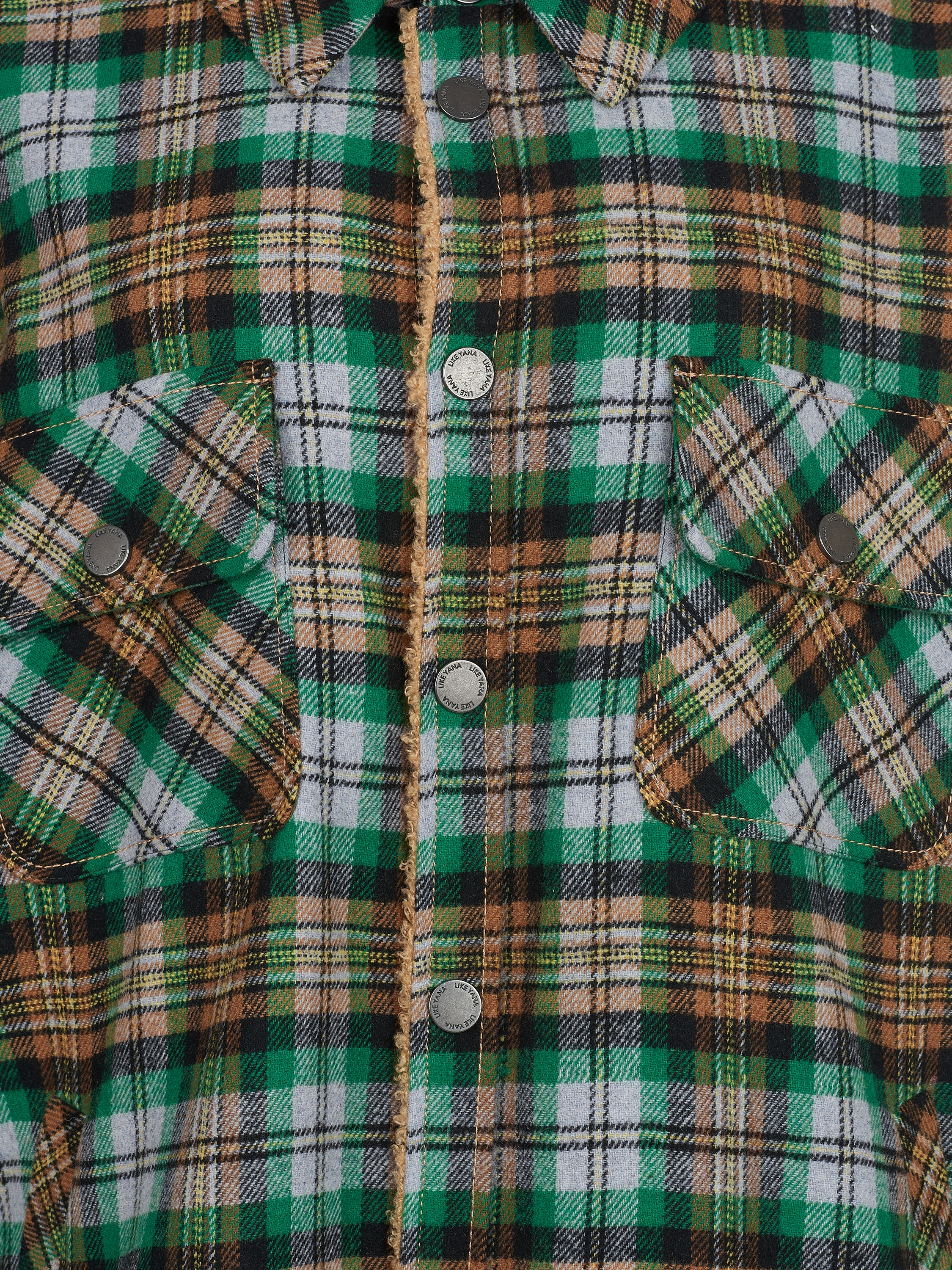 Зеленая рубашка в клетку с подкладкой из искусственного мехаСиняя рубашка в клетку с подкладкой из синего искусственного мехаТемно-коричневая рубашка в клетку с подкладкой из светлого искусственного мехаТемно-коричневая рубашка в клетку с подкладкой из синего искусственного меха