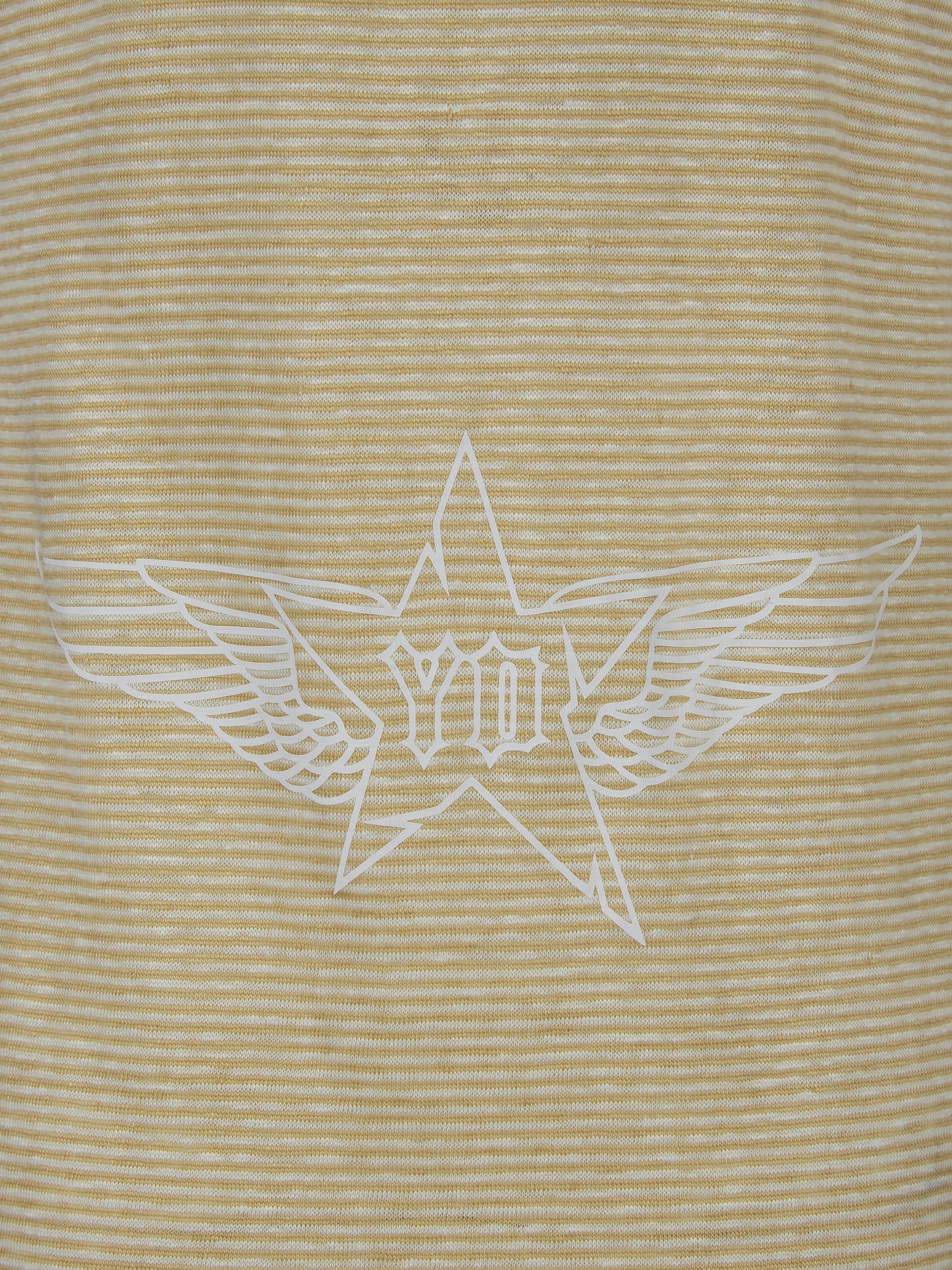 The beige sleeveless maxi dress is made of lightweight melange knitwear. The model is complemented with a round neckline and a back print depicting a winged star with the brand logo.