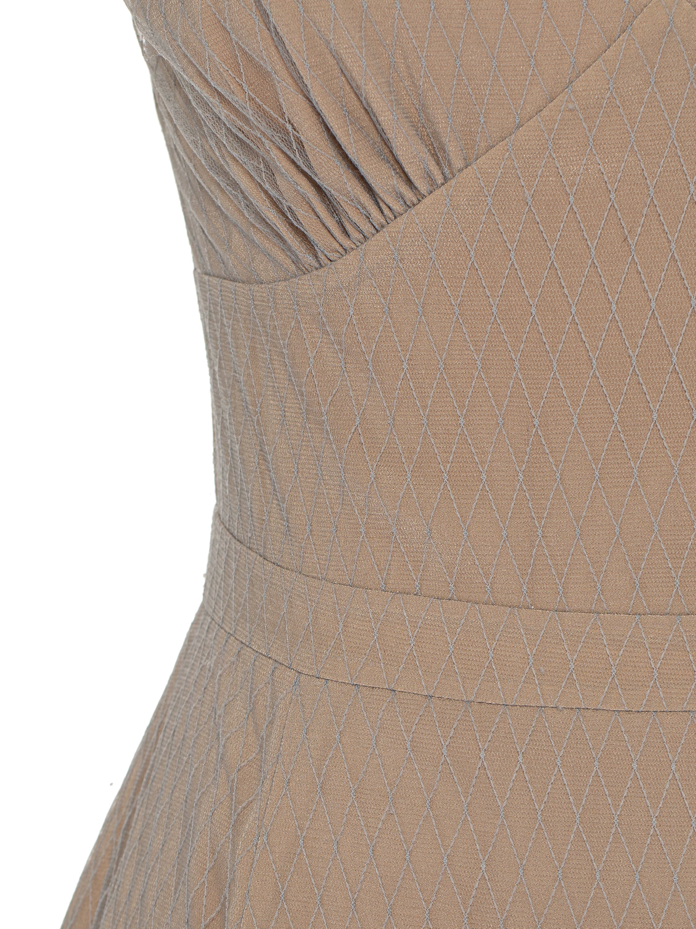 Beige Mesh & Organza Midi Dress