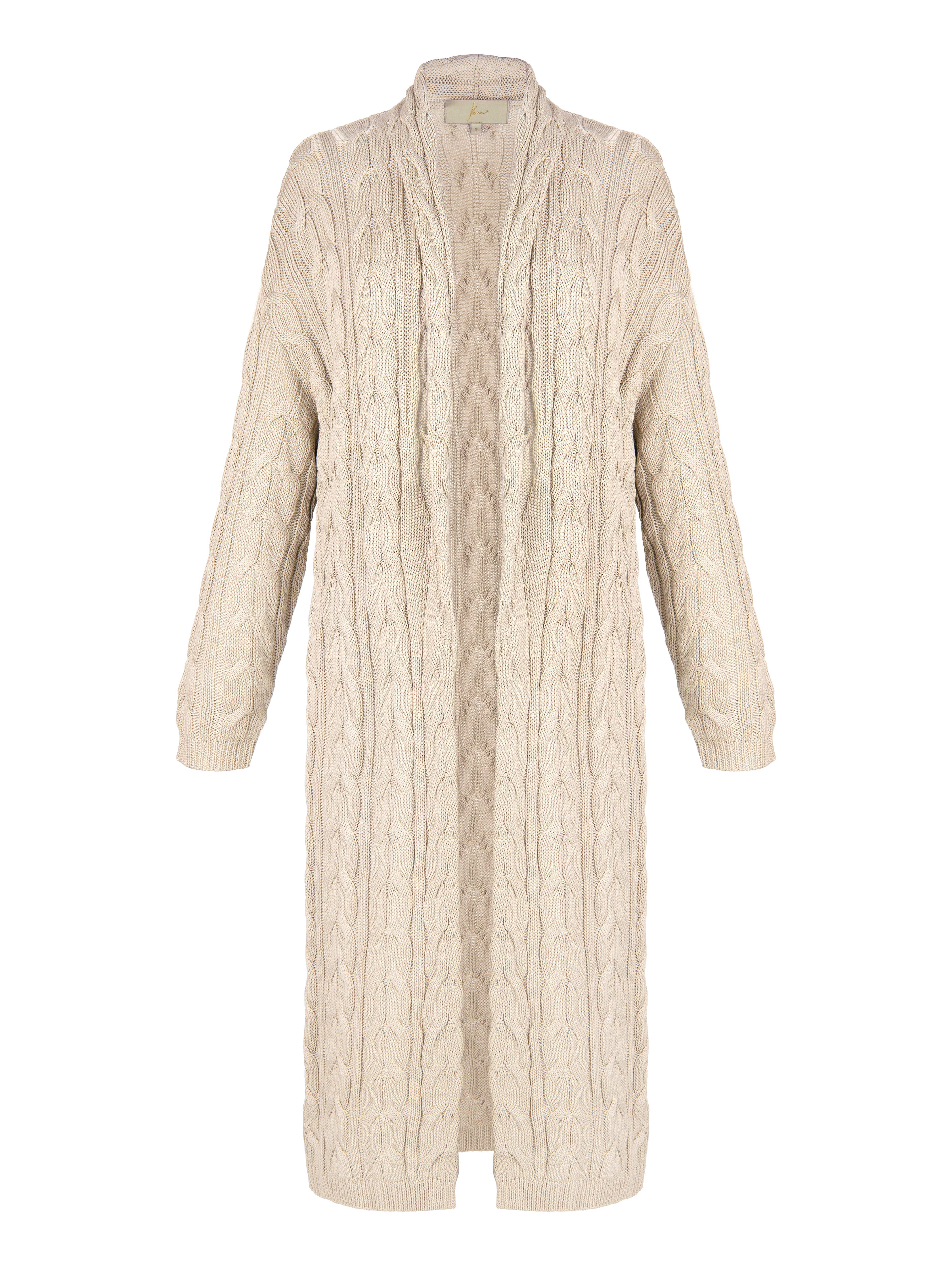 Beige Tencel & Silk Cable Knit Long Cardigan