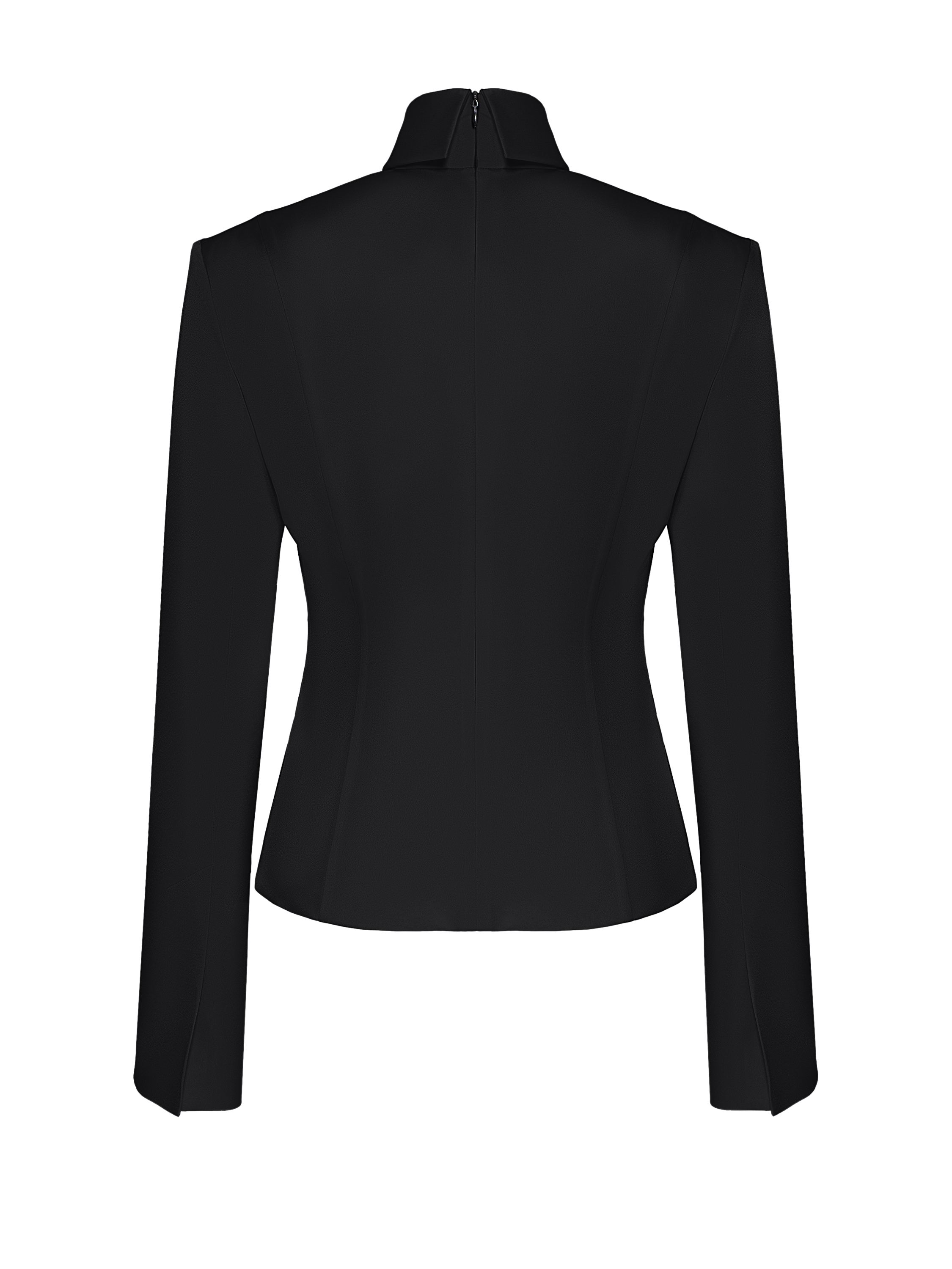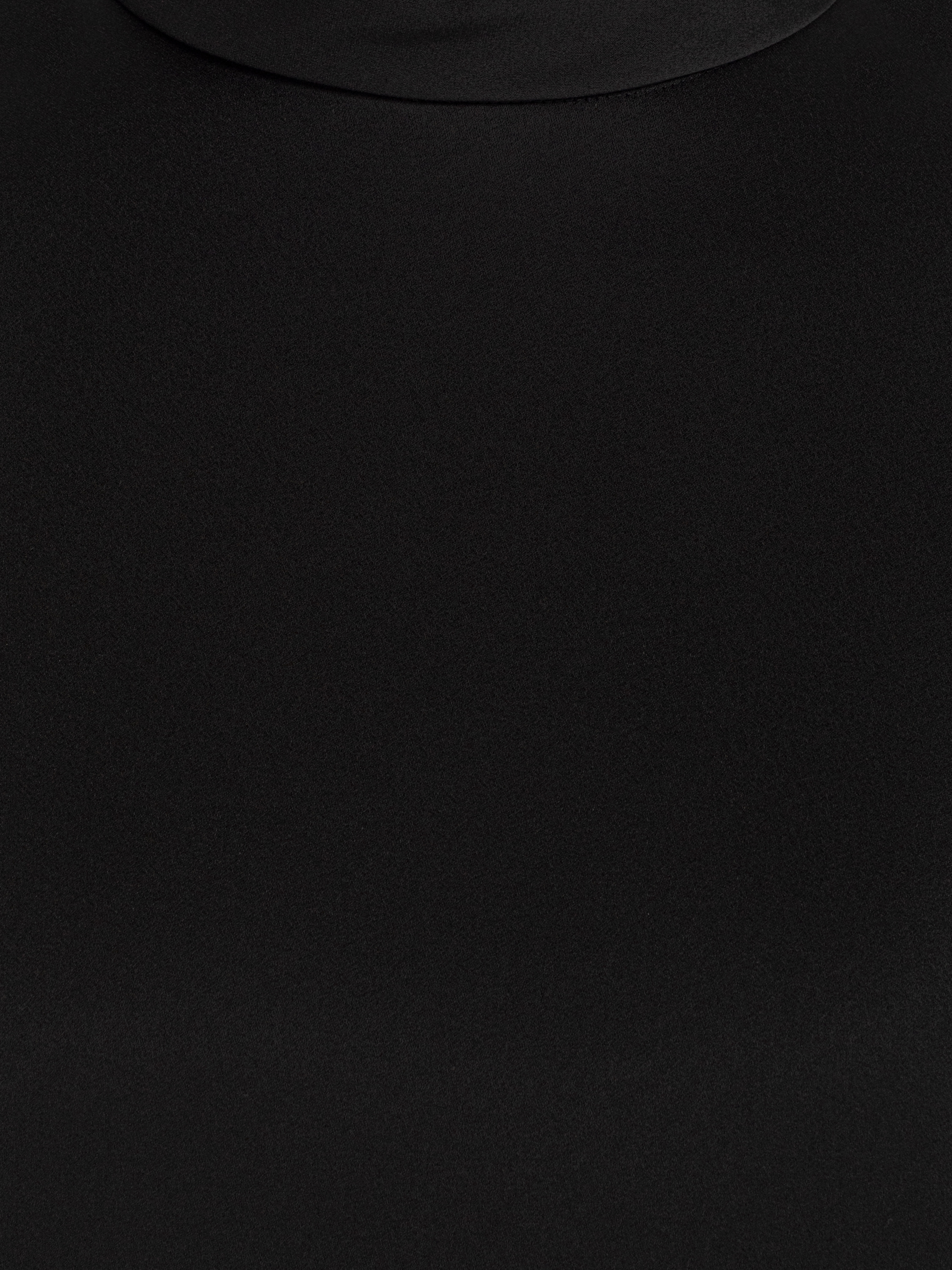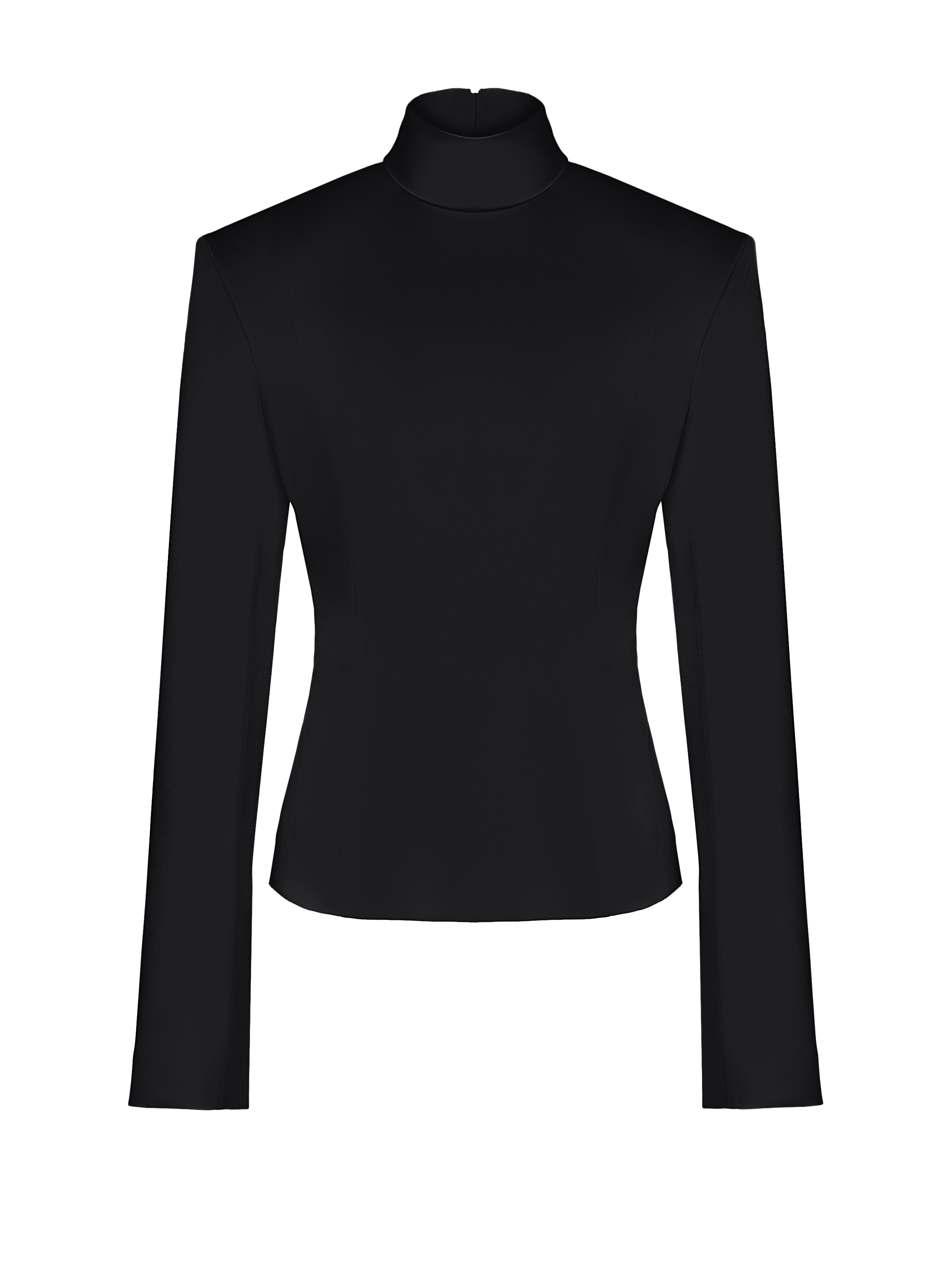 Solid black silk blouse – a minimalist and elegant piece suitable both for a strict business look and for everyday wear. Voluminous shoulders create a dramatic silhouette with an accent on the waist.