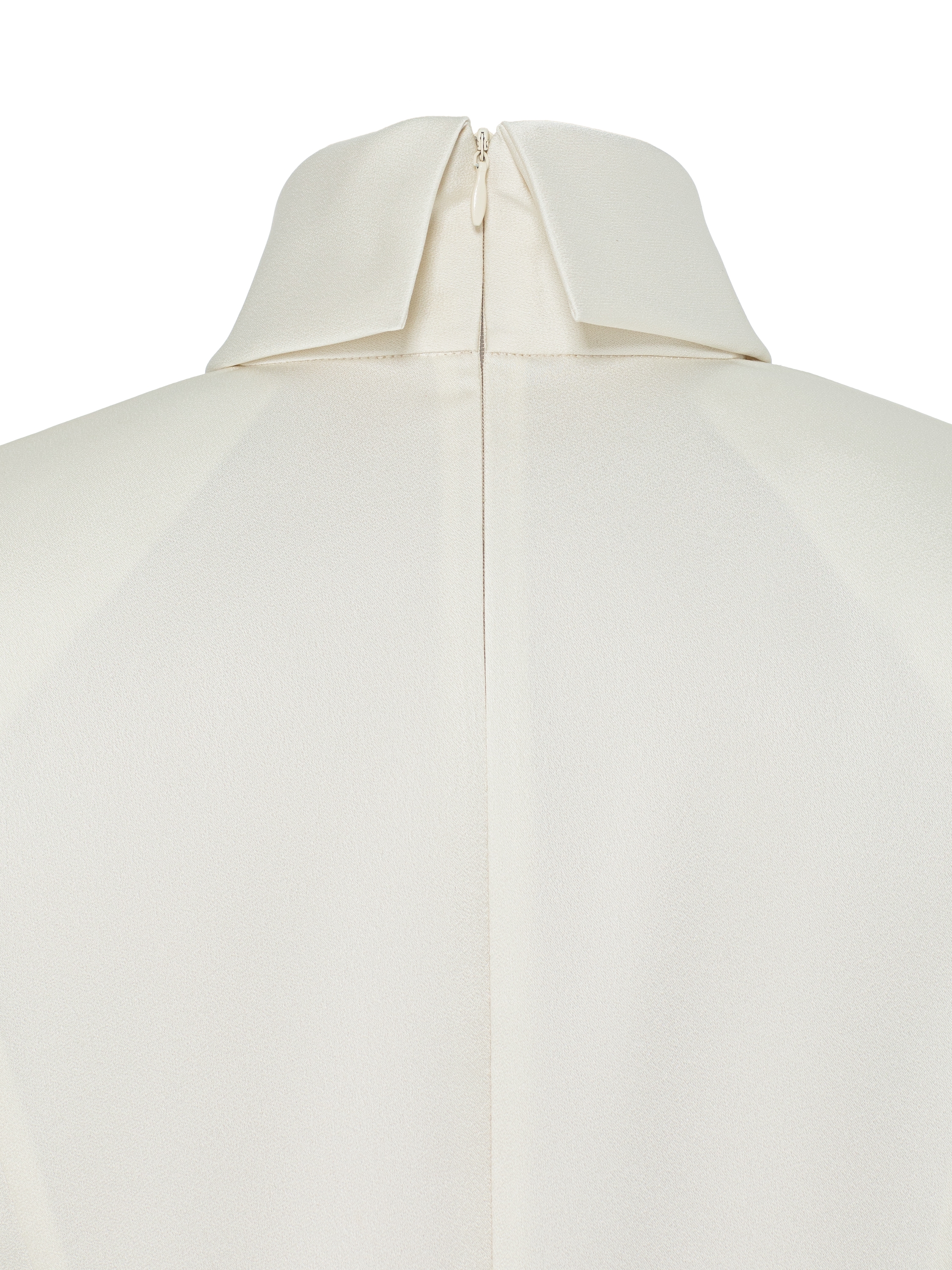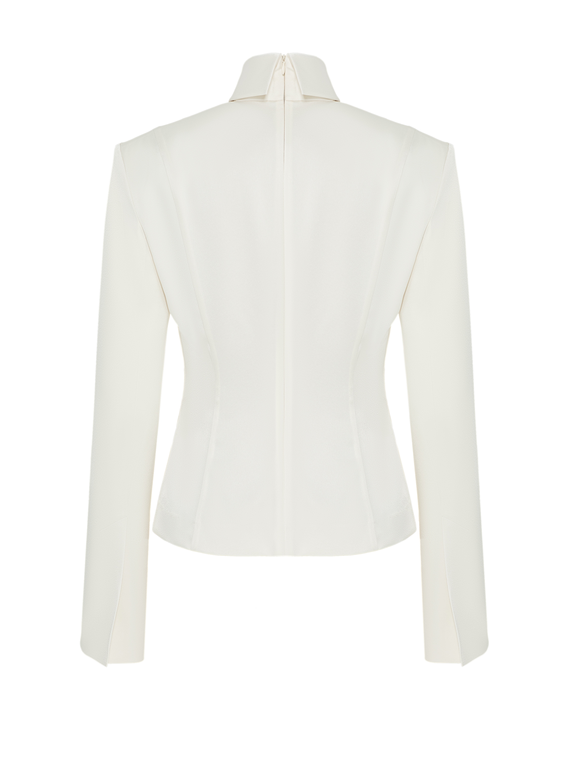 Solid ivory silk blouse – a minimalist and elegant piece suitable both for a strict business look and for everyday wear. Voluminous shoulders create a dramatic silhouette with an accent on the waist.