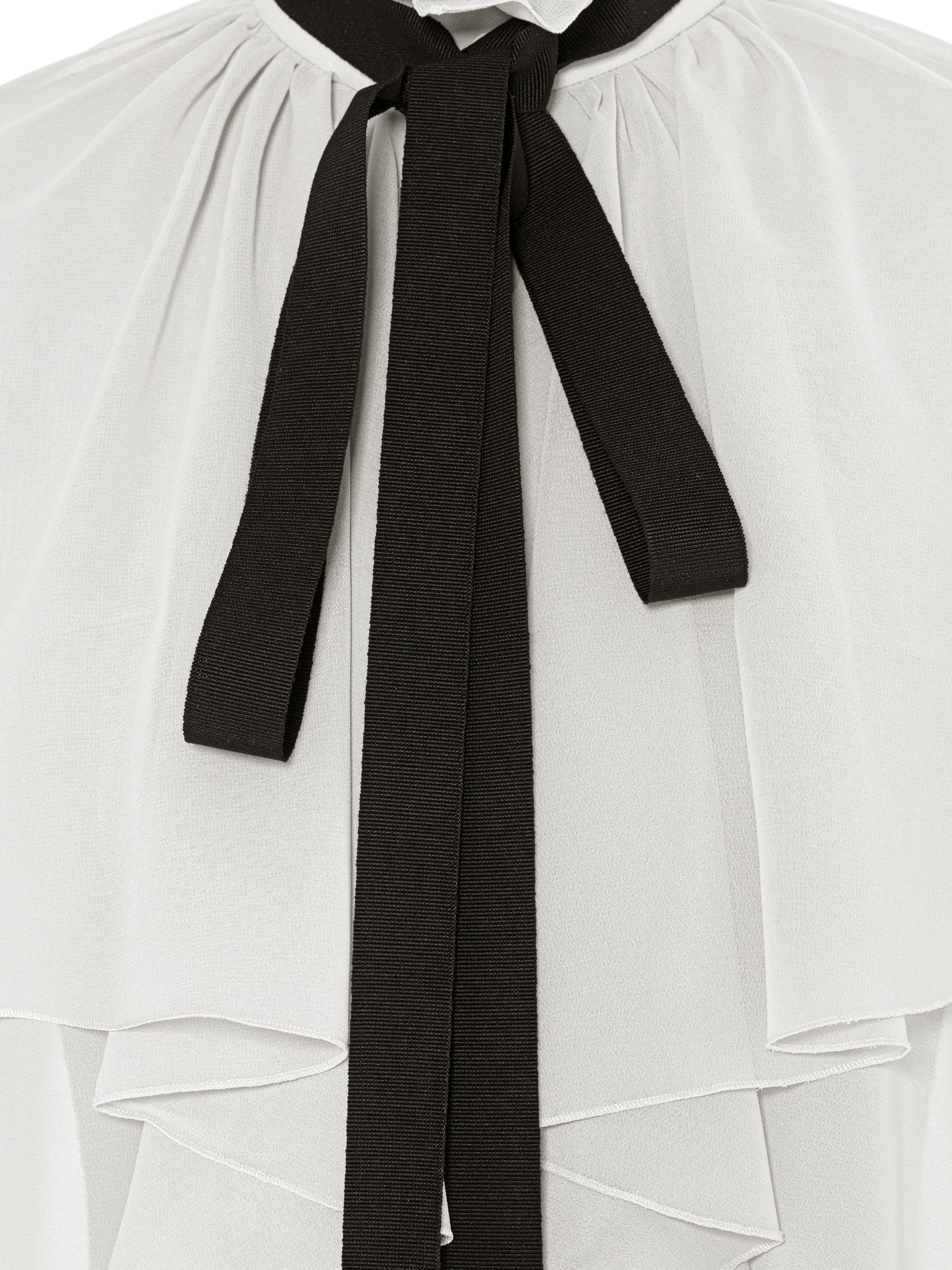 Milk-colored chiffon blouse with ruffles and ribbon
