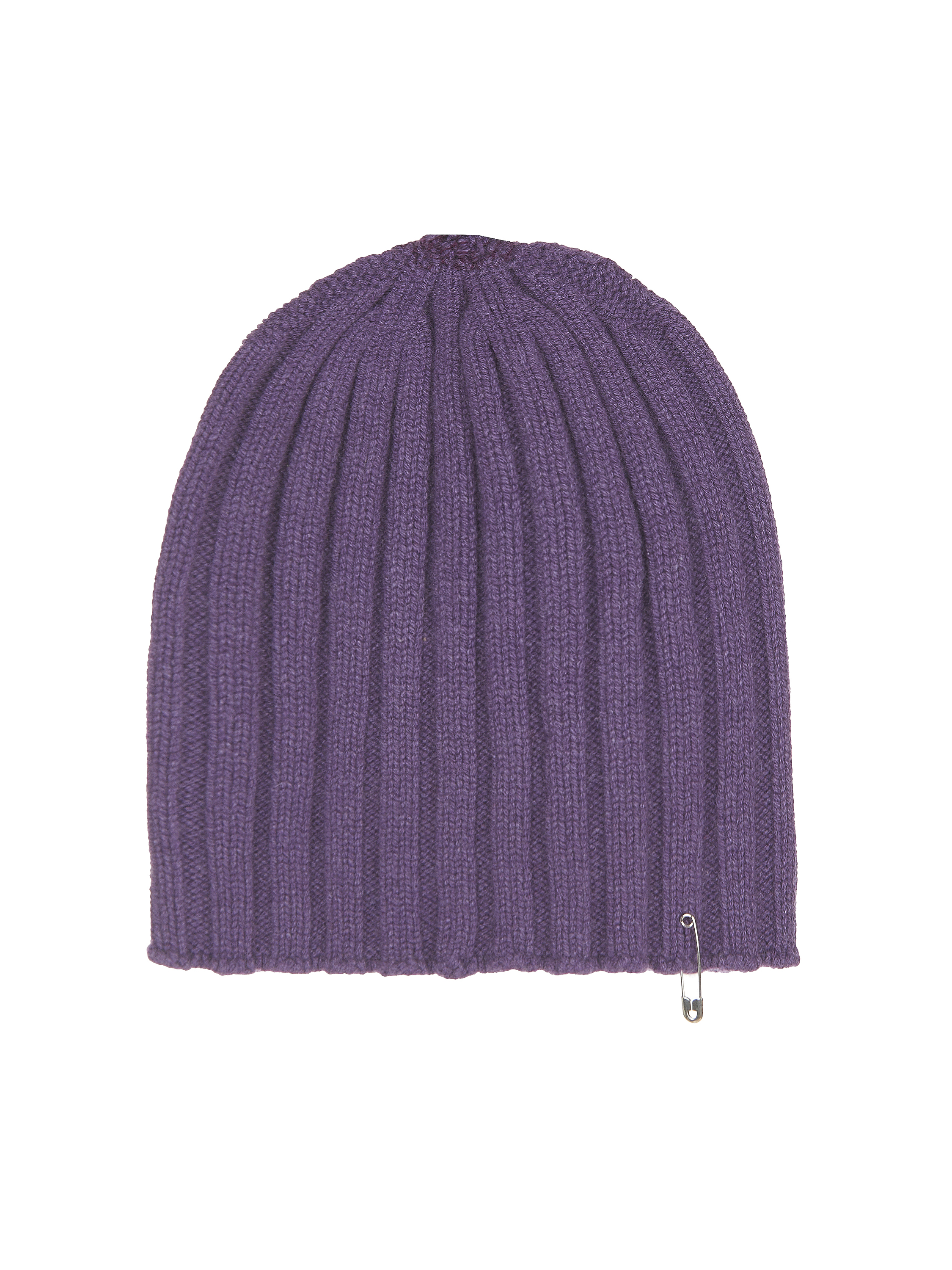 Purple ribbed cashmere beanie with a pin made of 925 sterling silver.