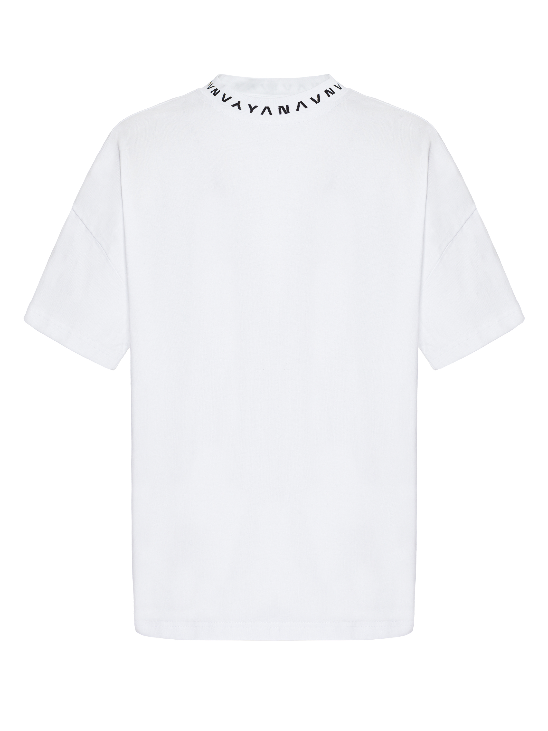 Basic loose-fit white T-shirt. The crew neckline is complemented by a minimalist black YANA print. The laconic model is made of breathable cotton fabric. The material is lightweight and pleasant to the skin, and the T-shirt will be comfortable even in hot weather.