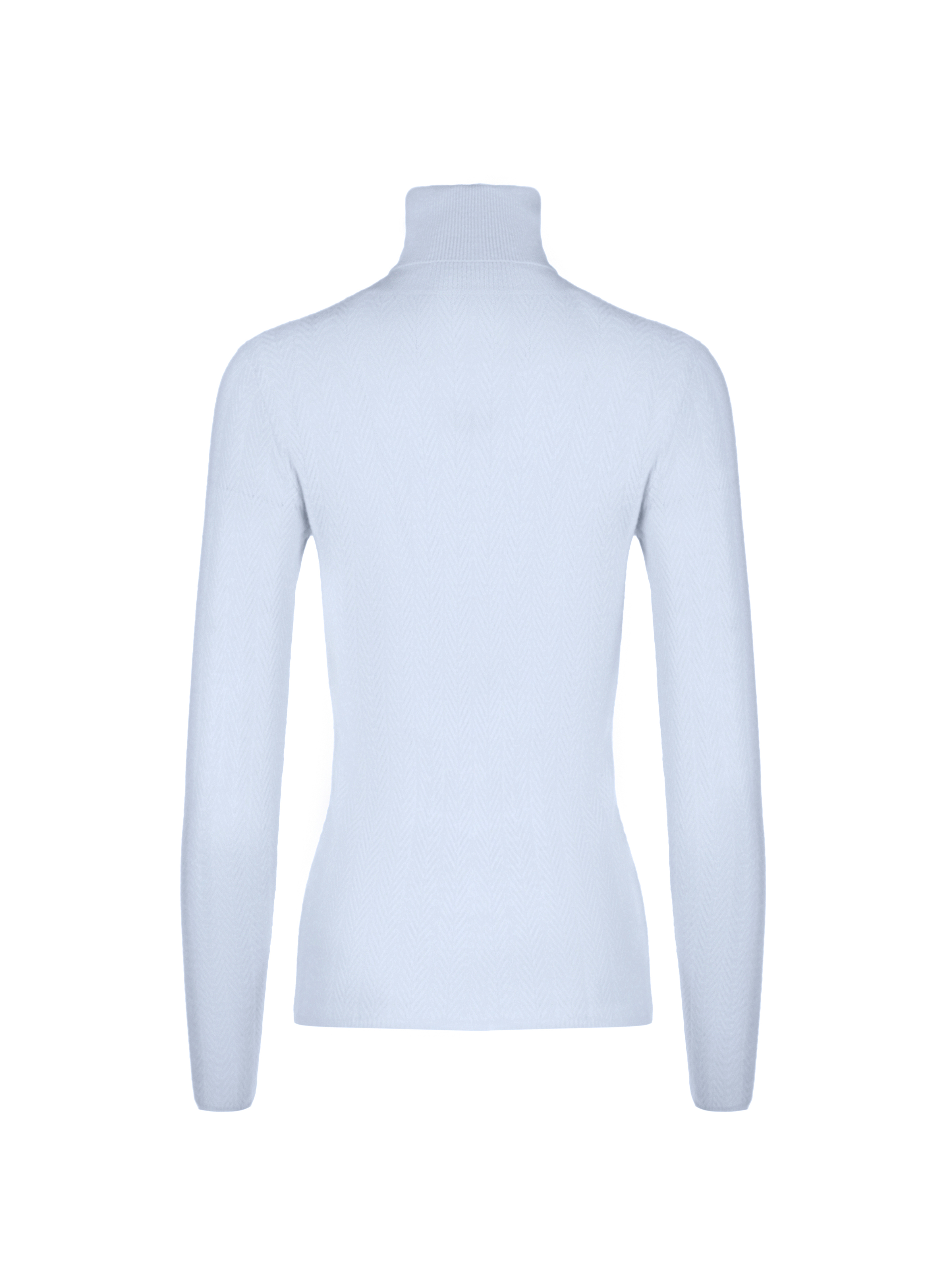 Thanks to the natural herringbone cashmere and the laconic silhouette, the light blue turtleneck will be a successful investment in a basic wardrobe and will give warmth on cold days.