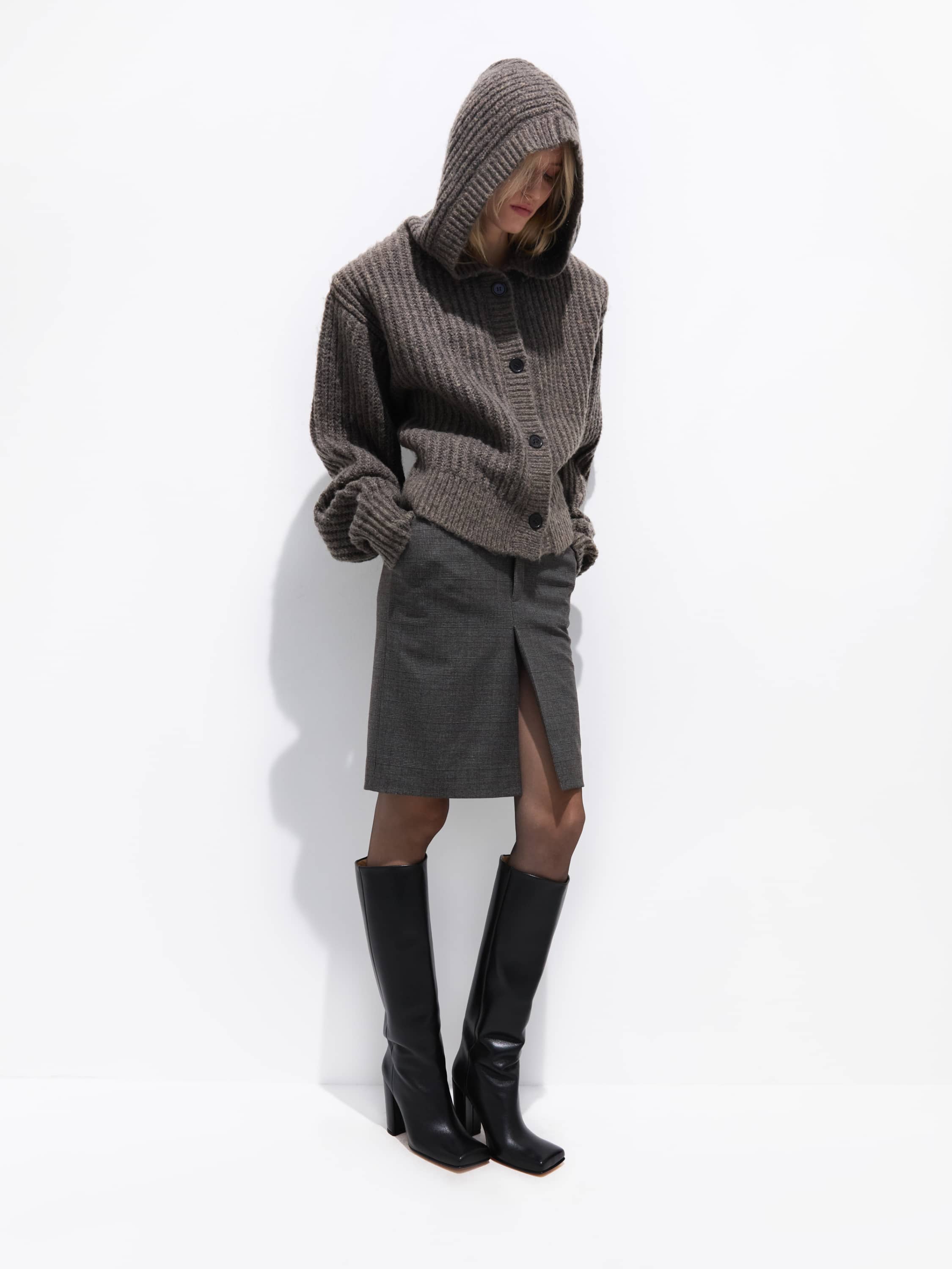 Grey hooded cardigan