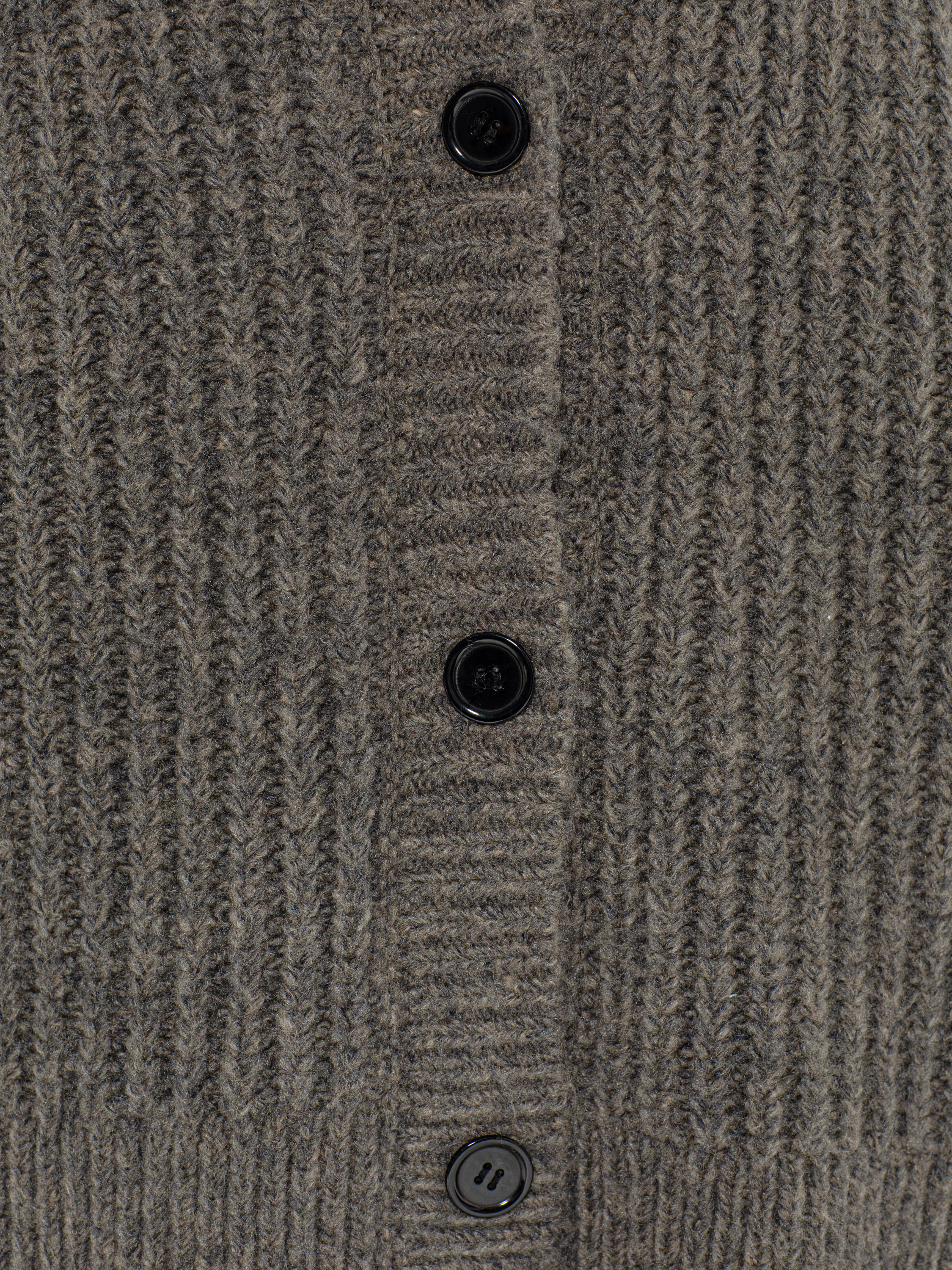 The grey knitted hooded cardigan is complemented with a button placket. An ideal choice for casual looks in cool weather.