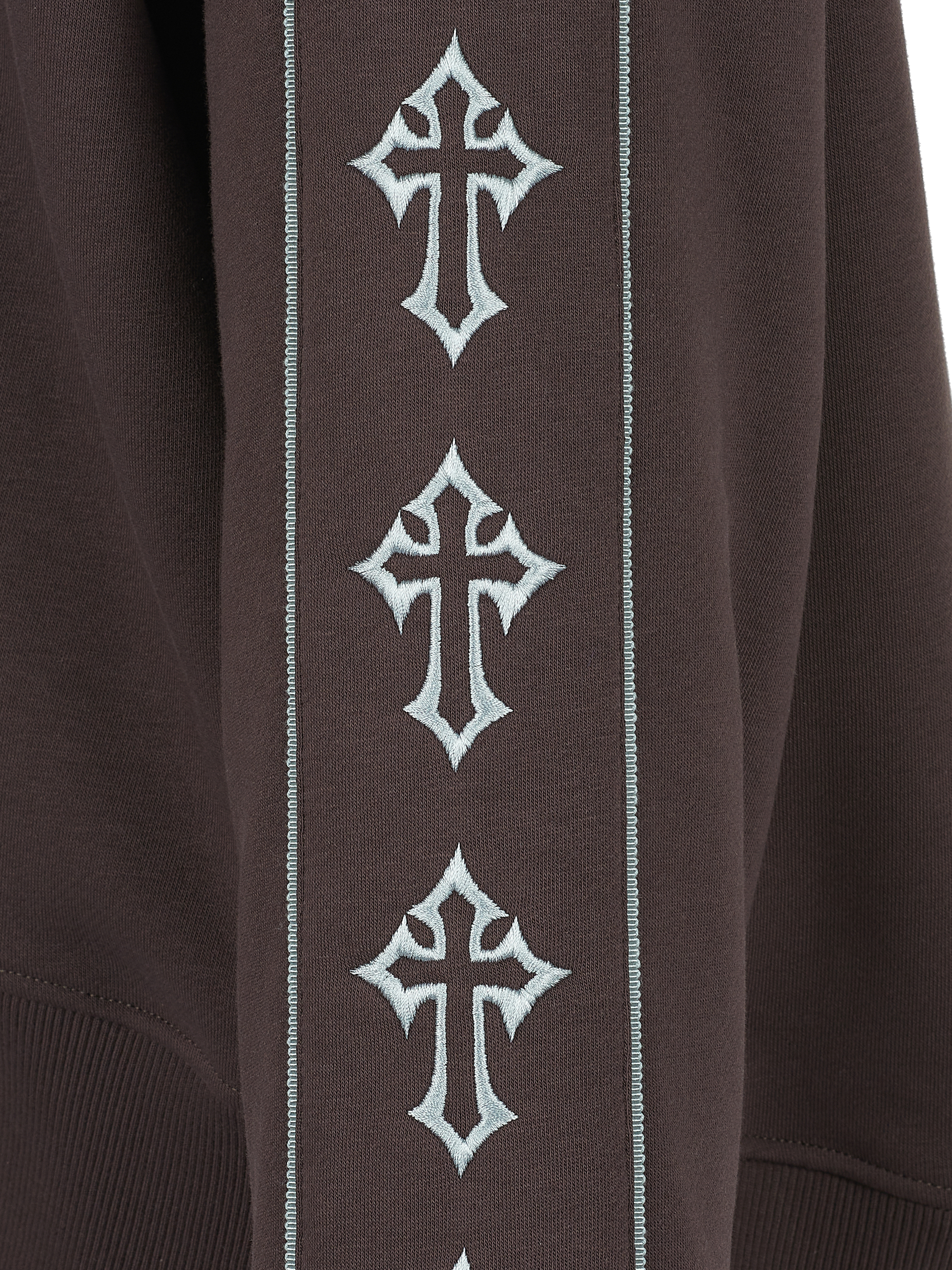 Brown Jersey Set With Cross Embroidery