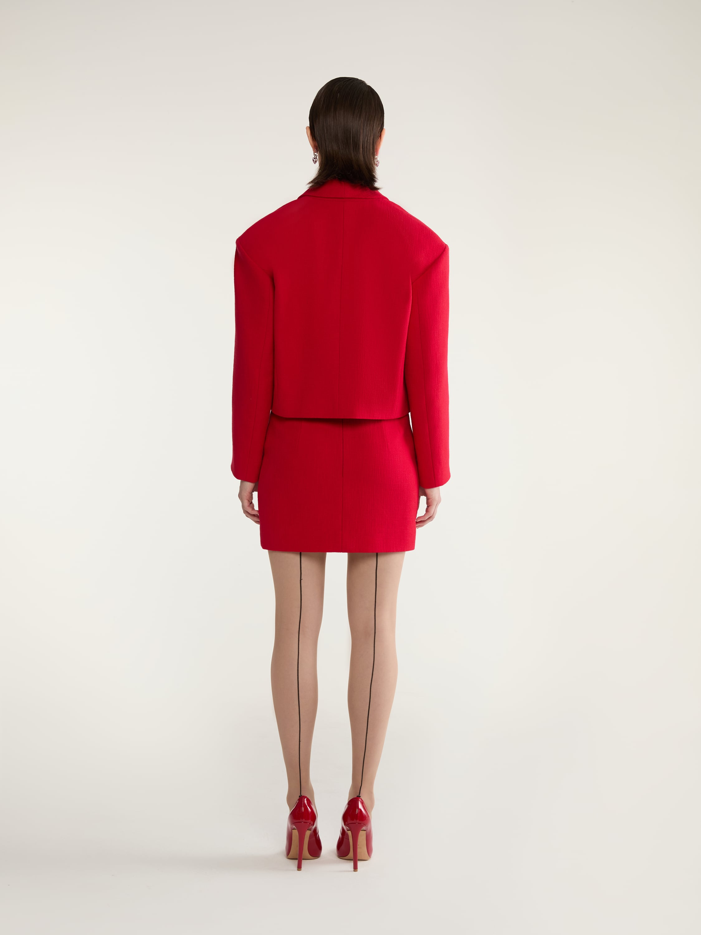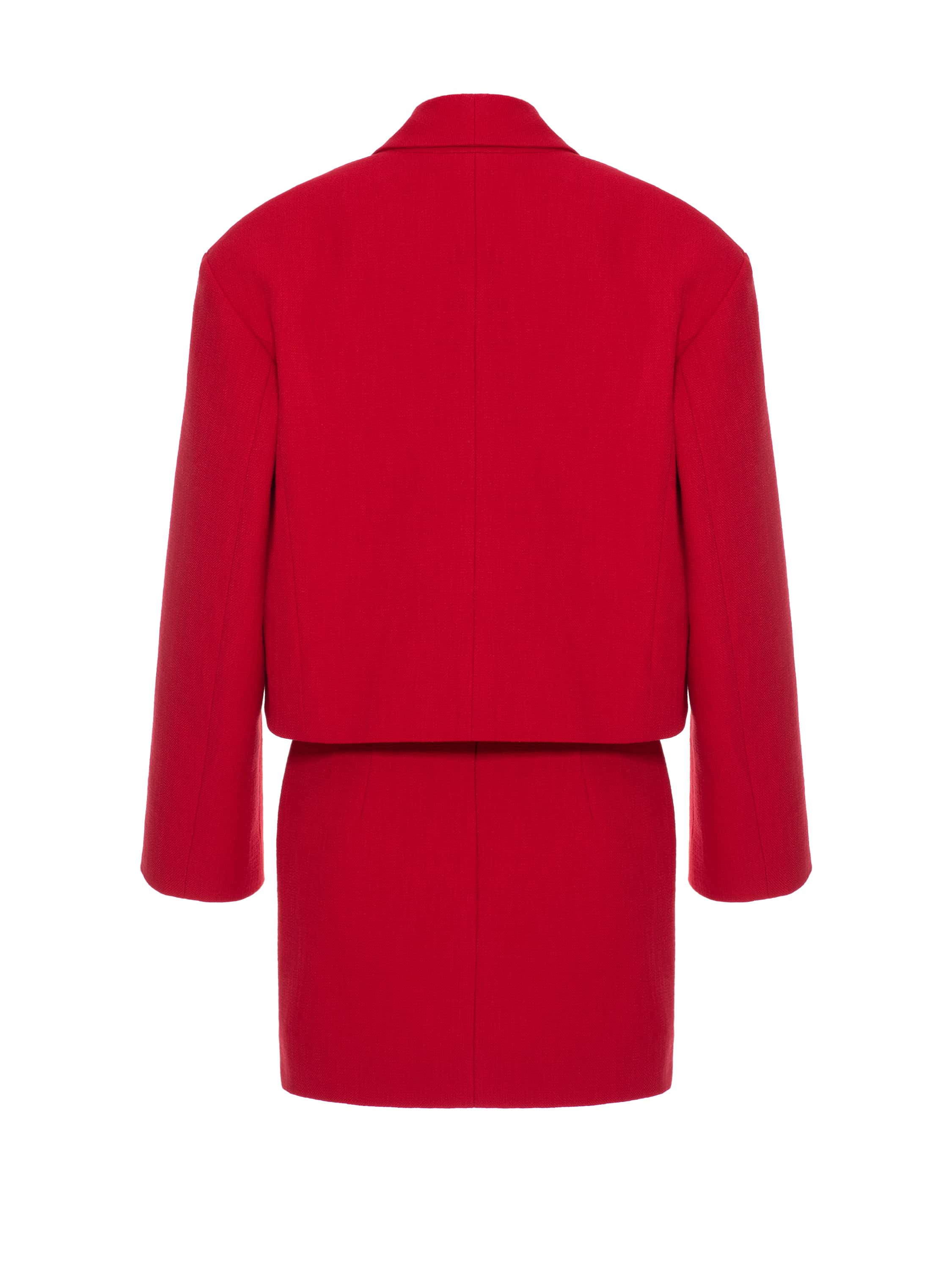 Red Two-piece Suit With Jacket And Mini Skirt