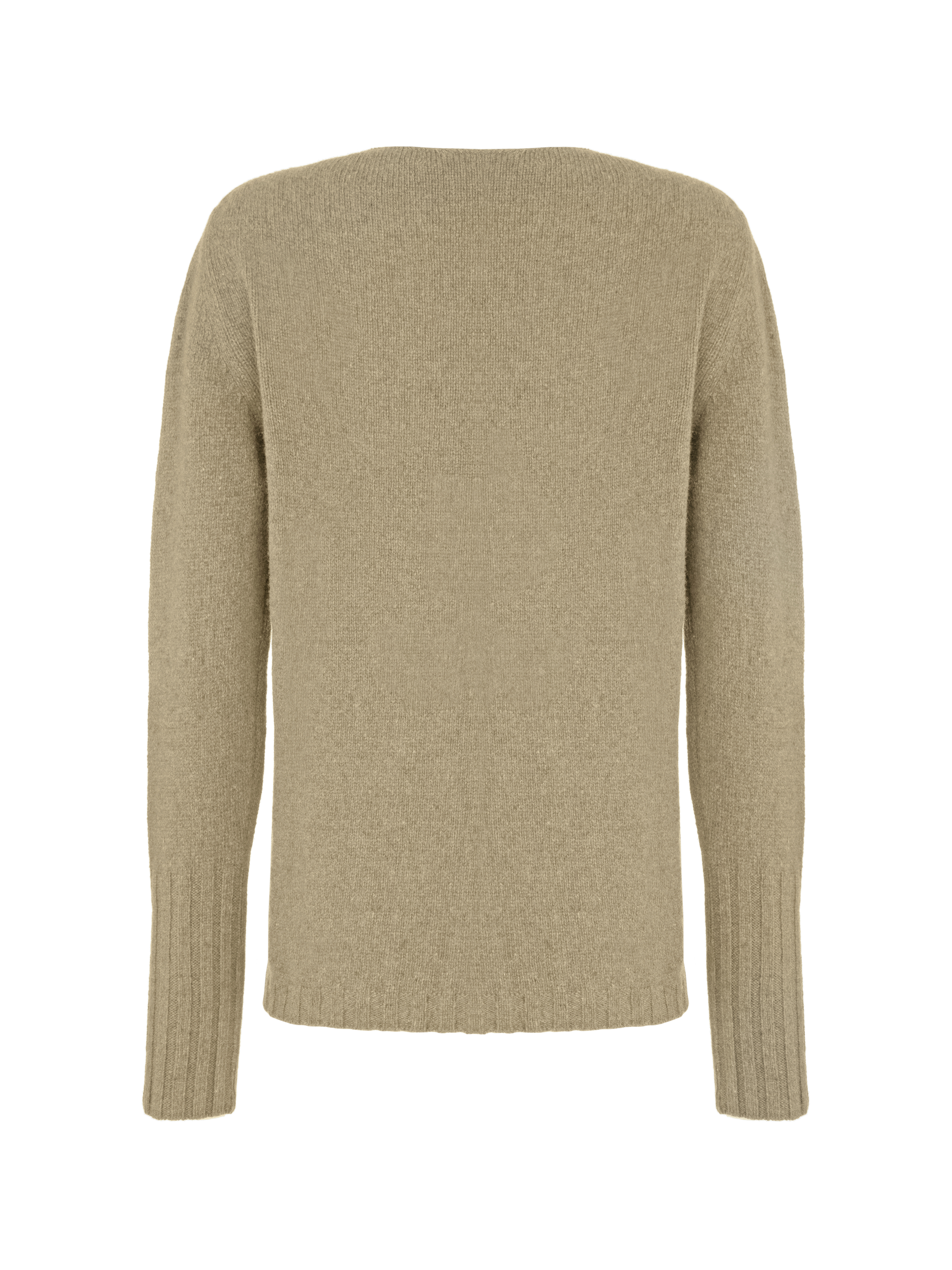 This pullover made of natural cashmere is incredibly comfortable and warm. The model comes in olive color. Relaxed fit and bateau neckline.