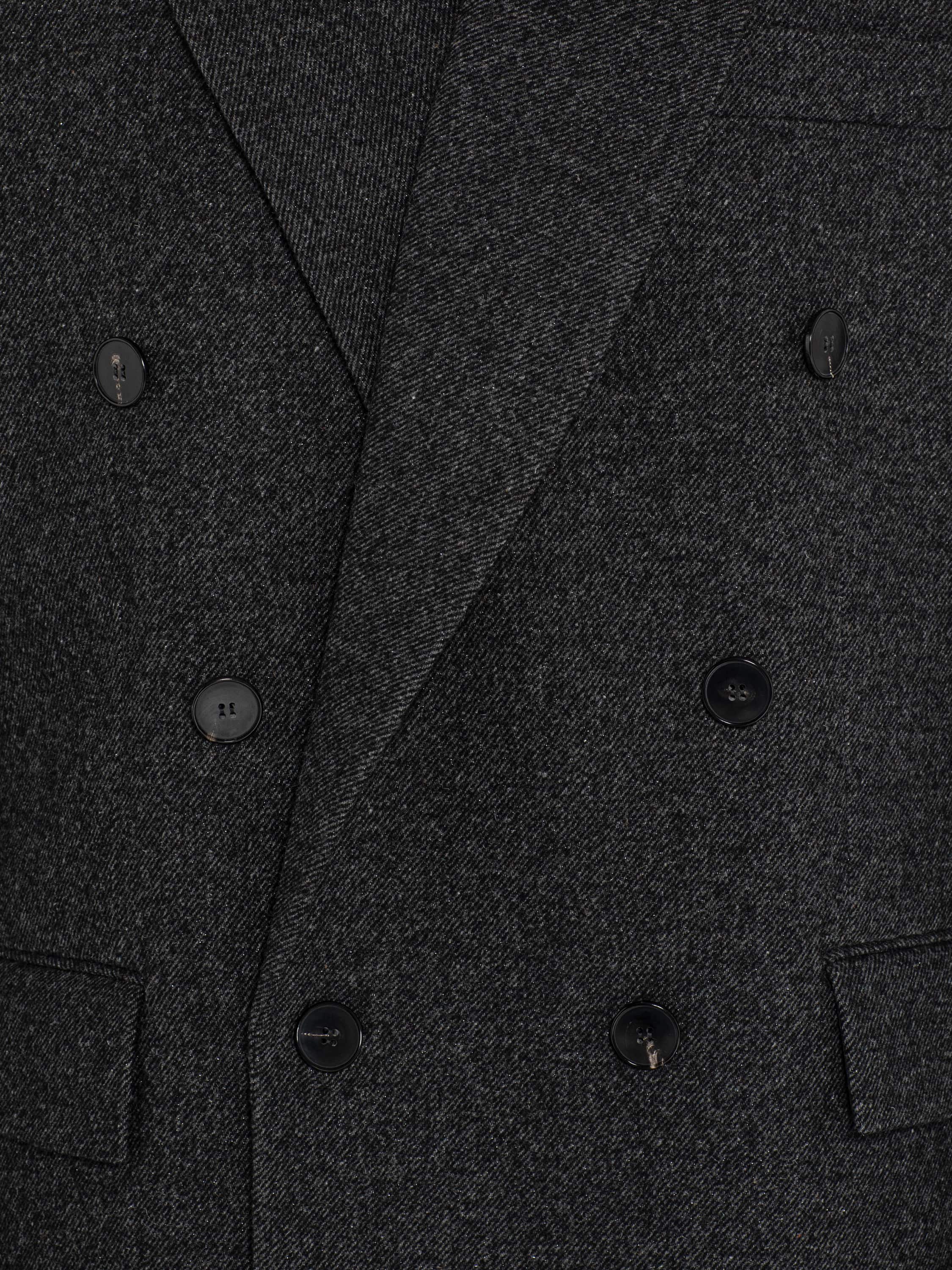 An elegant double-breasted coat is made of premium gray wool fabric with a pronounced texture. Cuffs made of sable fur give the piece special value. The noble gray shade makes the coat a versatile option for any look.