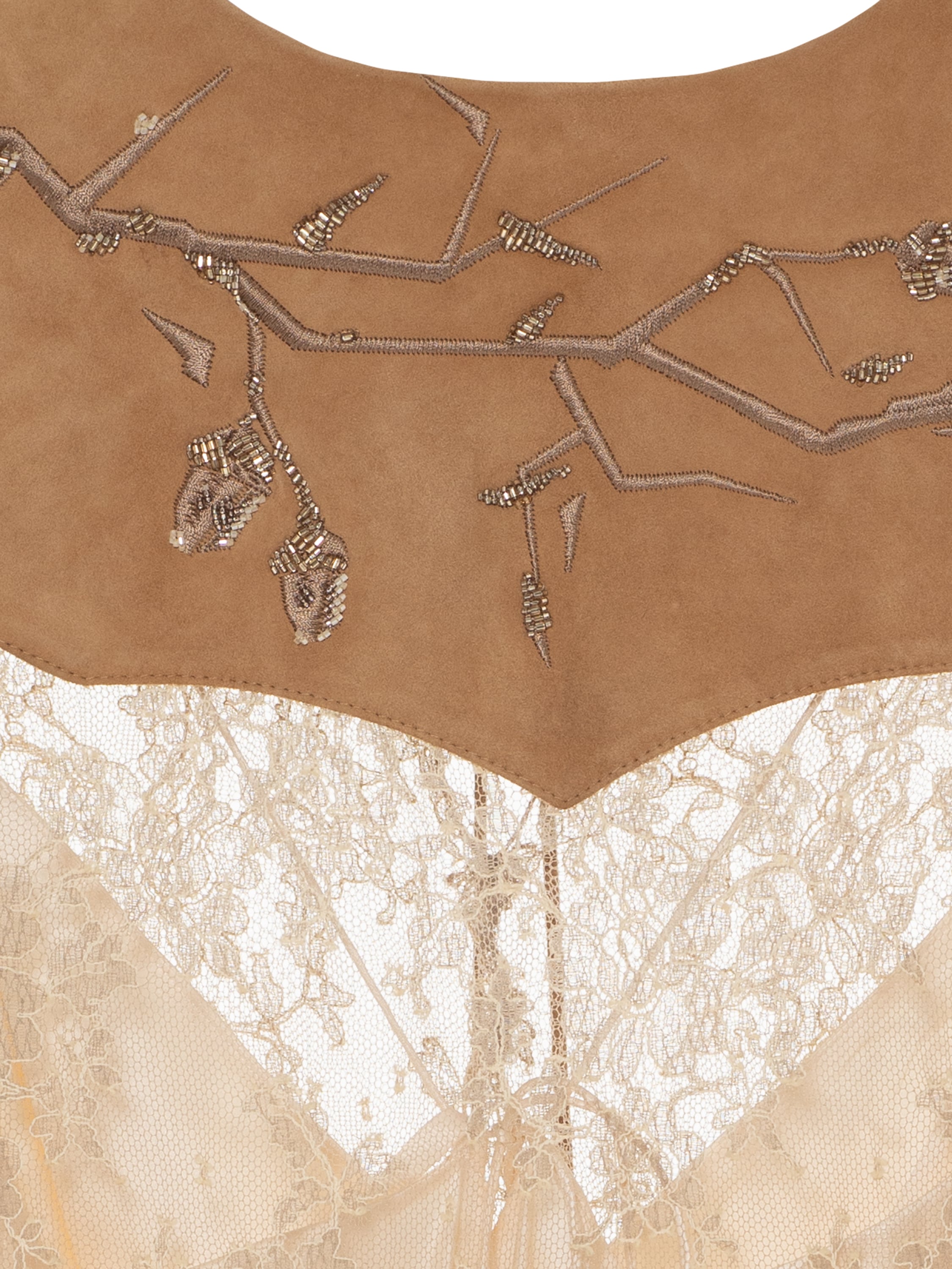Beige Lace And Suede Midi Dress