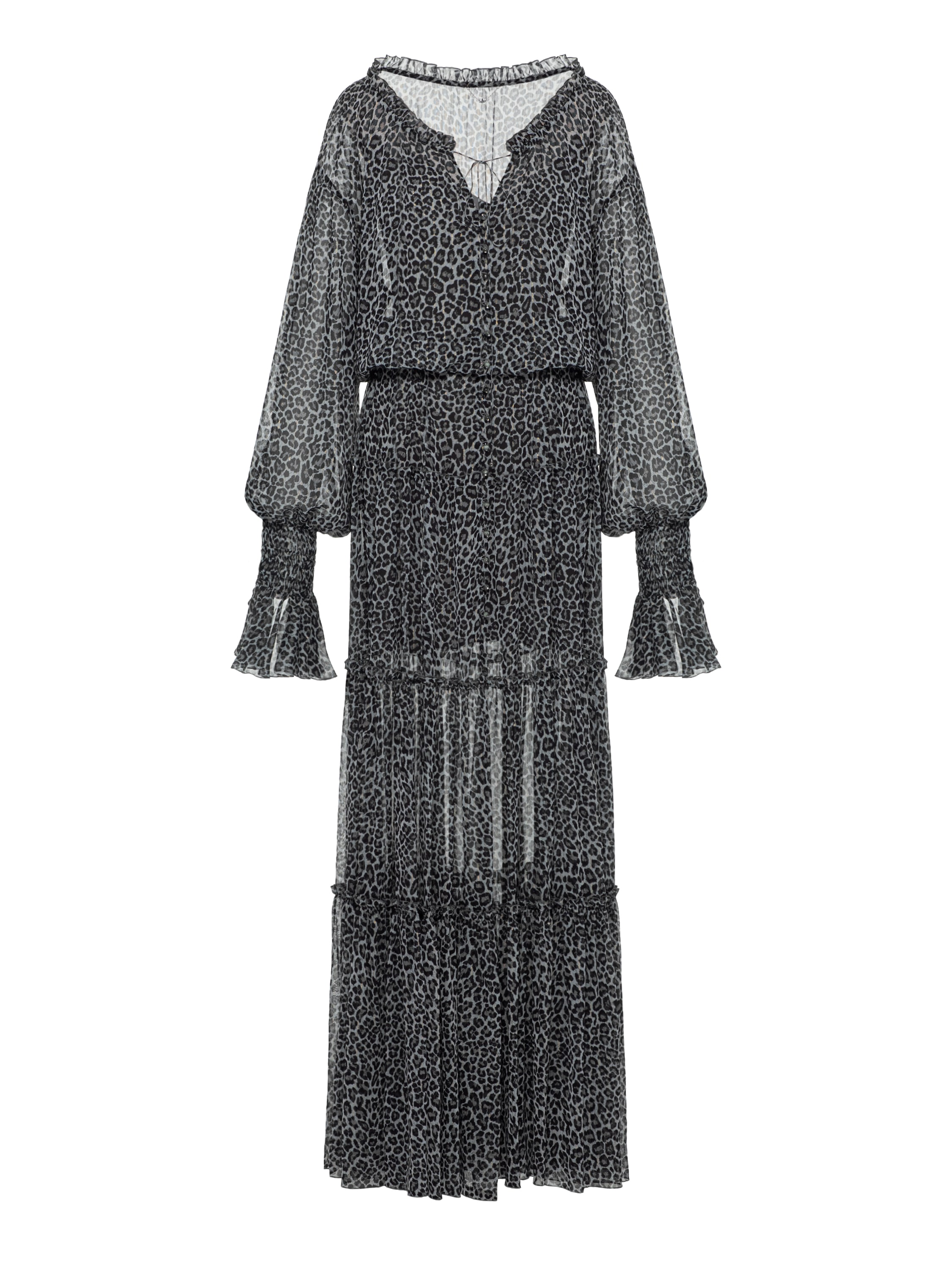 Grey Leopard Chiffon Maxi Dress