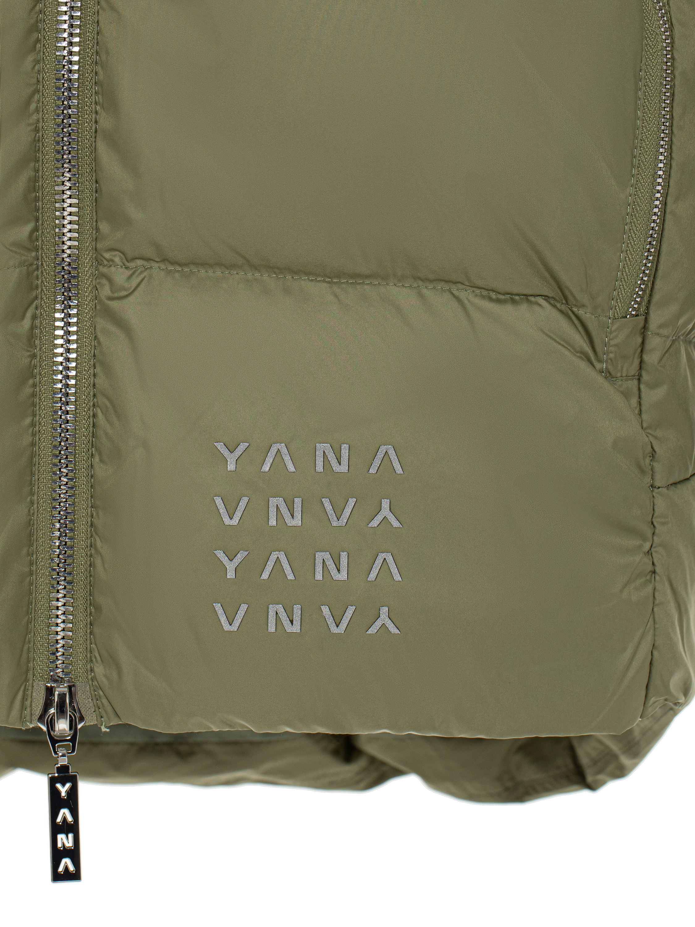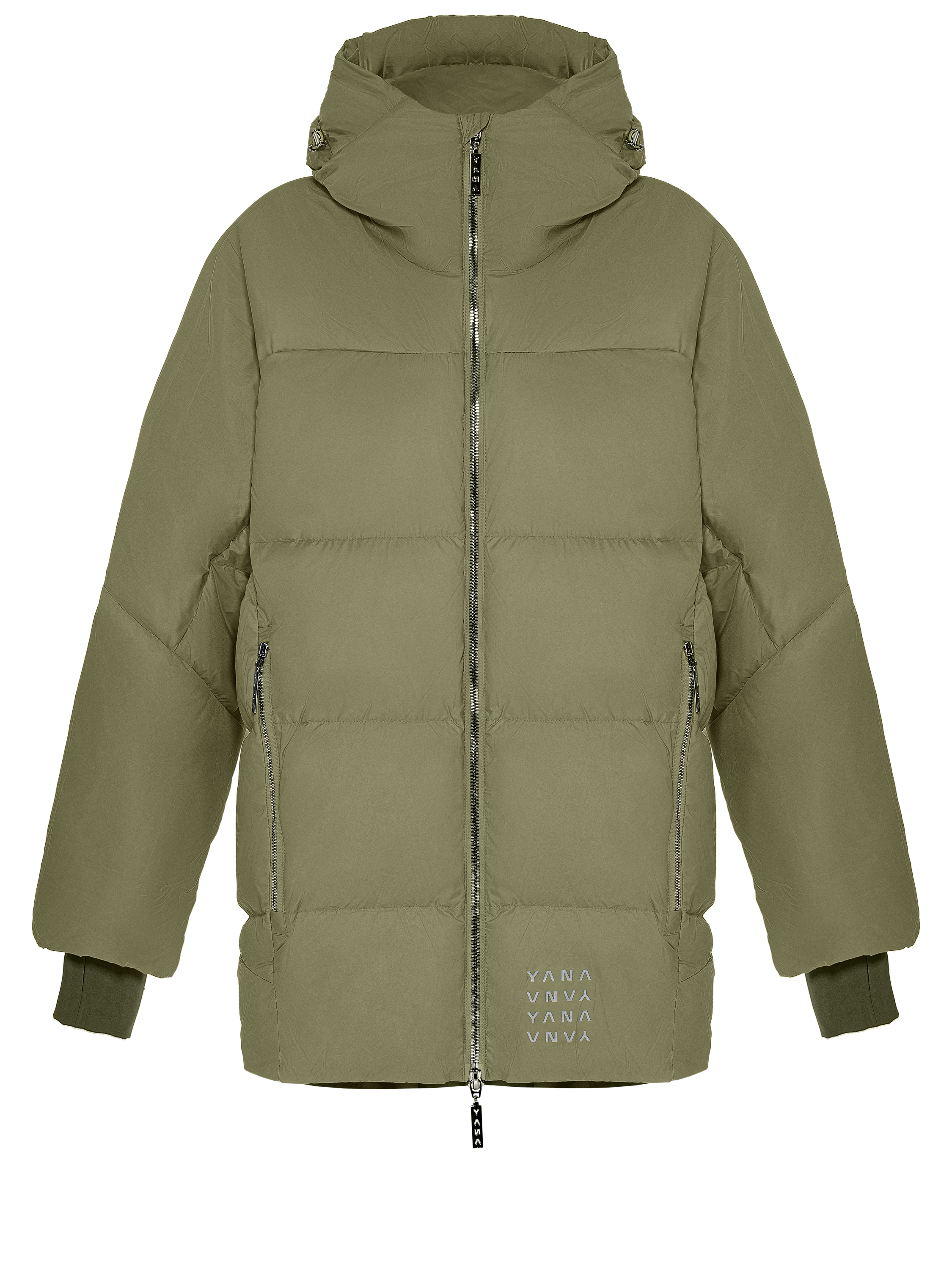 The green unisex down jacket with a hood is made of thin soft-touch fabric treated with two types of coating: a water-repellent Teflon finish that also protects the fabric from splashes and dirt, and a membrane responsible for windproofing and thermoregulation. Premium-quality natural goose down makes the jacket voluminous yet ultra-light. The style is complemented by two large zip pockets on the sides, elastic cuffs with a thumbhole and reflective YANA print on the side and back. It fastens with a front zip. The cosy down jacket will keep you warm even in the coldest winter (down to -35°C).