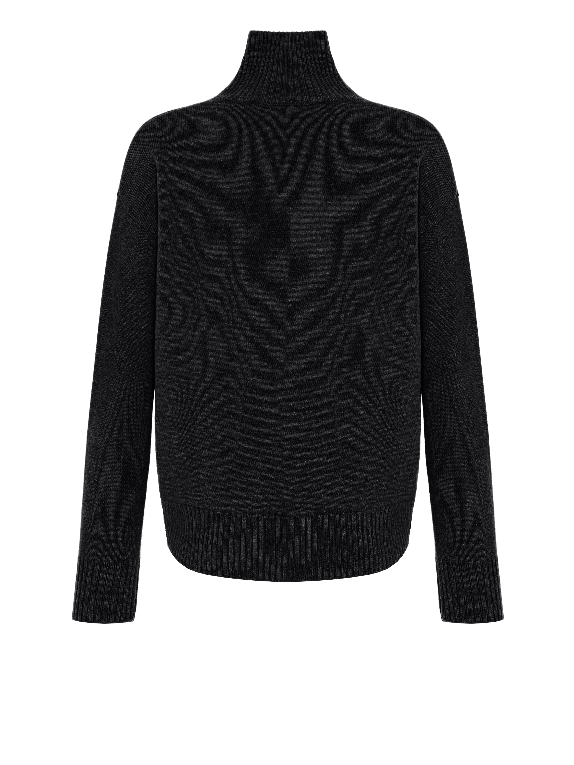 A cozy high-neck dark gray sweater is made of 100% premium-quality royal cashmere. The fine, silky, almost weightless yarn reliably retains warmth and maintains a comfortable microclimate while allowing the skin to breathe. The material is highly durable, does not wrinkle and does not lose its shape. The basic model is relevant for any wardrobe and suits all body types.