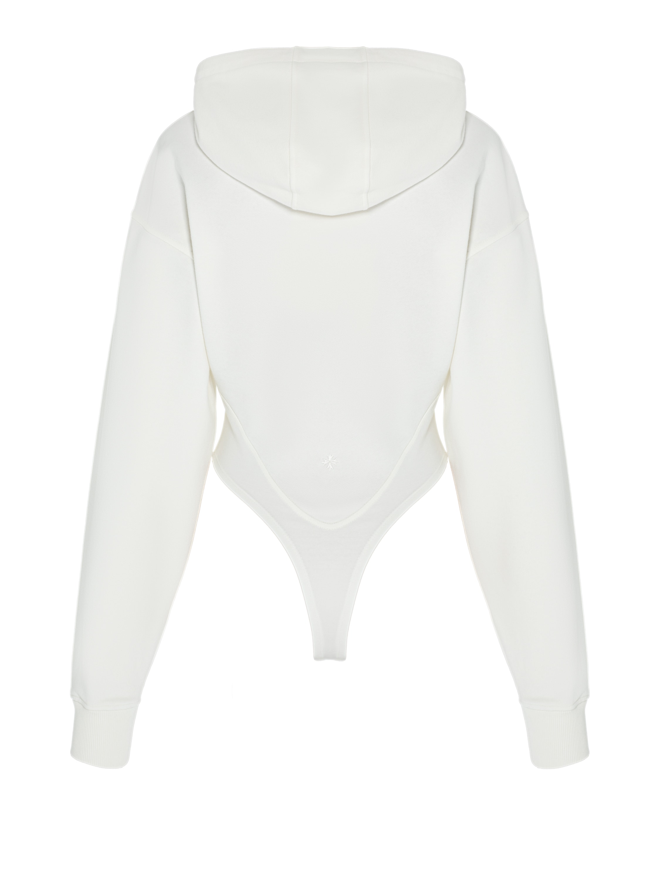 Soft cotton footer was used to sew the hoodie bodysuit. The minimalist model is complemented by embroidery with the brand's logo. Complete the look with sports trousers from the new collection in the same shade — and you will get a harmonious total look in the spirit of Sport Chic.