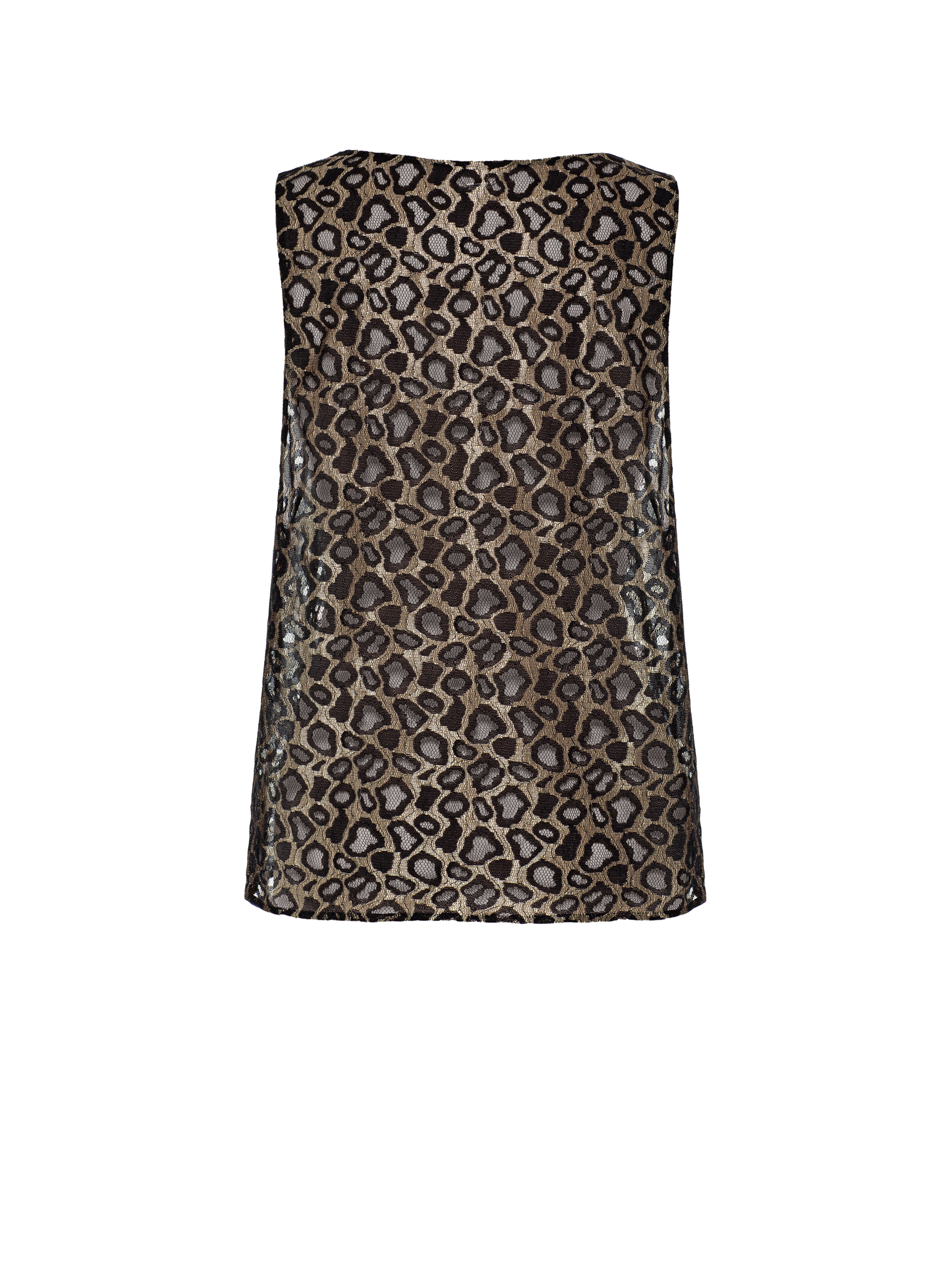 The gold top with a black leopard print can become a statement detail in an outfit with solid-colored pieces. The bold animal pattern is accentuated by the refined color palette.