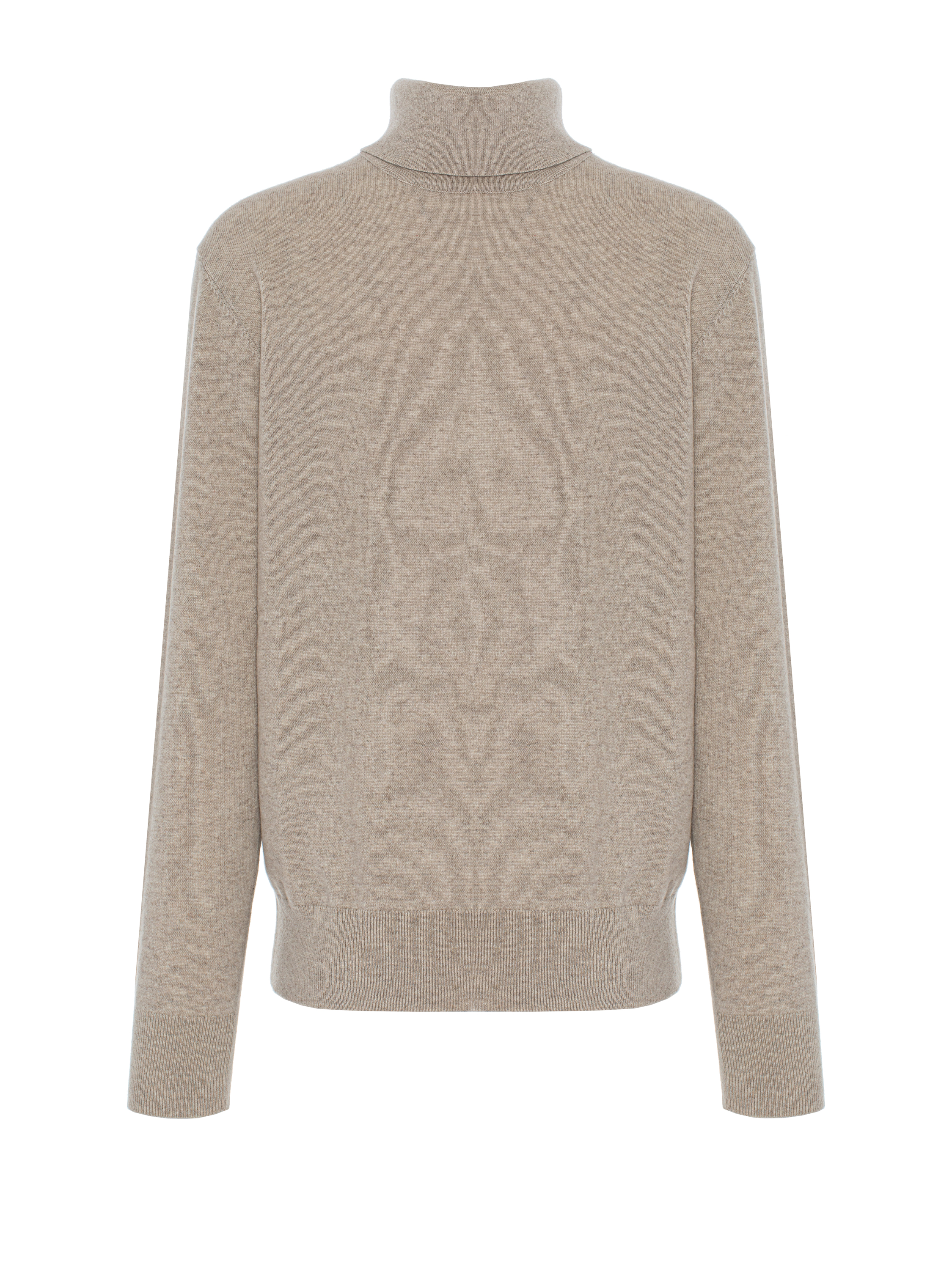 A cozy men’s sweater with a high neck in beige is made of 100% premium-quality baby cashmere. The fine, silky, almost weightless yarn reliably retains warmth and maintains a comfortable microclimate while allowing the skin to breathe. The material is highly durable, does not wrinkle, and does not lose its shape. This basic style is relevant for any wardrobe and suits all body types.