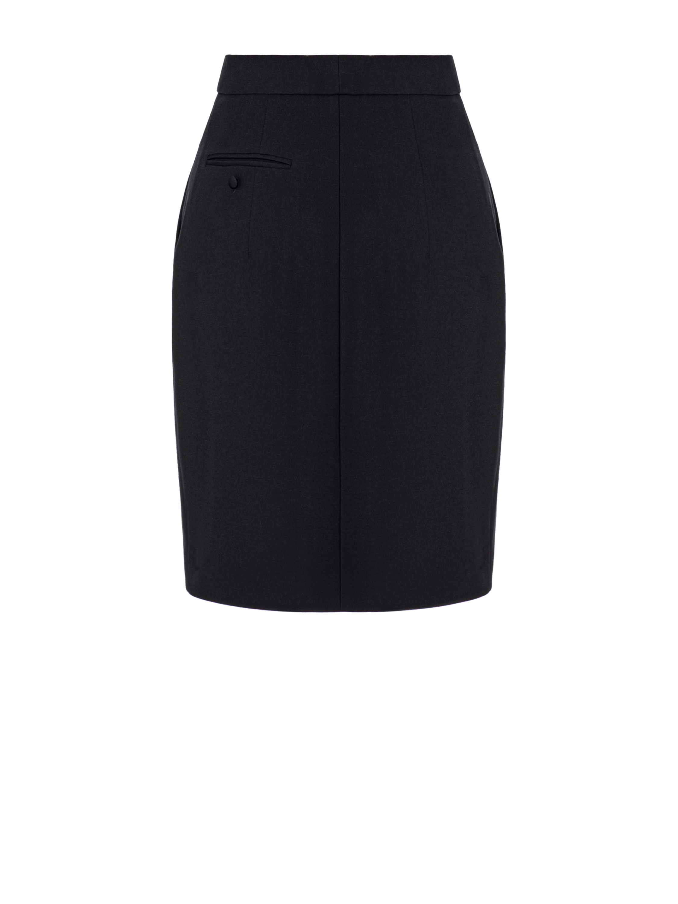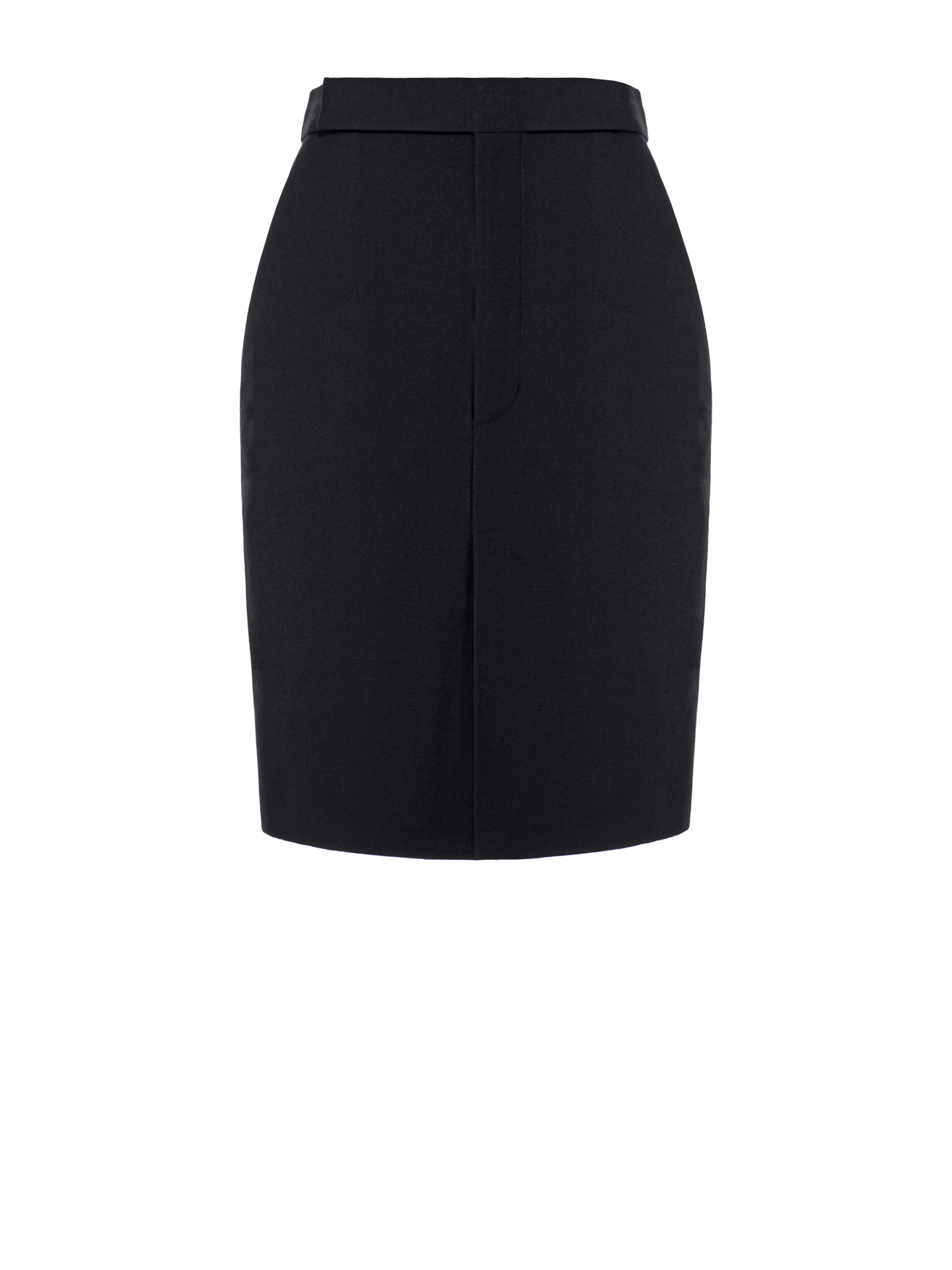 The black above-the-knee skirt creates a slim, feminine silhouette. The classic high-waisted design is complemented by a front slit that allows you to show off your legs. Garment length: 55 cm.