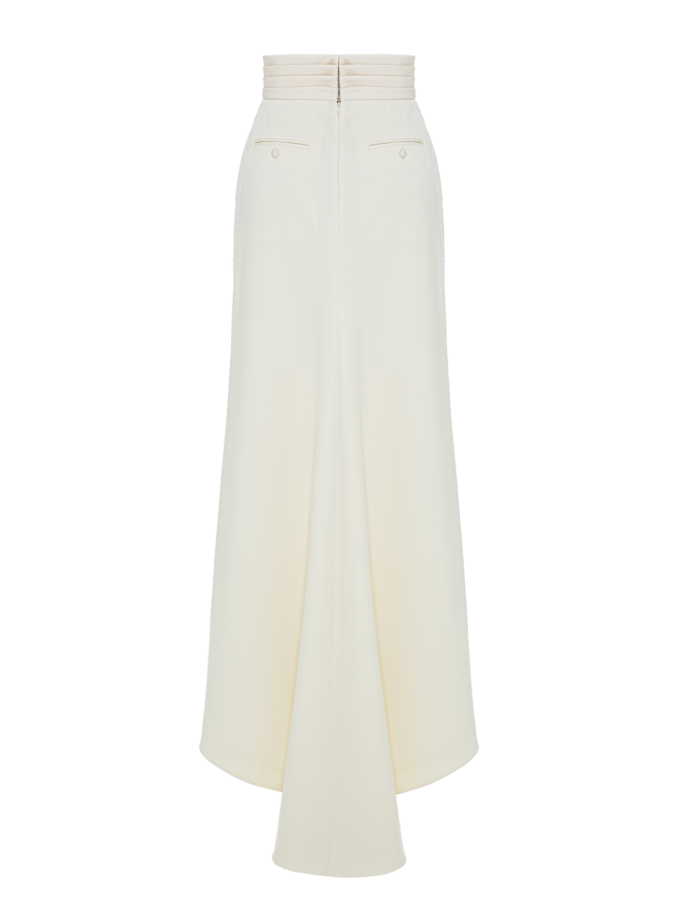 The off‑white maxi skirt will make your evening look elegant and feminine. The model is decorated with lace, yarn embroidery and rhinestones. The craftsmen of the Yana Fashion House spent 55 hours of handwork decorating the piece.