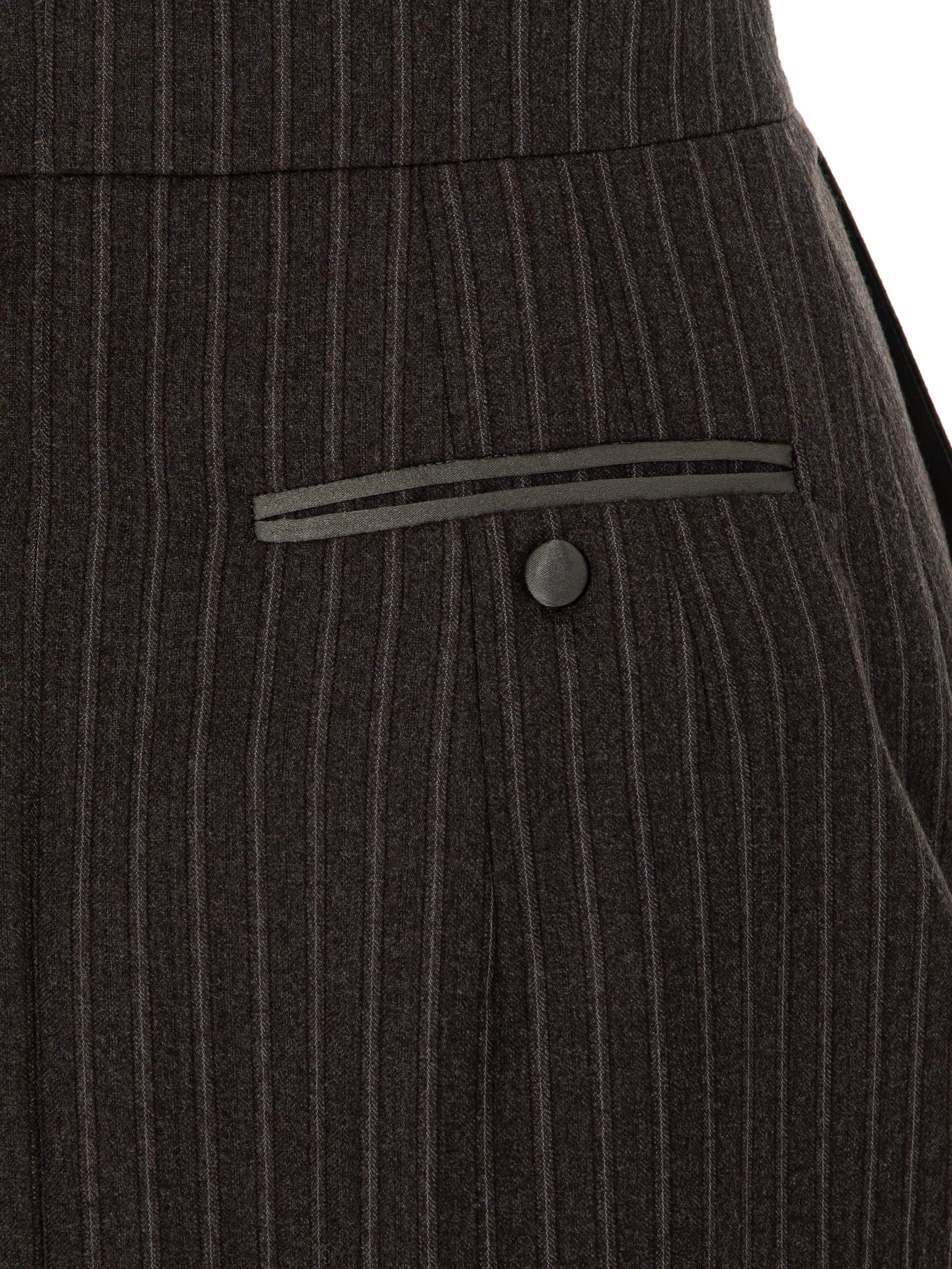 The grey skirt is made of suiting fabric with a strict vertical stripe. The refined design is complemented by a practical slit at the front for freedom of movement and two pockets. Side seam length: 53 cm.