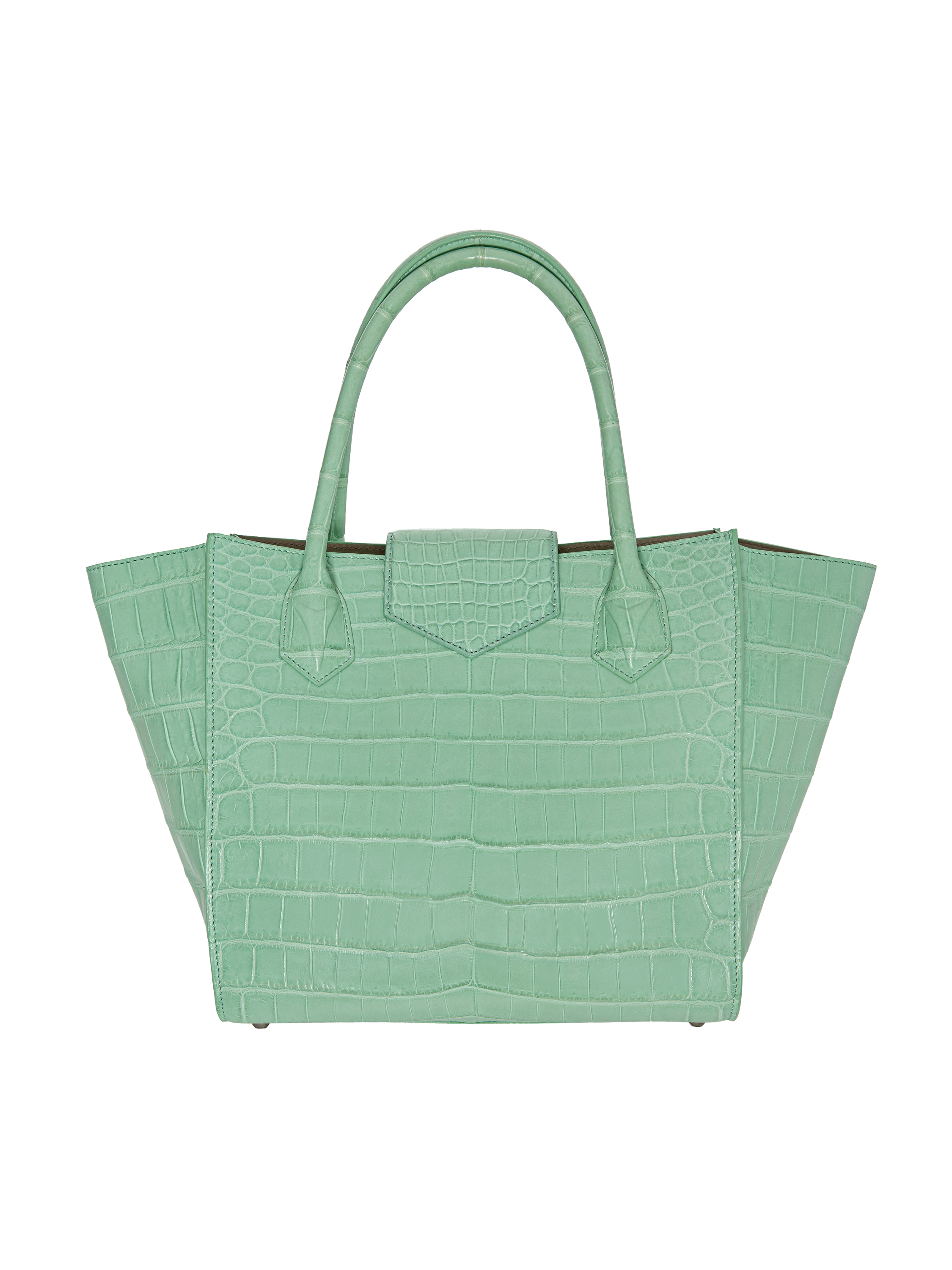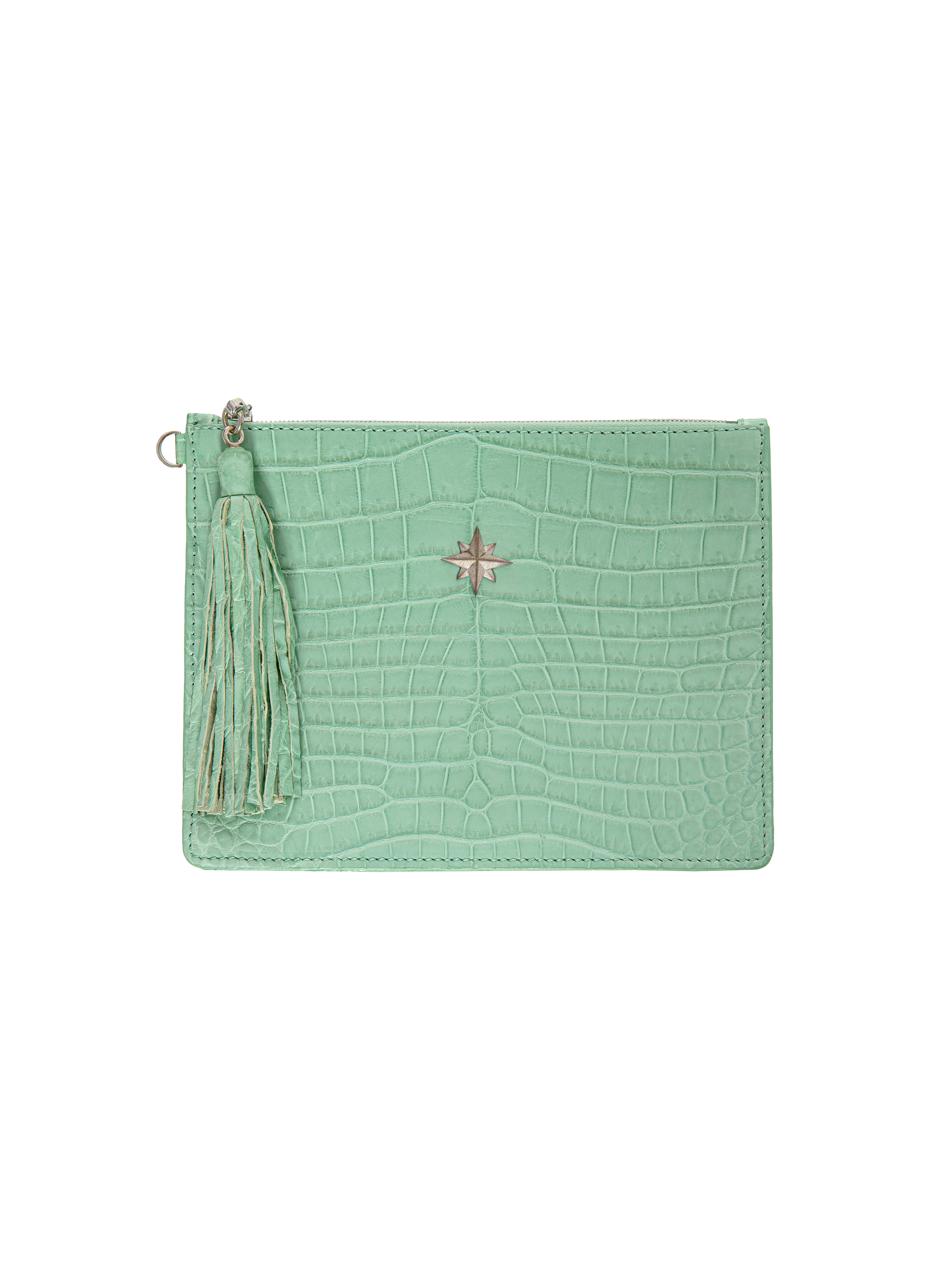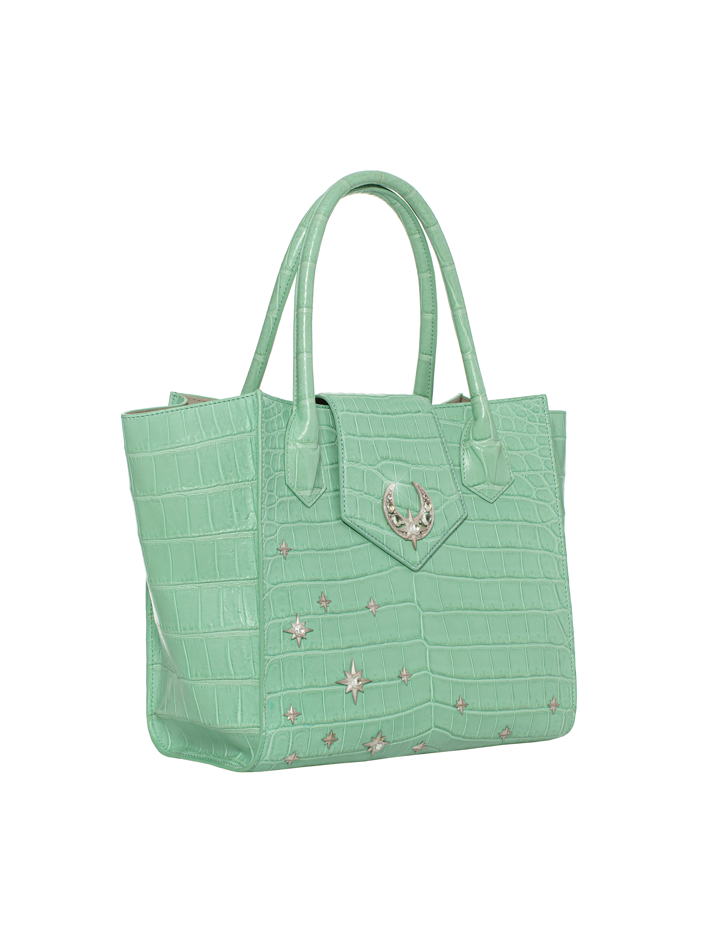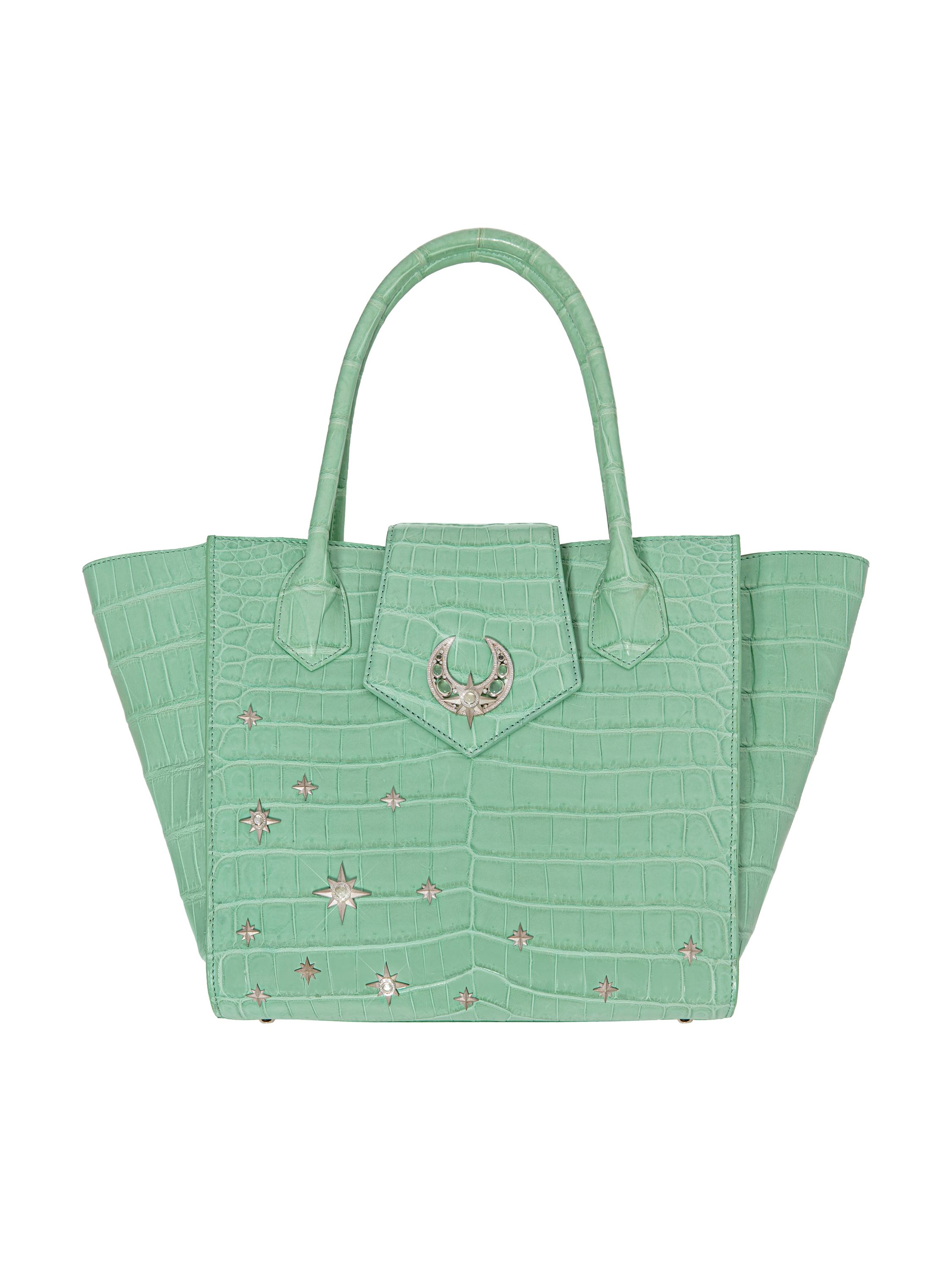 Mint Crocodile Leather Silver Crescent & Stars Bag