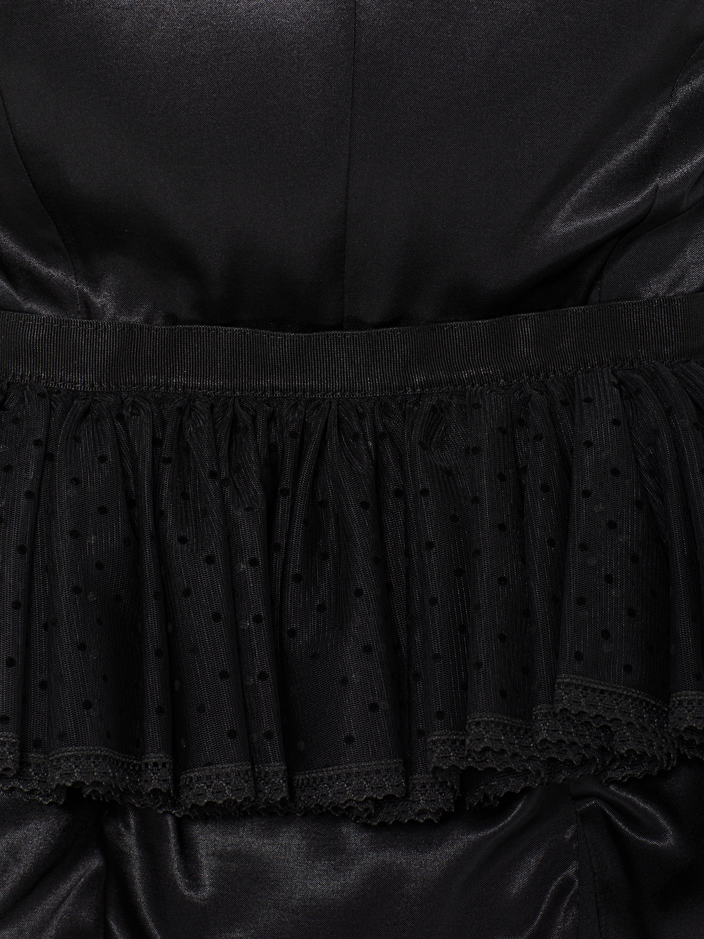 A laconic black double-breasted blazer is made of wool fabric. The minimalist fitted model is inspired by the aesthetics of uniform, combining elegant rigor and refined femininity. Statement shoulders combined with shaped lapels add drama to the look.