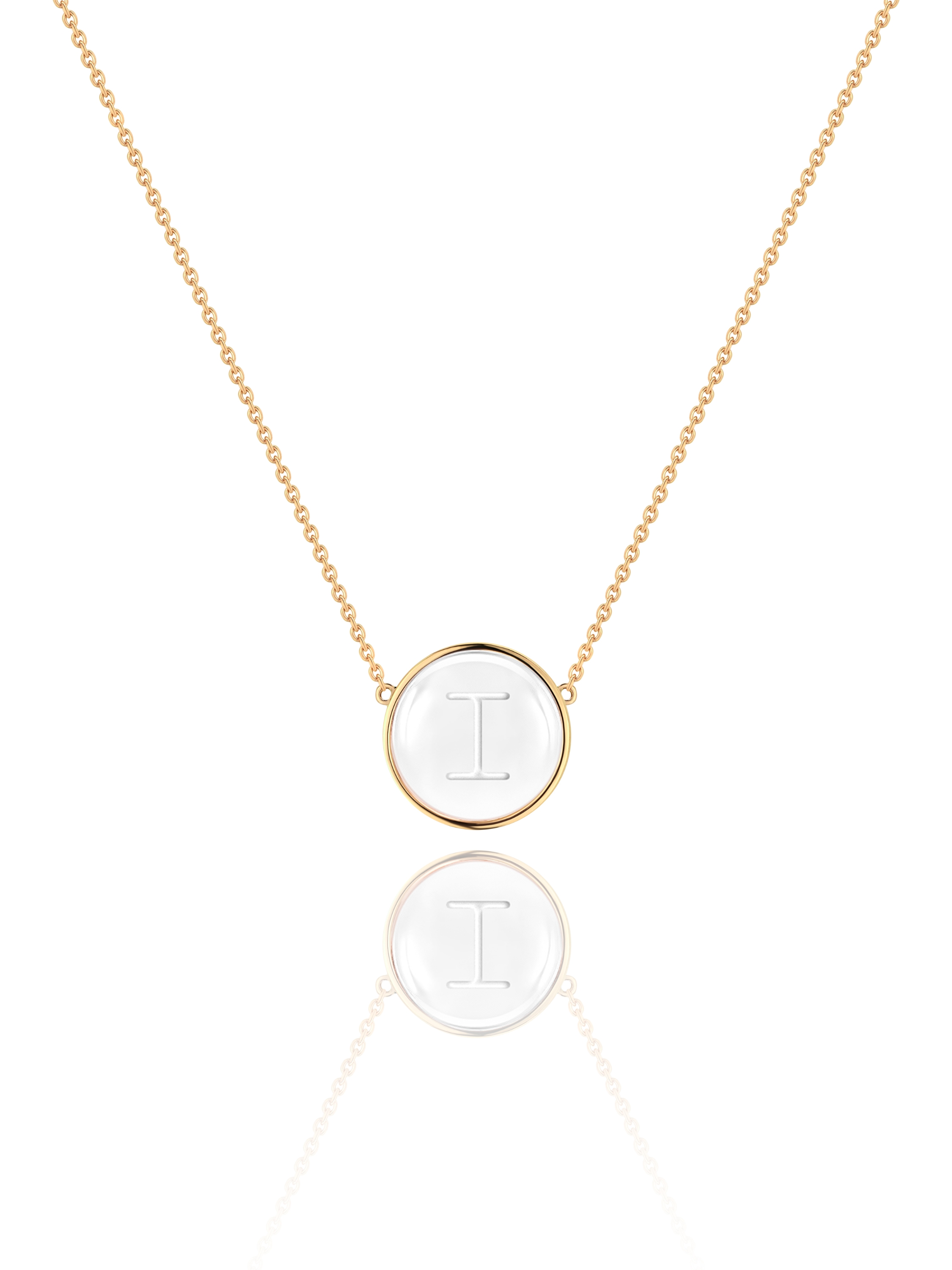 Yellow gold necklace with letter I pendant and rock crystal