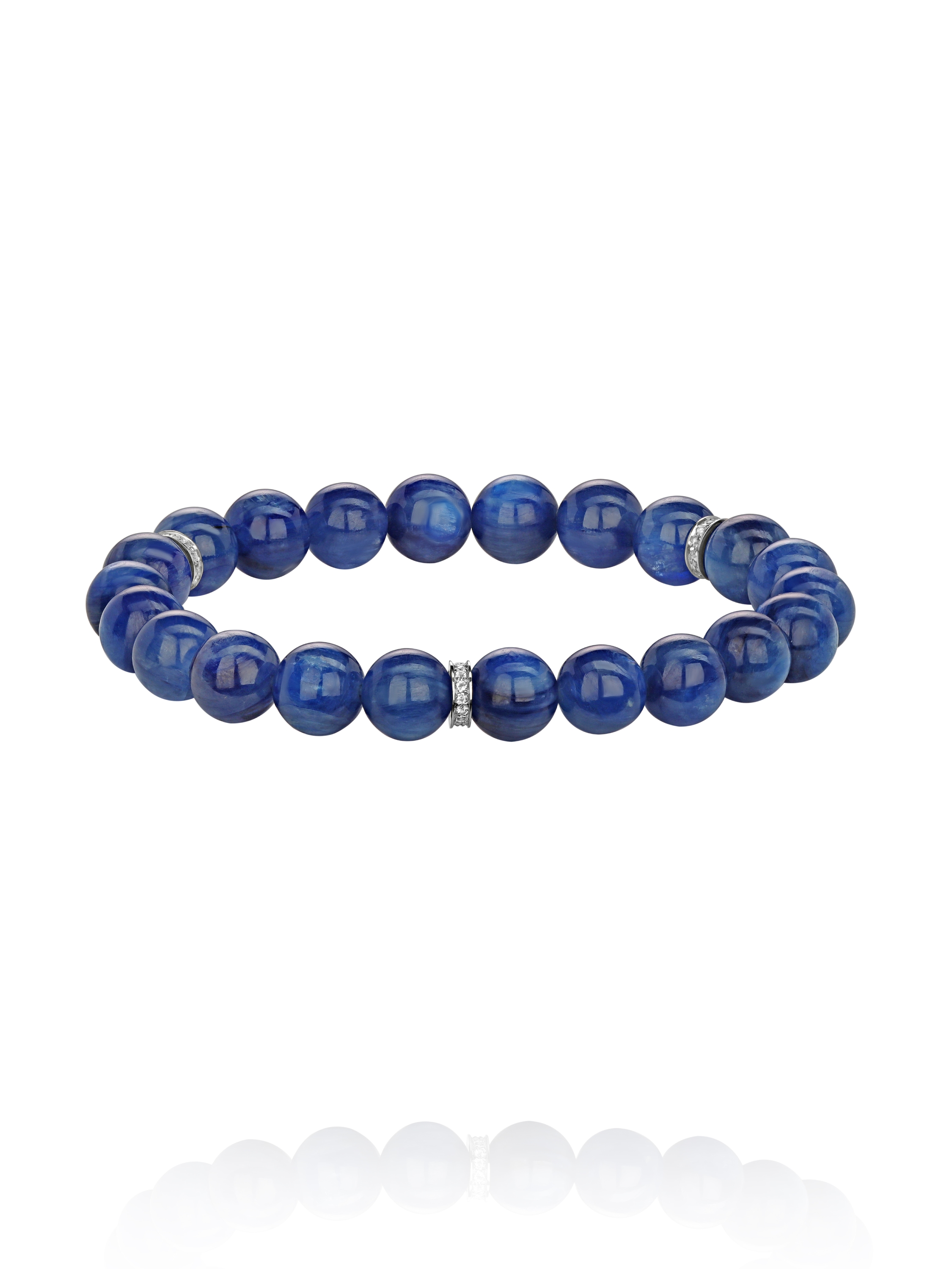 Bracelet with 22 kyanite beads 21.05 g d 8.0 and 45 Sky topazes weighing 0.25 ct.
