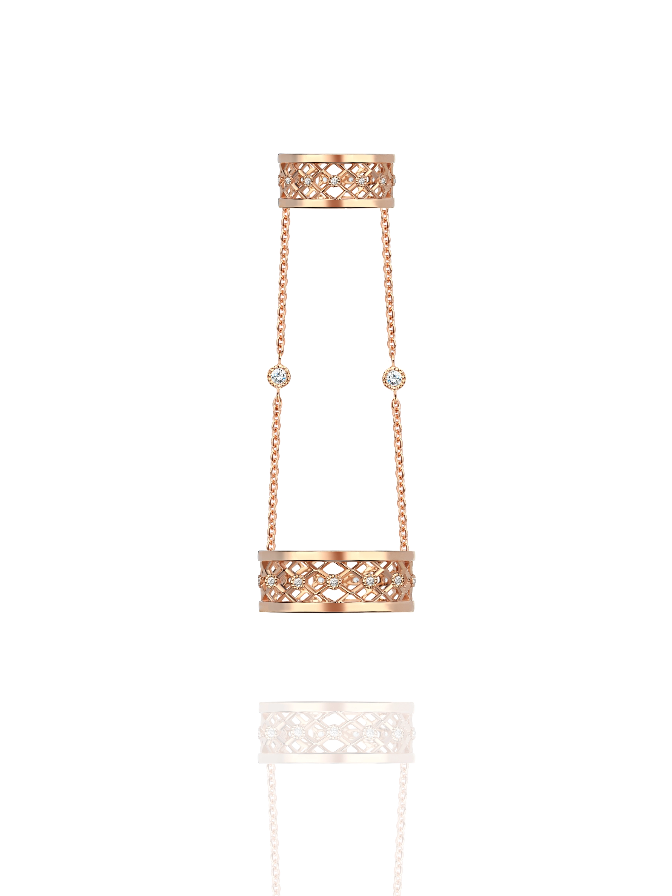 Double ring in rose gold with 30 round-cut topazes with a total weight of 0.19 ct.